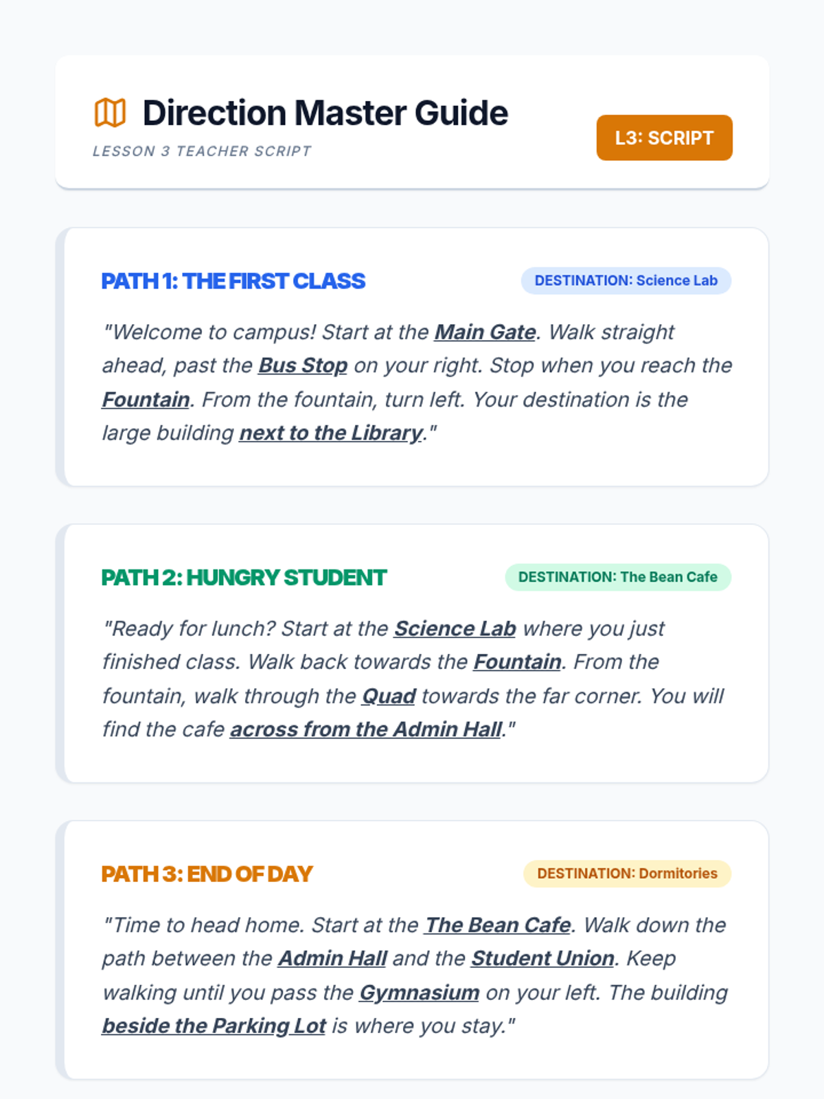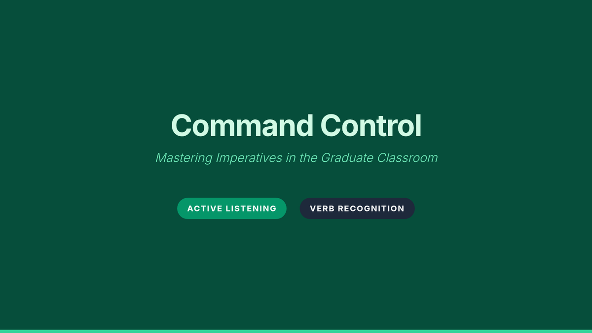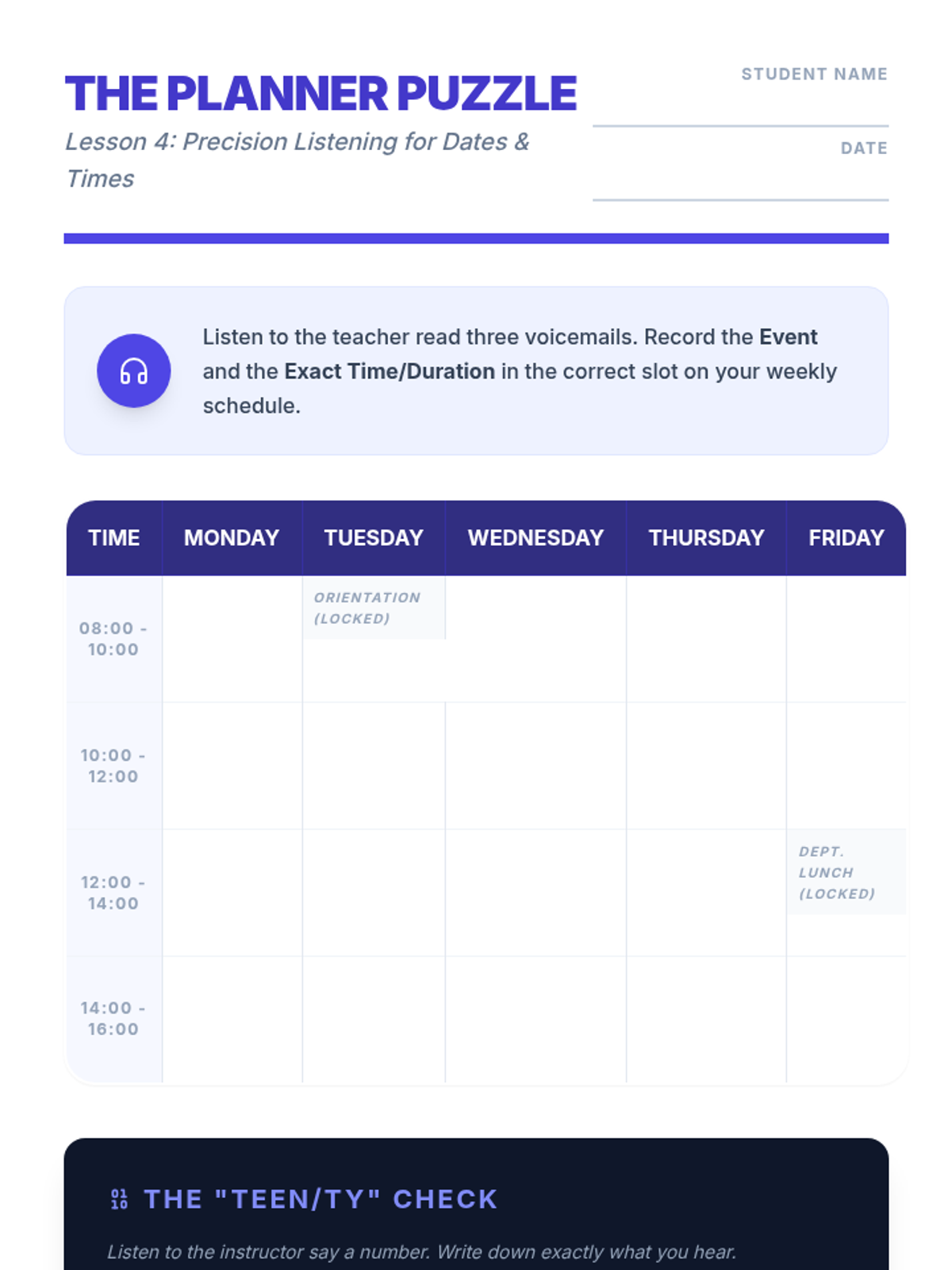 A specialized ESL listening sequence for graduate students, focusing on navigating academic registers, classroom imperatives, campus logistics, and administrative interactions. Students will develop the ability to distinguish between formal and informal tones and follow multi-step oral instructions in a university setting.