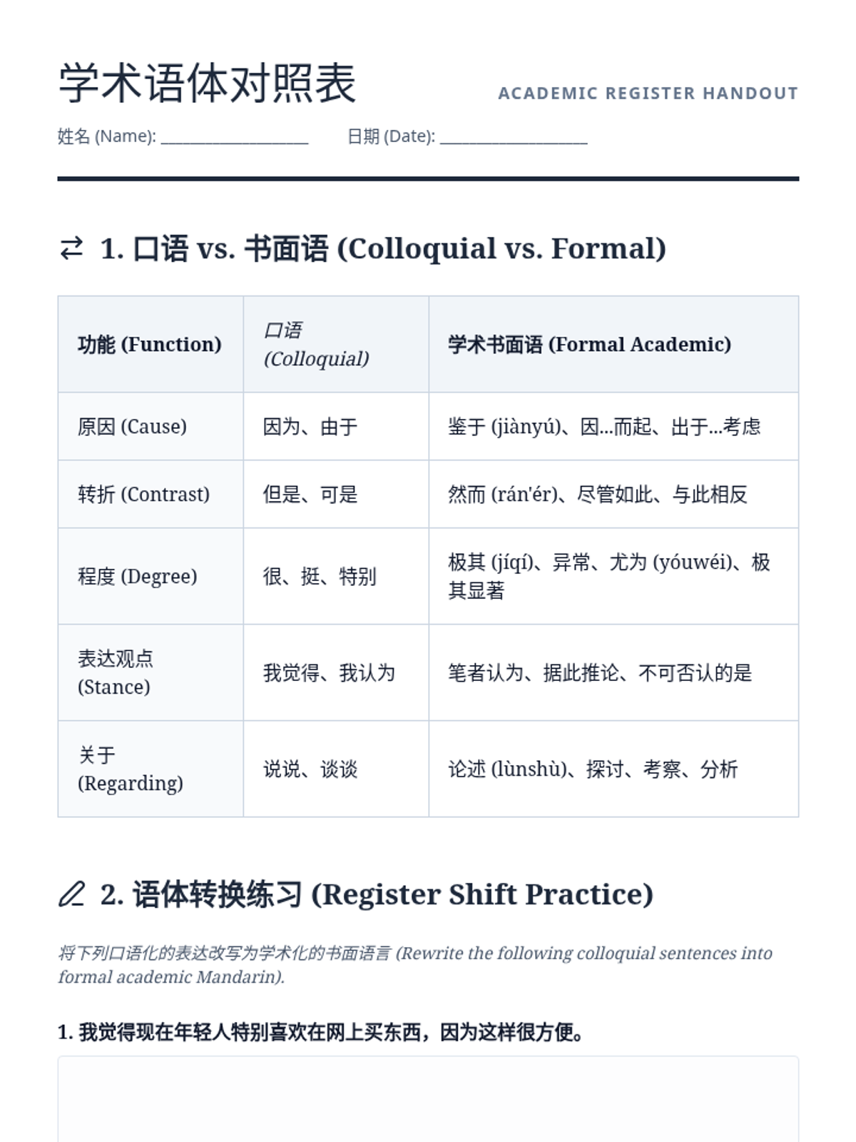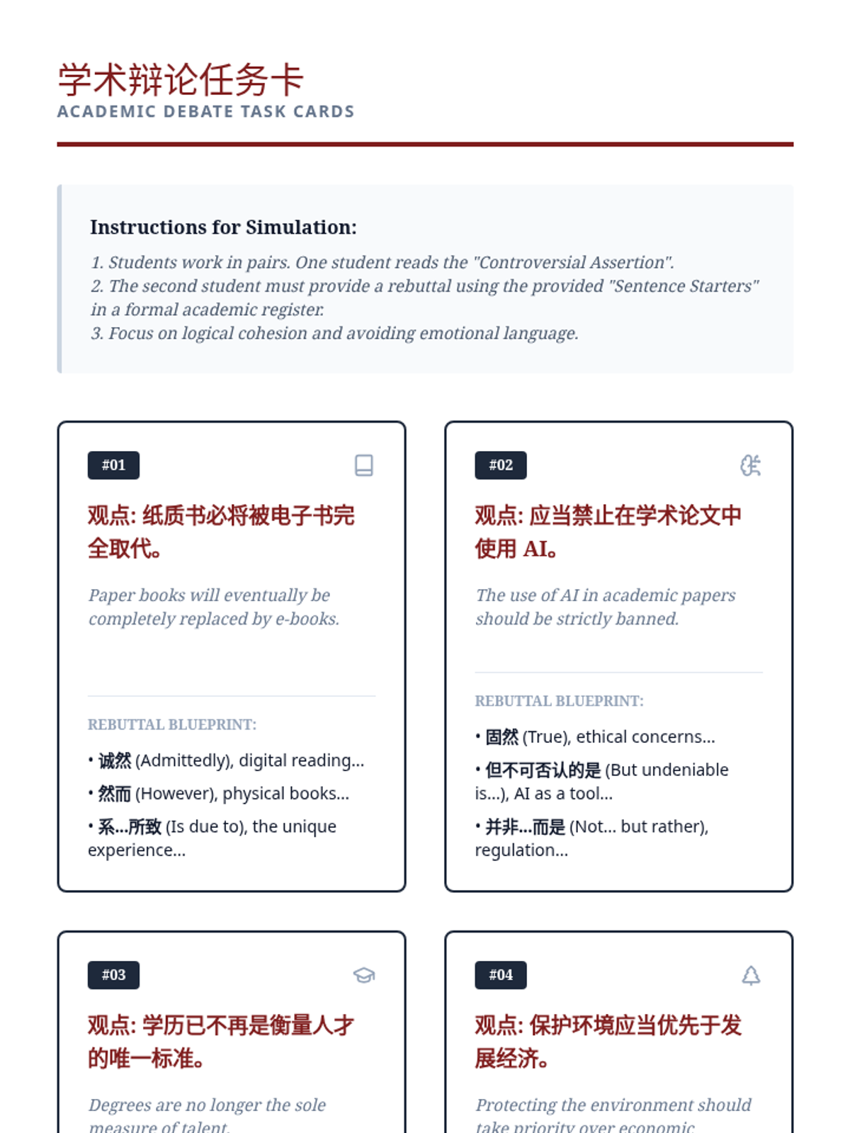 An advanced Mandarin Chinese sequence for undergraduate students, focusing on the rhetorical structures, formal register, and vocabulary necessary for academic argumentation and thesis defense.