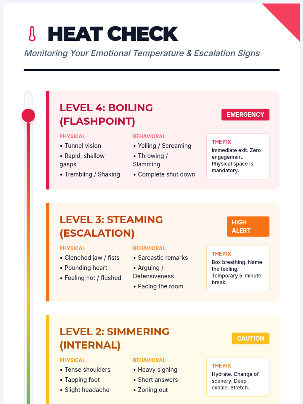 A comprehensive sequence on emotional self-regulation, moving from identifying personal triggers and signs of escalation to mastering de-escalation protocols and relationship repair strategies.