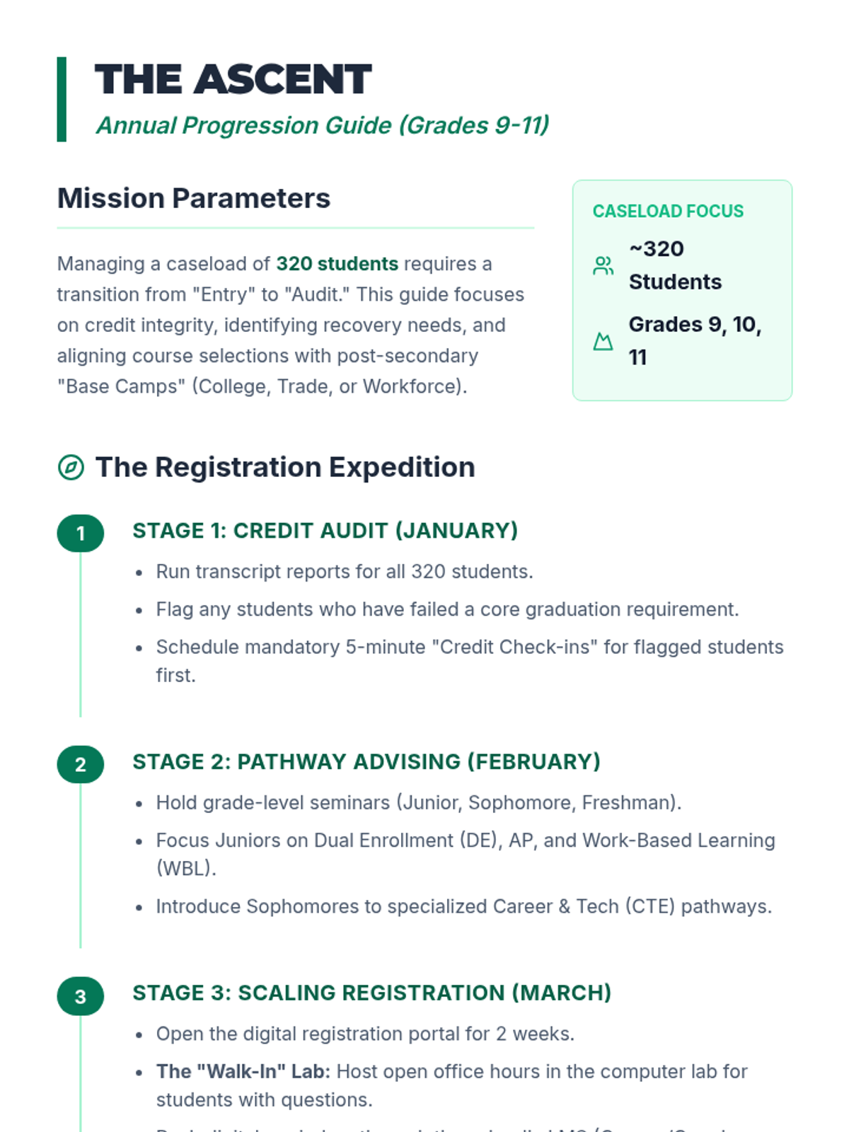 A comprehensive suite of counselor and student resources for managing the entire secondary academic journey, from 8th-grade transition through senior year planning.