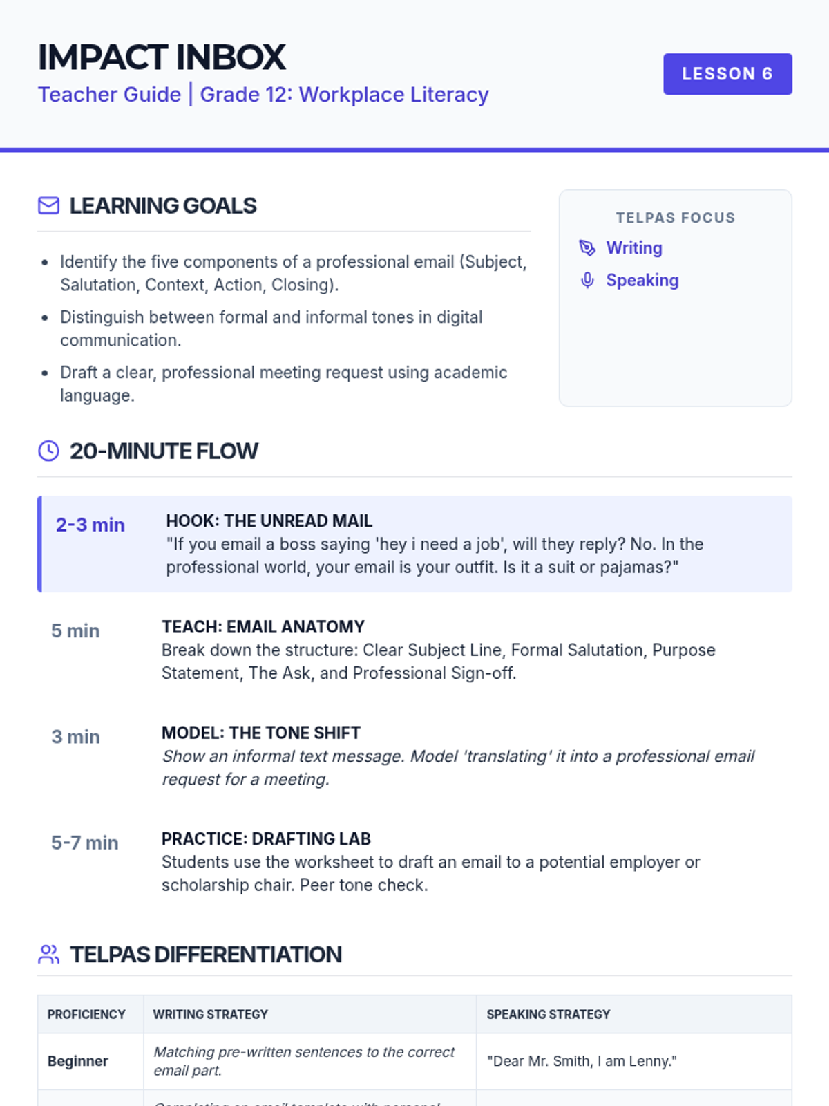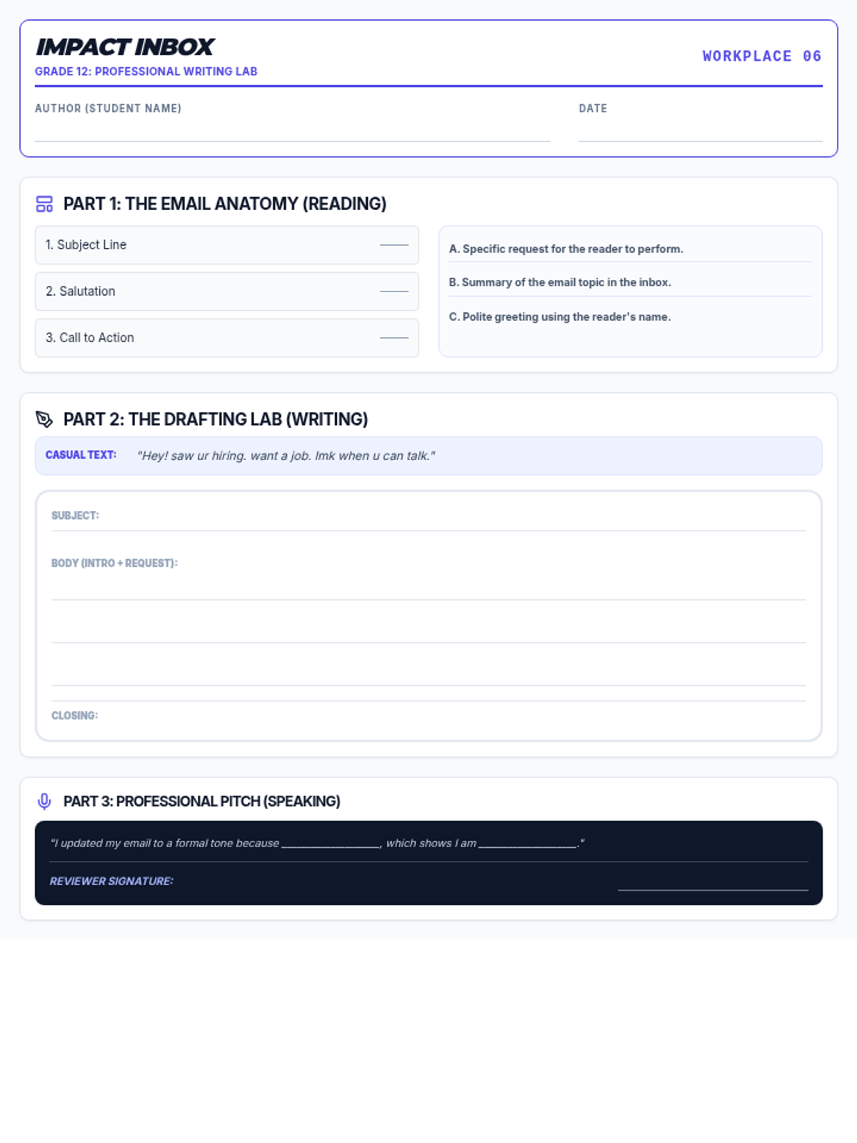 A series of lessons designed to transform reactive student behaviors into professional communication and emotional resilience. This sequence helps students navigate authority, manage triggers, and advocate for themselves effectively.