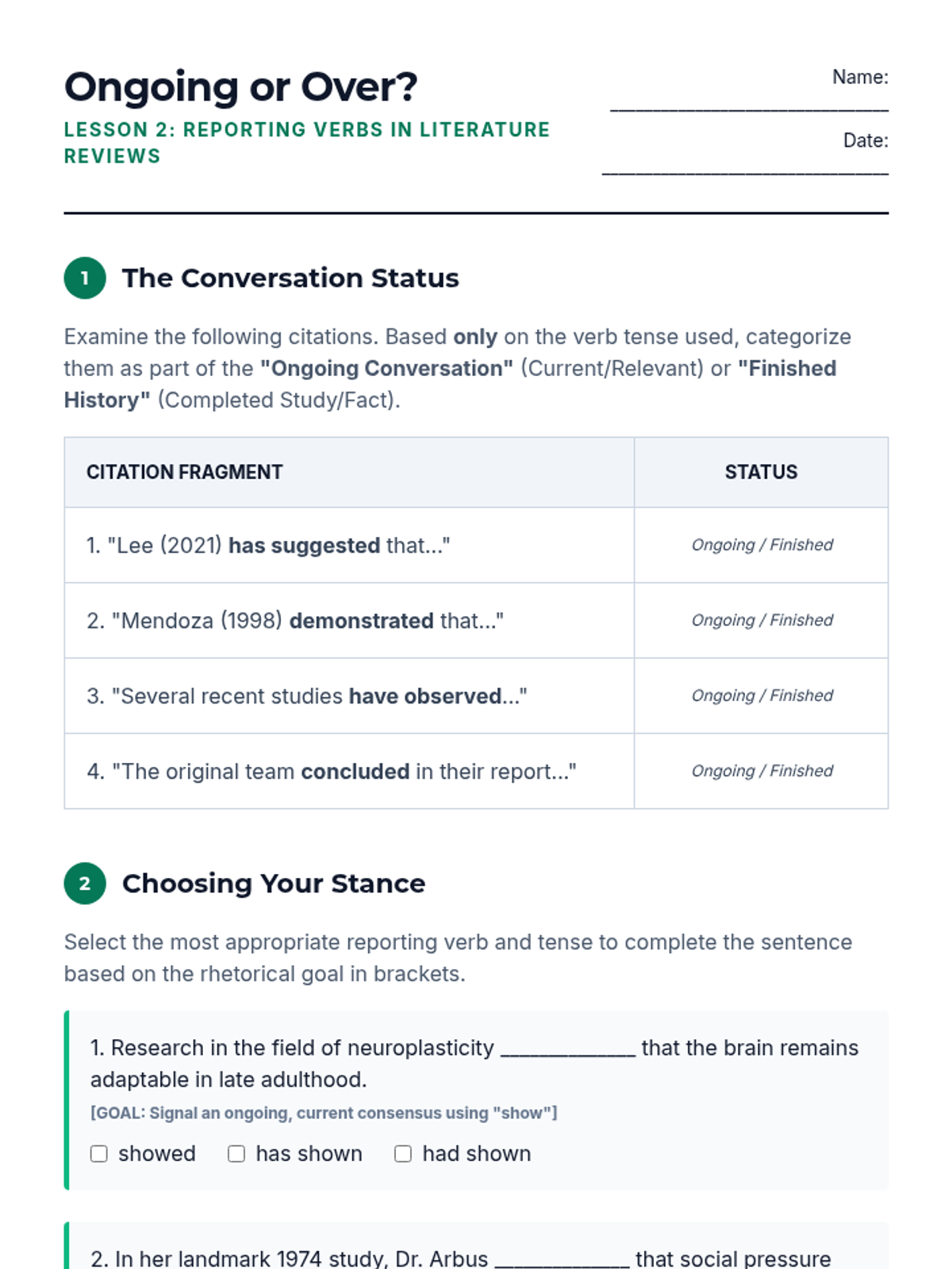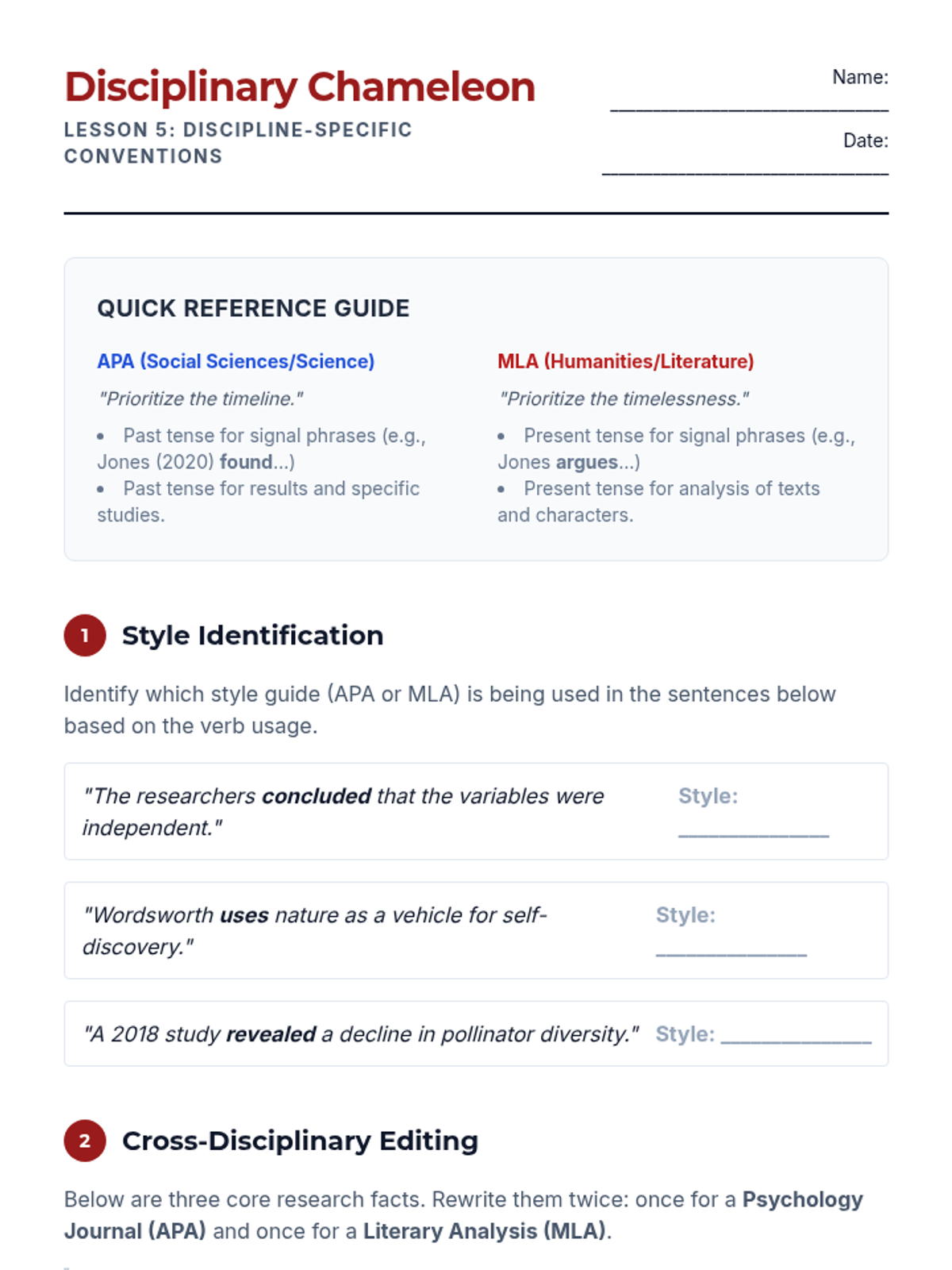 A comprehensive unit for undergraduate students exploring the rhetorical functions of verb tenses in academic writing. Students learn how to navigate the conventions of literary analysis, scientific reporting, and cross-disciplinary style guides.