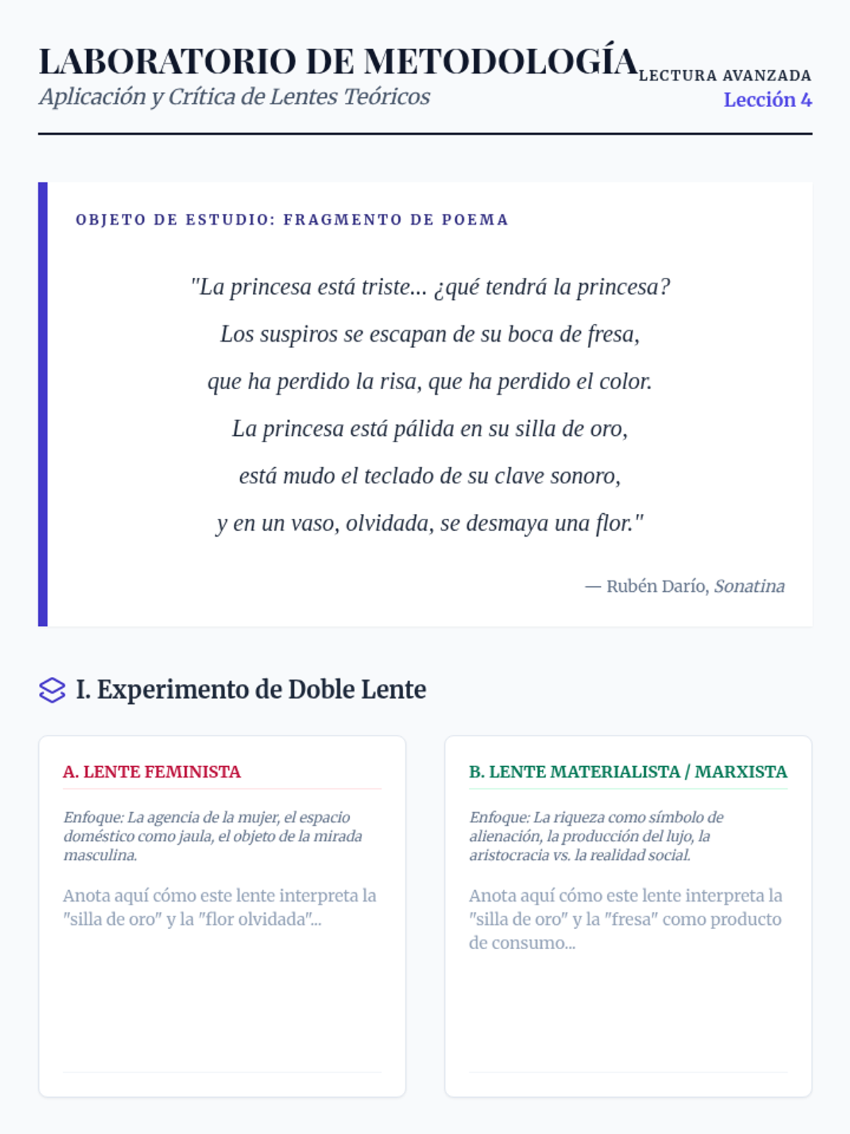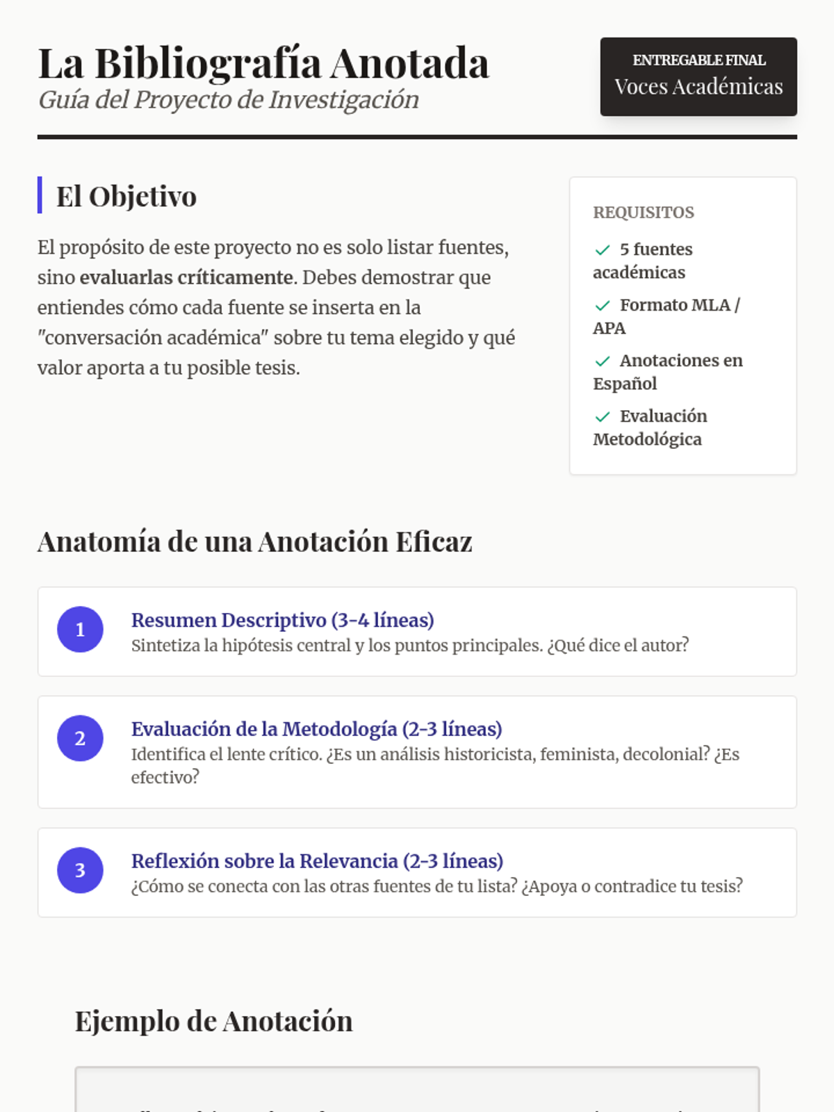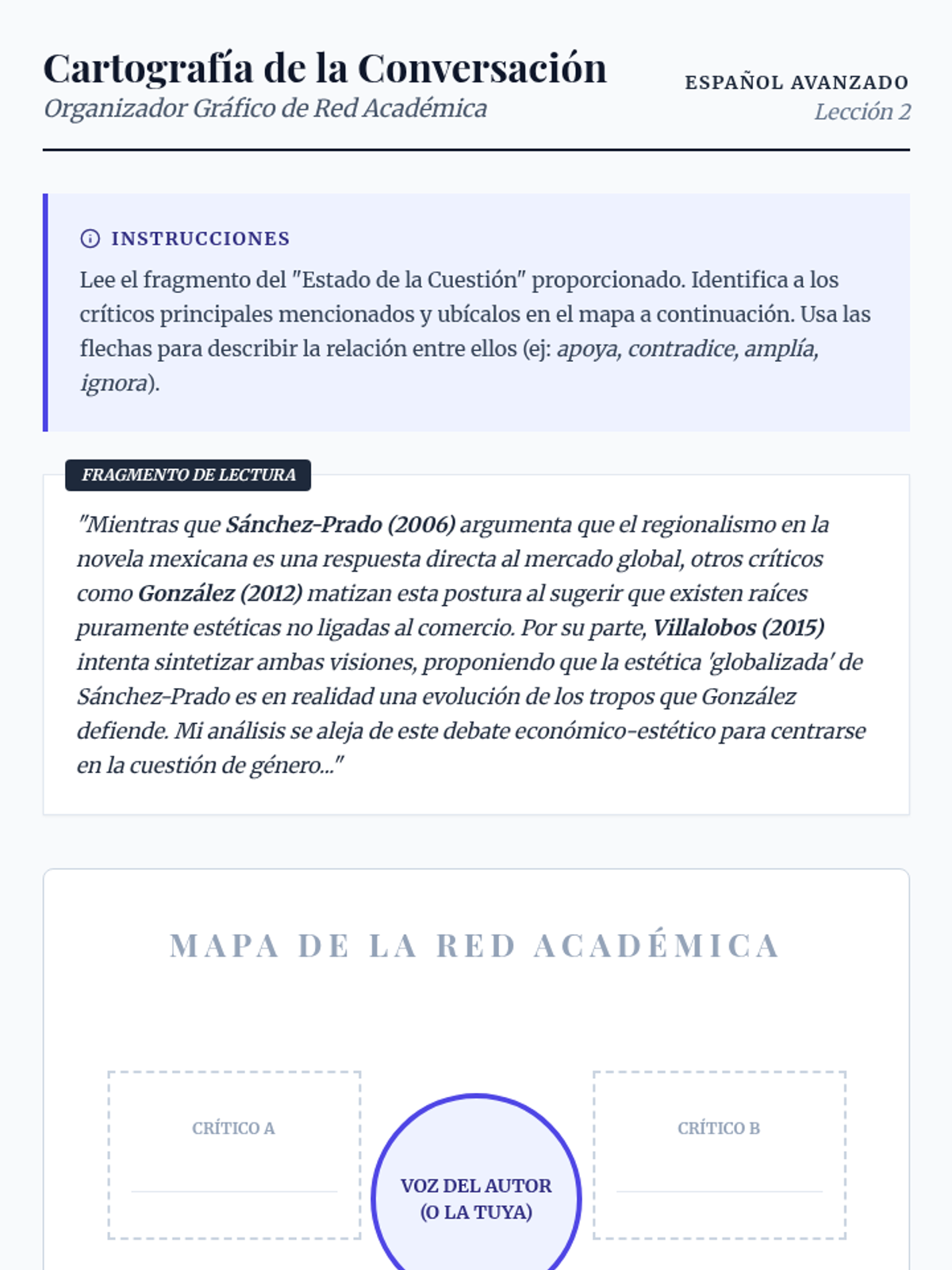 This advanced Spanish sequence trains undergraduate students to engage with literary criticism as a scholarly genre. Students progress from decoding academic abstracts to synthesizing complex literature reviews and constructing annotated bibliographies, transforming from passive readers into active scholarly participants.