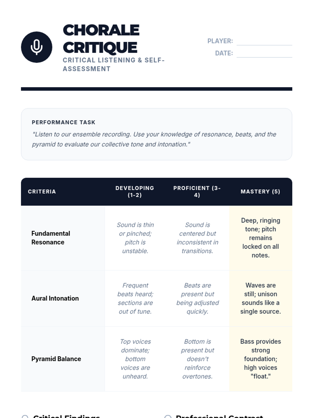 A comprehensive score analysis framework for middle school band and choir ensembles that integrates music literacy with text-based evidence and academic rigor. Students learn to 'read' a musical score as a primary source document, identifying technical elements and structural patterns while providing specific citations for their findings.
