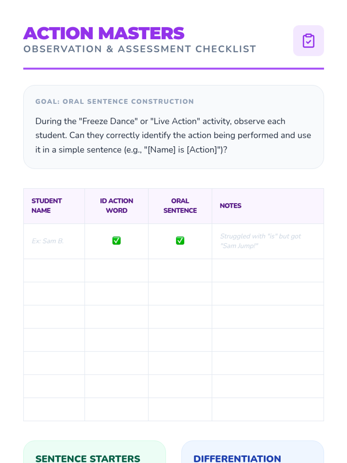 A high-energy ELA sequence for Pre-K students to identify, demonstrate, and use action verbs through movement, storytelling, and hands-on sorting activities. students progress from recognizing verbs in stories to constructing simple subject-verb sentences.