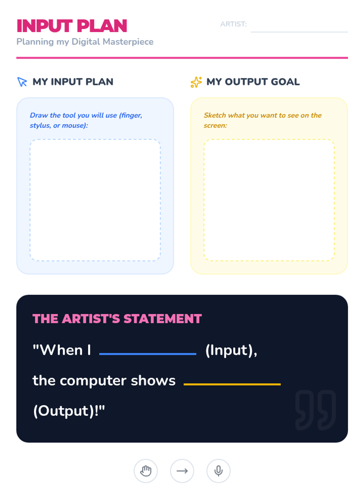 A foundational sequence for Pre-K students to learn the physical gestures and actions required to use tablets and computers, focusing on tapping, swiping, clicking, dragging, and navigating interfaces.
