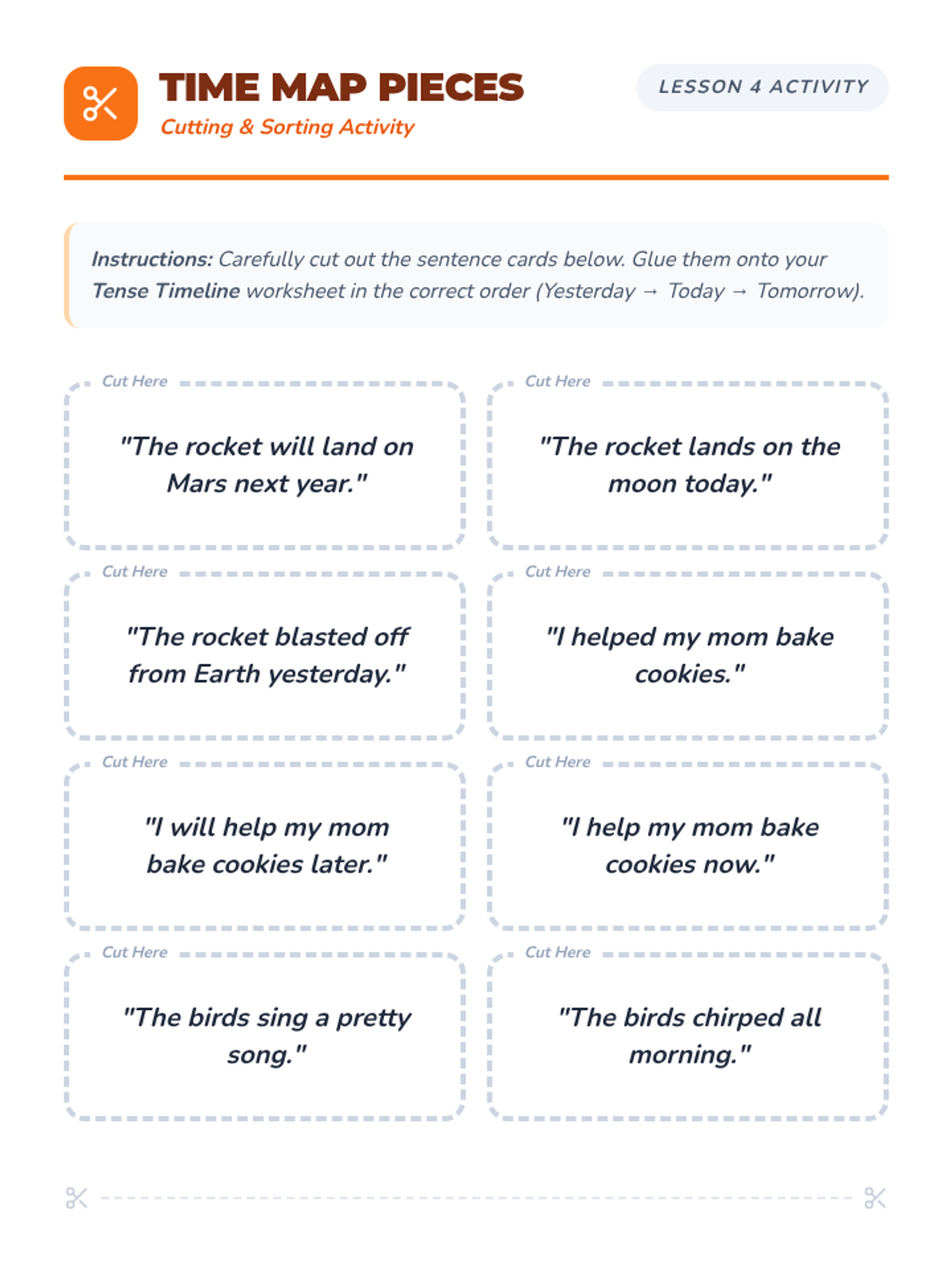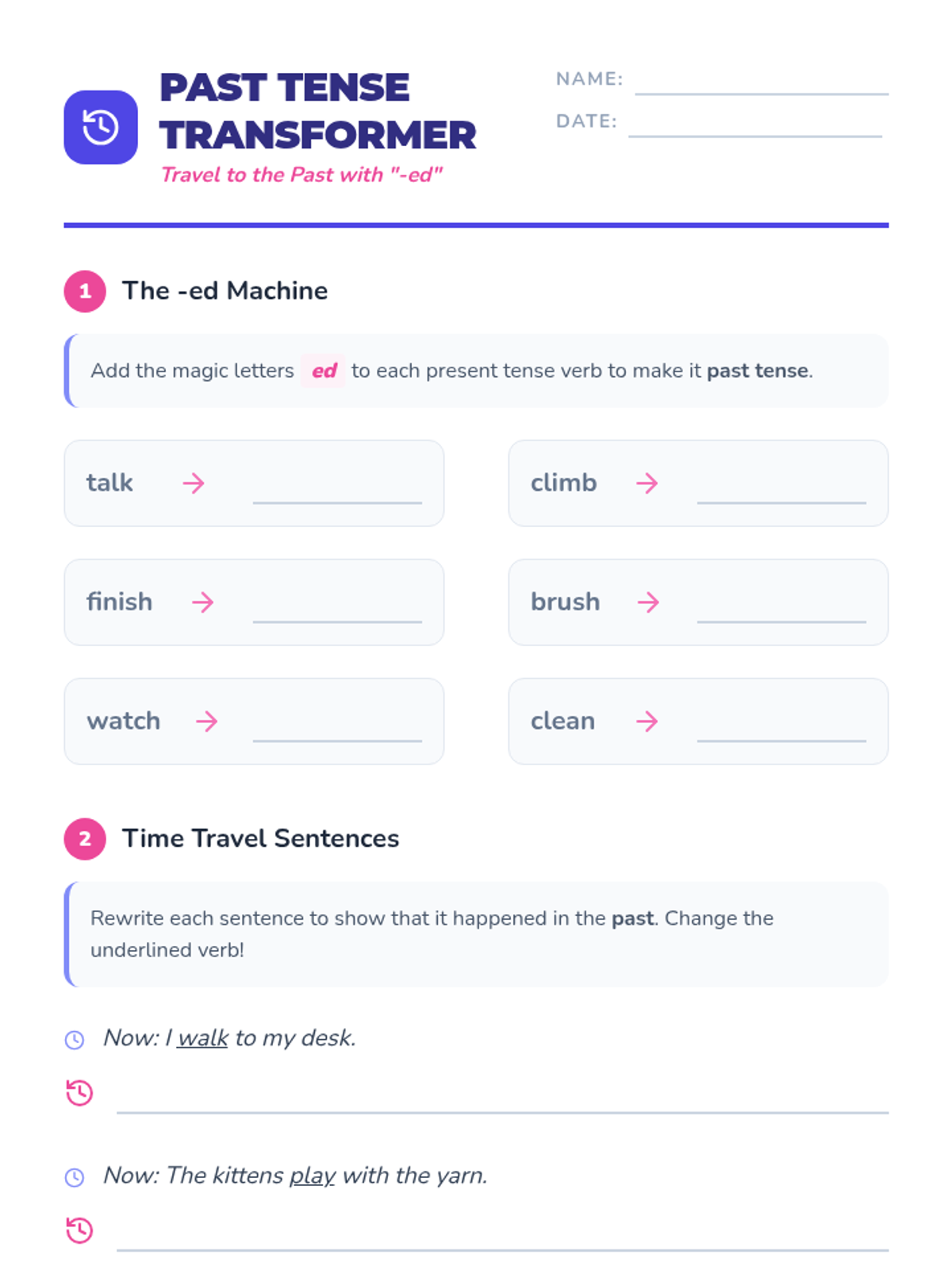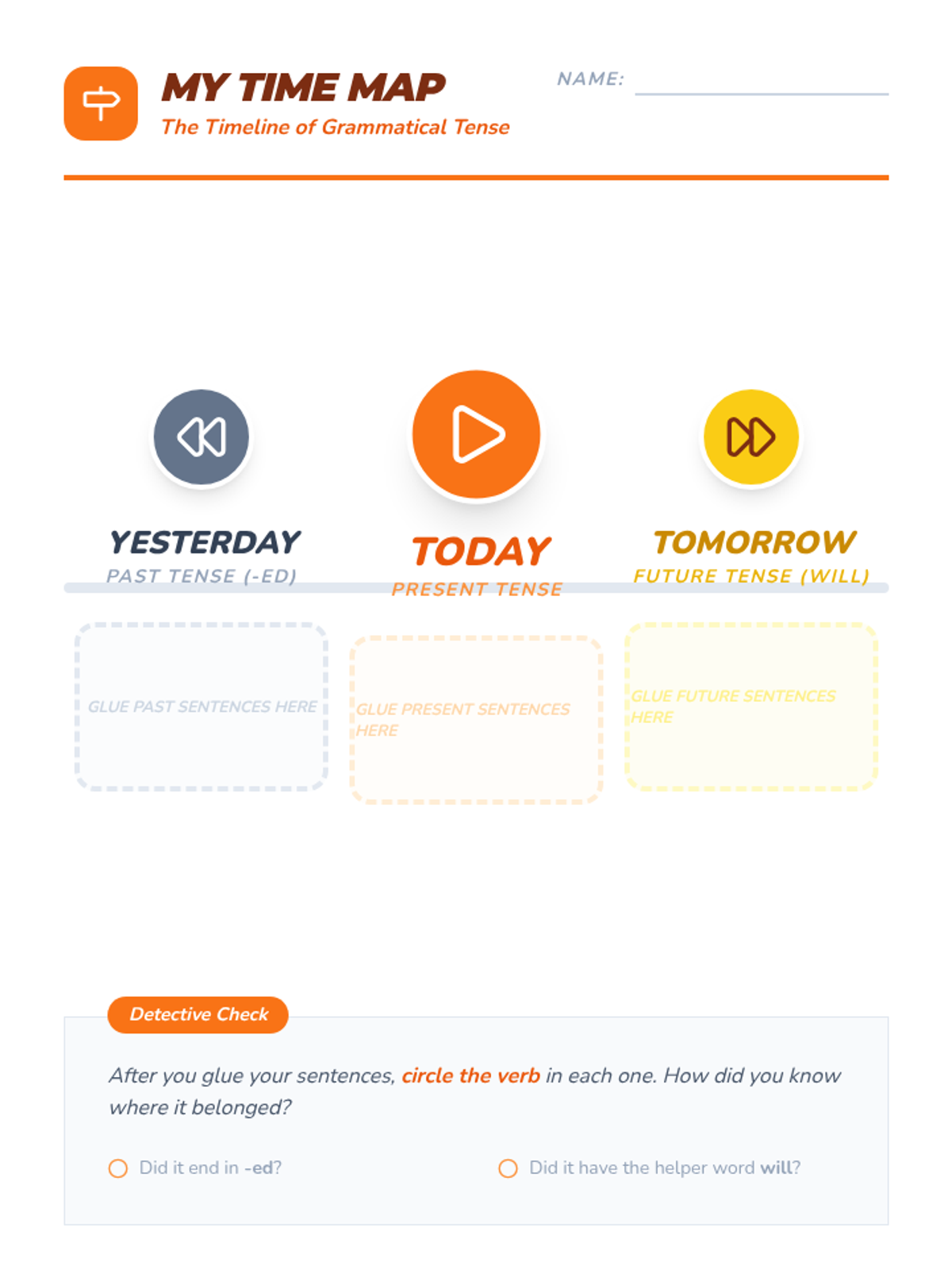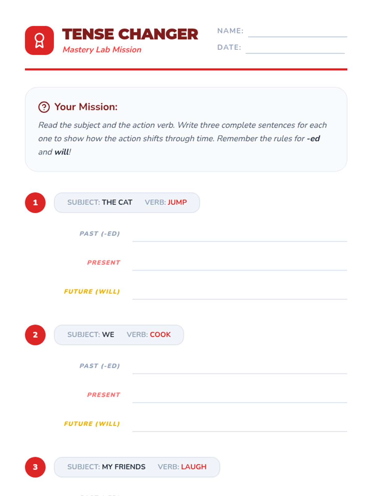A 5-lesson 2nd Grade grammar sequence focusing on identifying action verbs and mastering past, present, and future tenses through interactive games, timeline creation, and sentence transformation.
