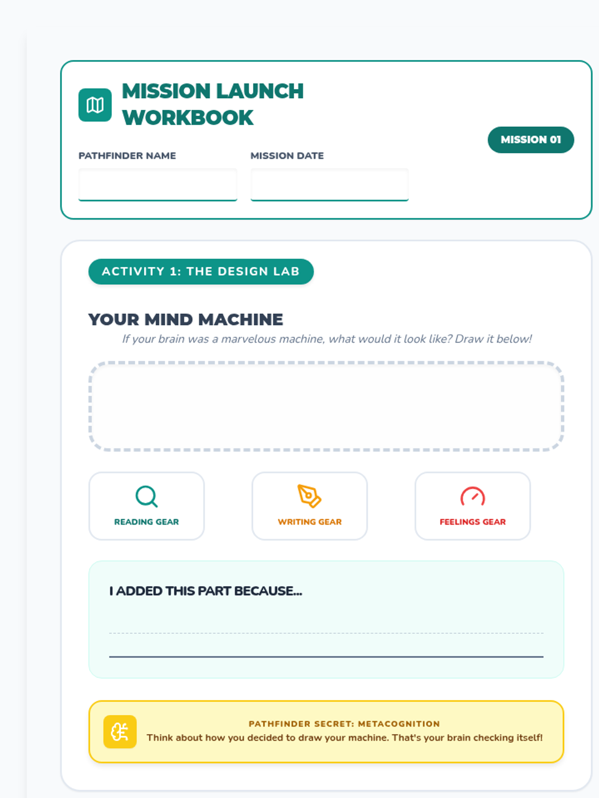 A 12-session journey for children aged 6-8 that integrates English literacy skills (comprehension, writing, grammar) with essential emotional and thinking skills using the 'Mind Mechanics' framework. Students learn to decode information, construct ideas precisely, and regulate their thoughts and responses for better school performance and well-being.