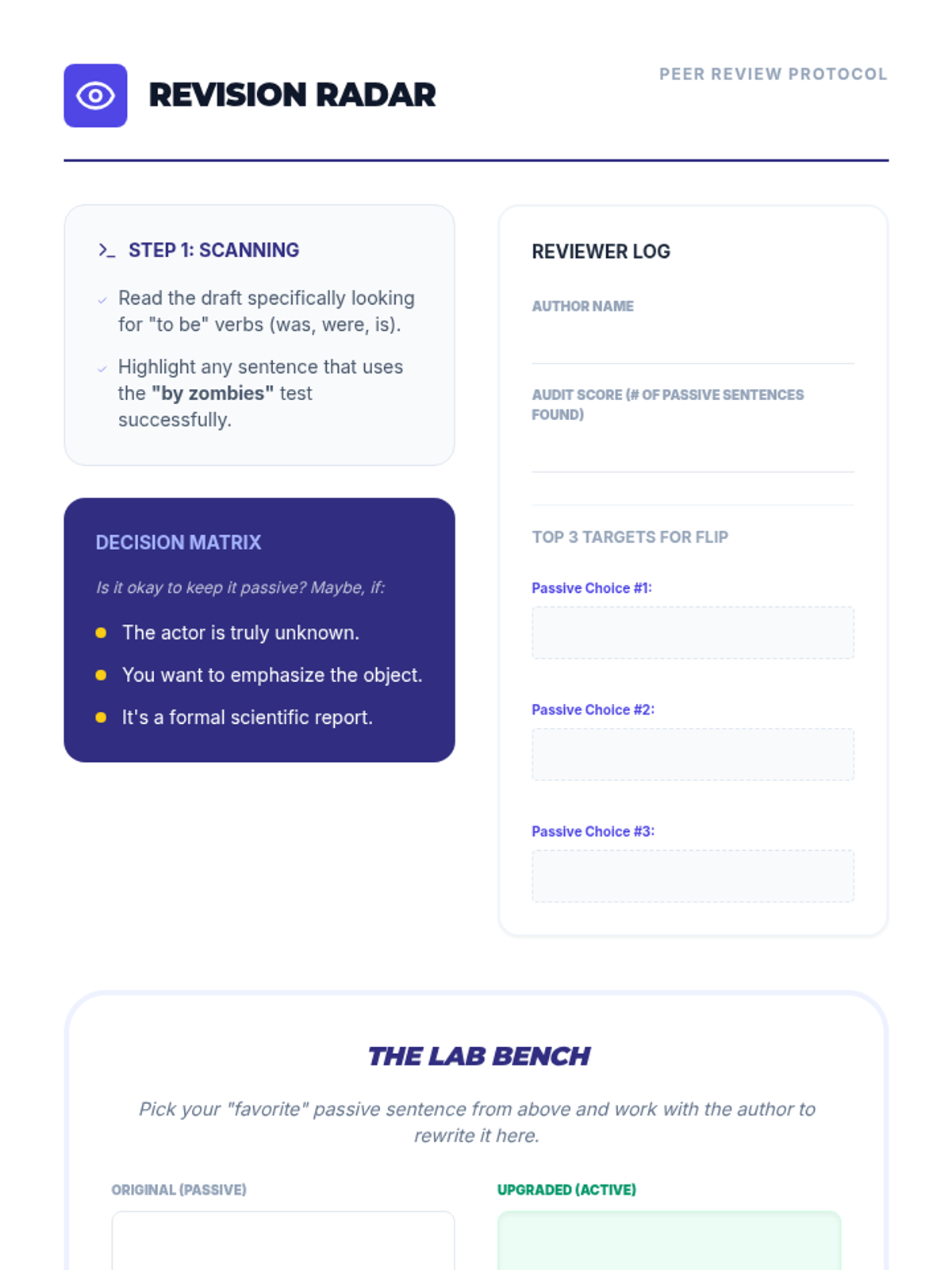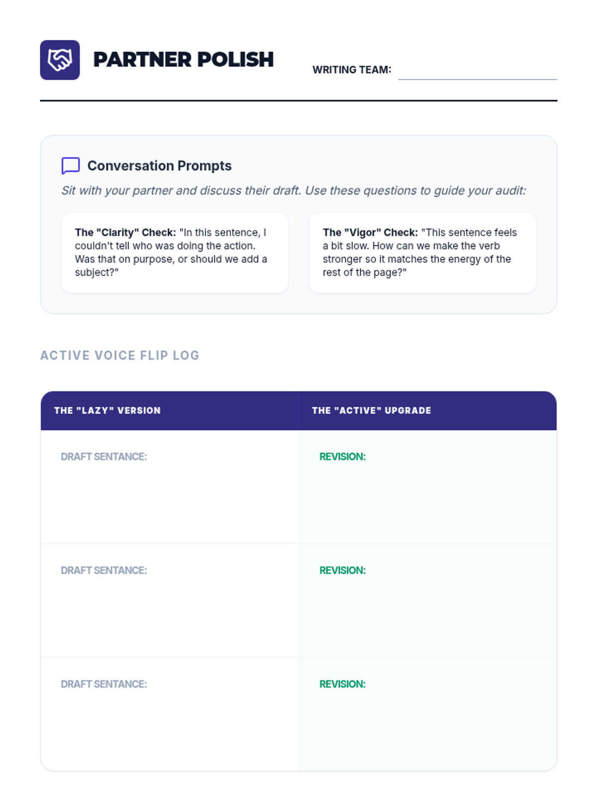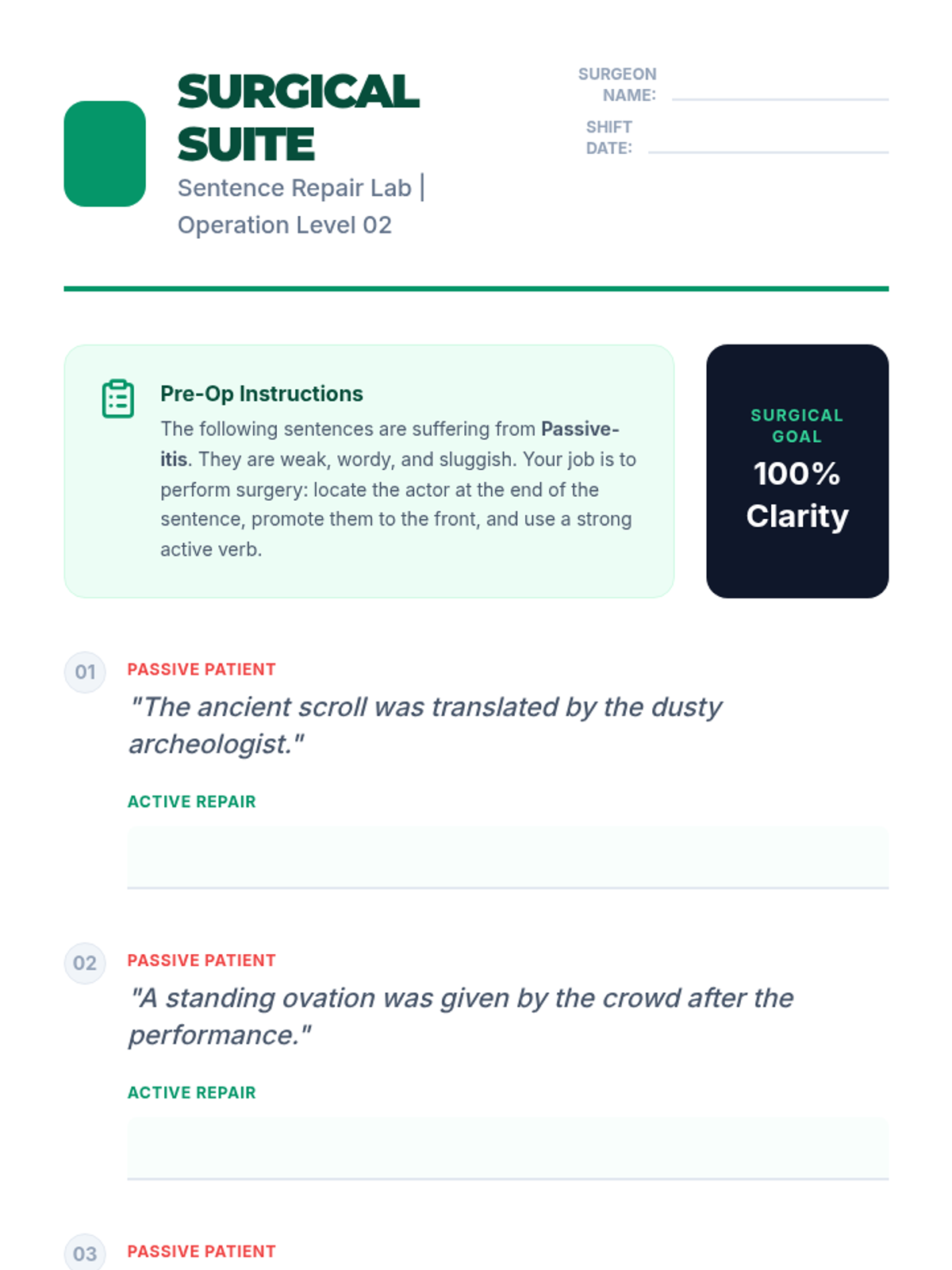 A middle school writing sequence focused on the mastery of active and passive voice. Students learn to identify passive constructions, evaluate their impact on clarity, and revise sentences to increase vigor and directness in their own writing.