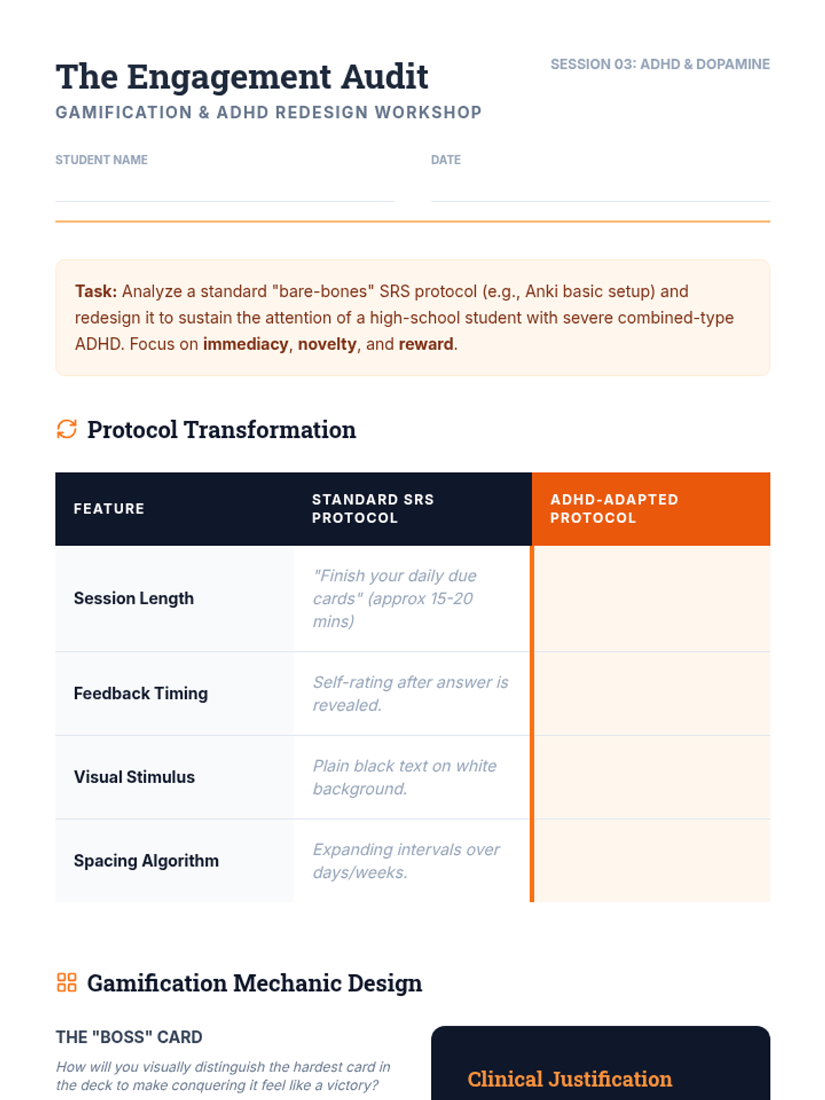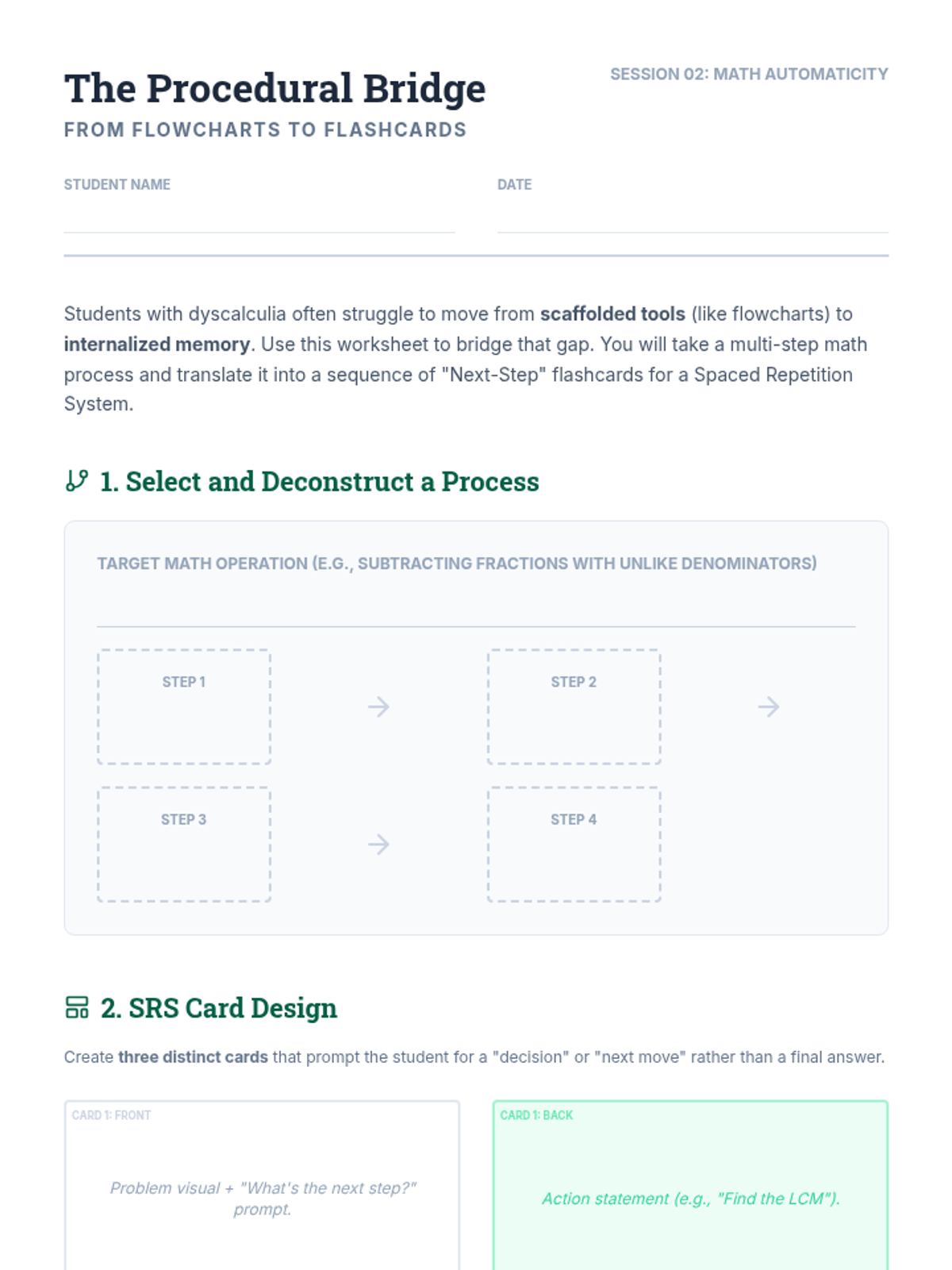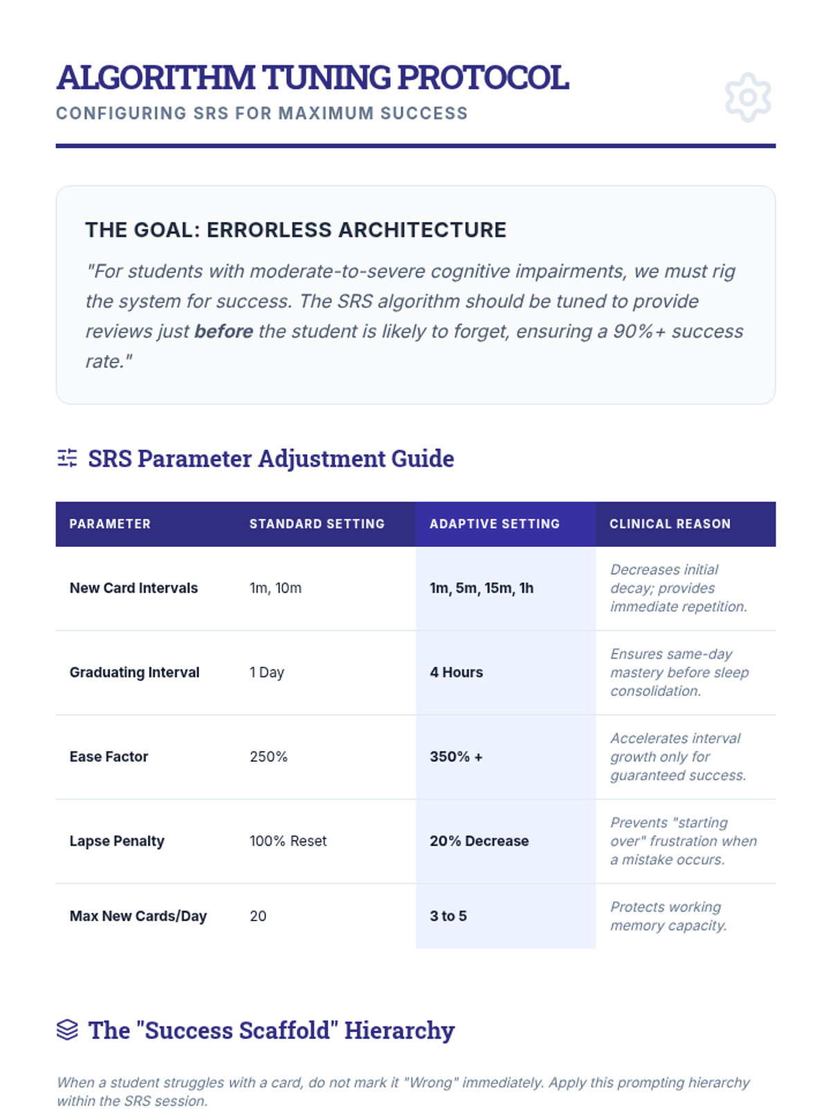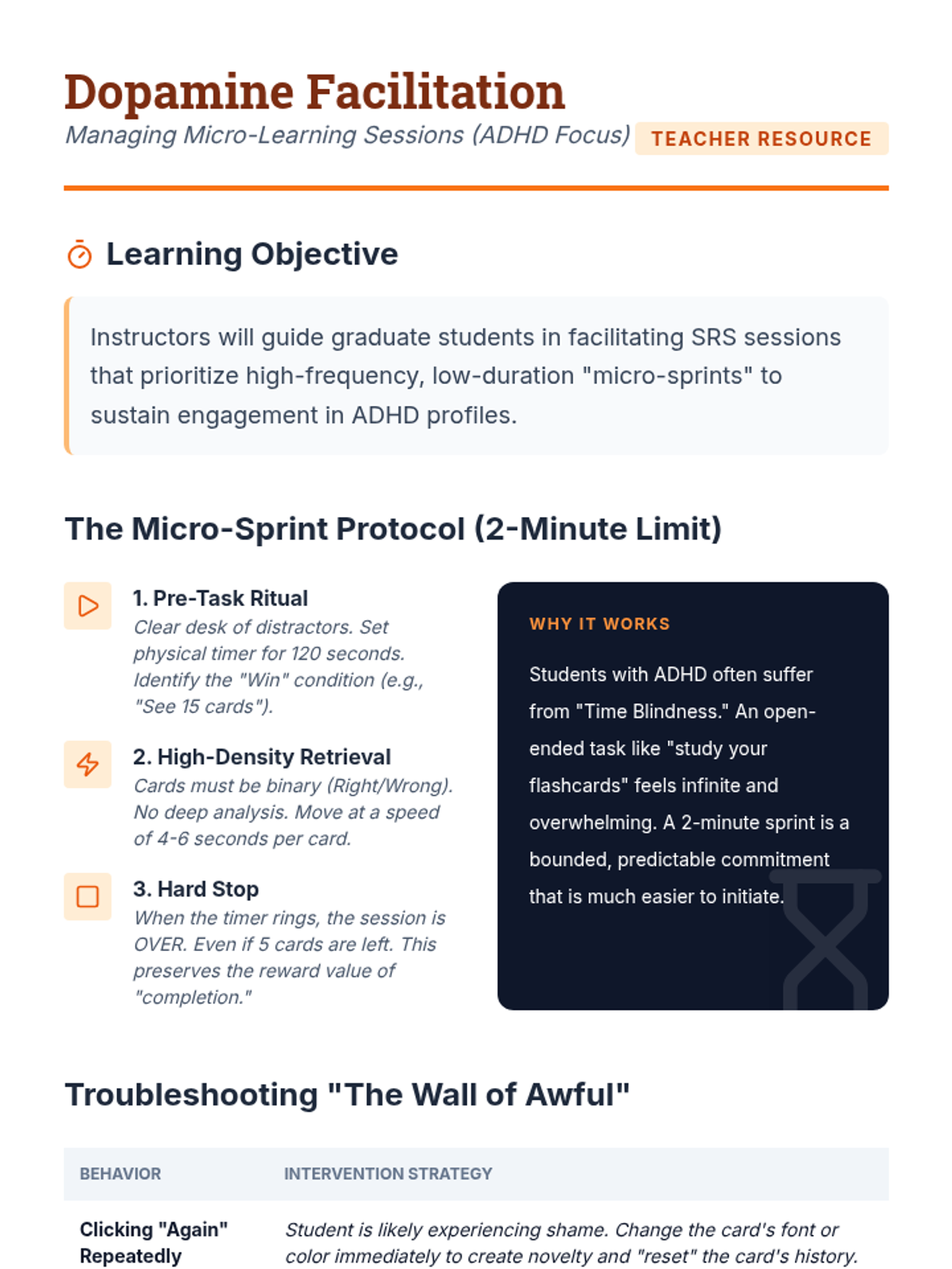 This graduate-level sequence examines how to adapt spaced repetition systems (SRS) for students with diverse learning needs, including Dyslexia, ADHD, and Dyscalculia. Students will learn to modify content, timing, and engagement strategies to bypass cognitive barriers and support long-term memory.