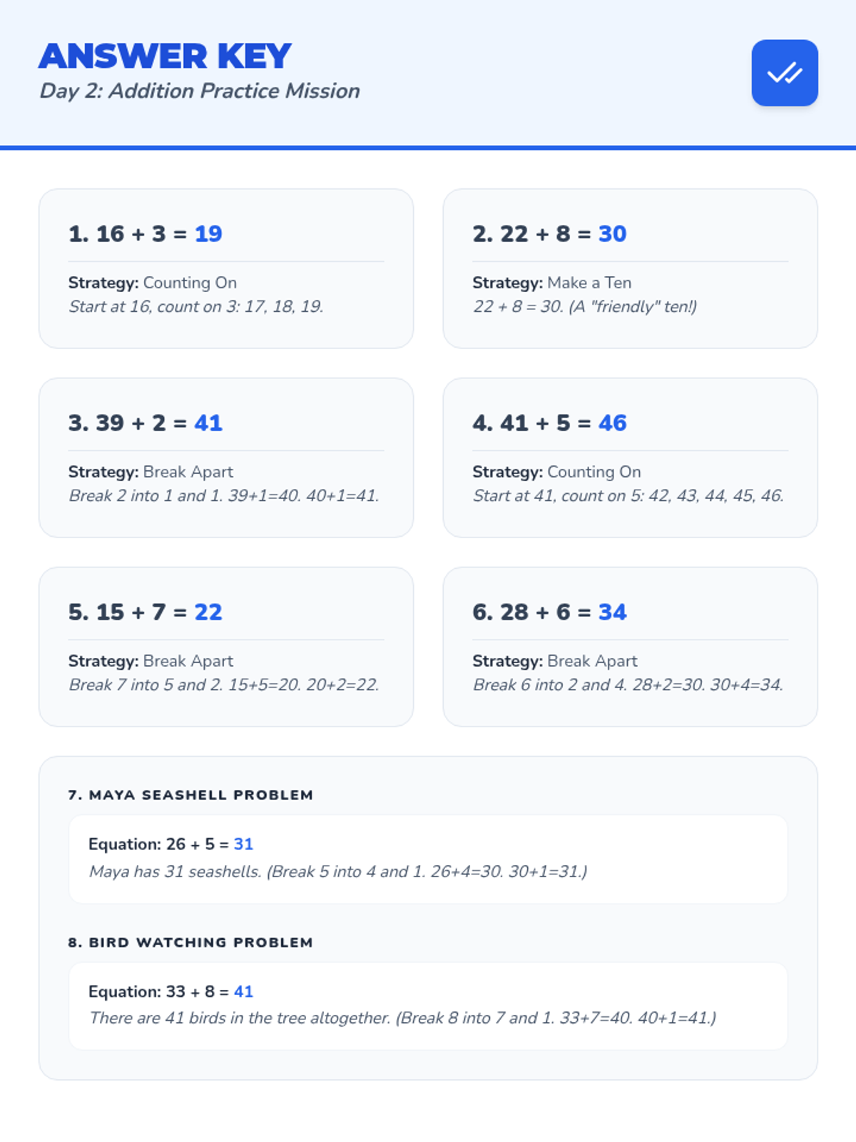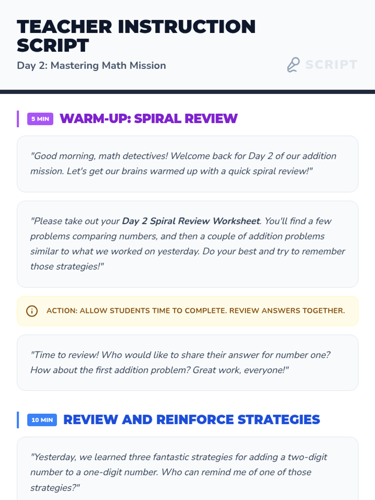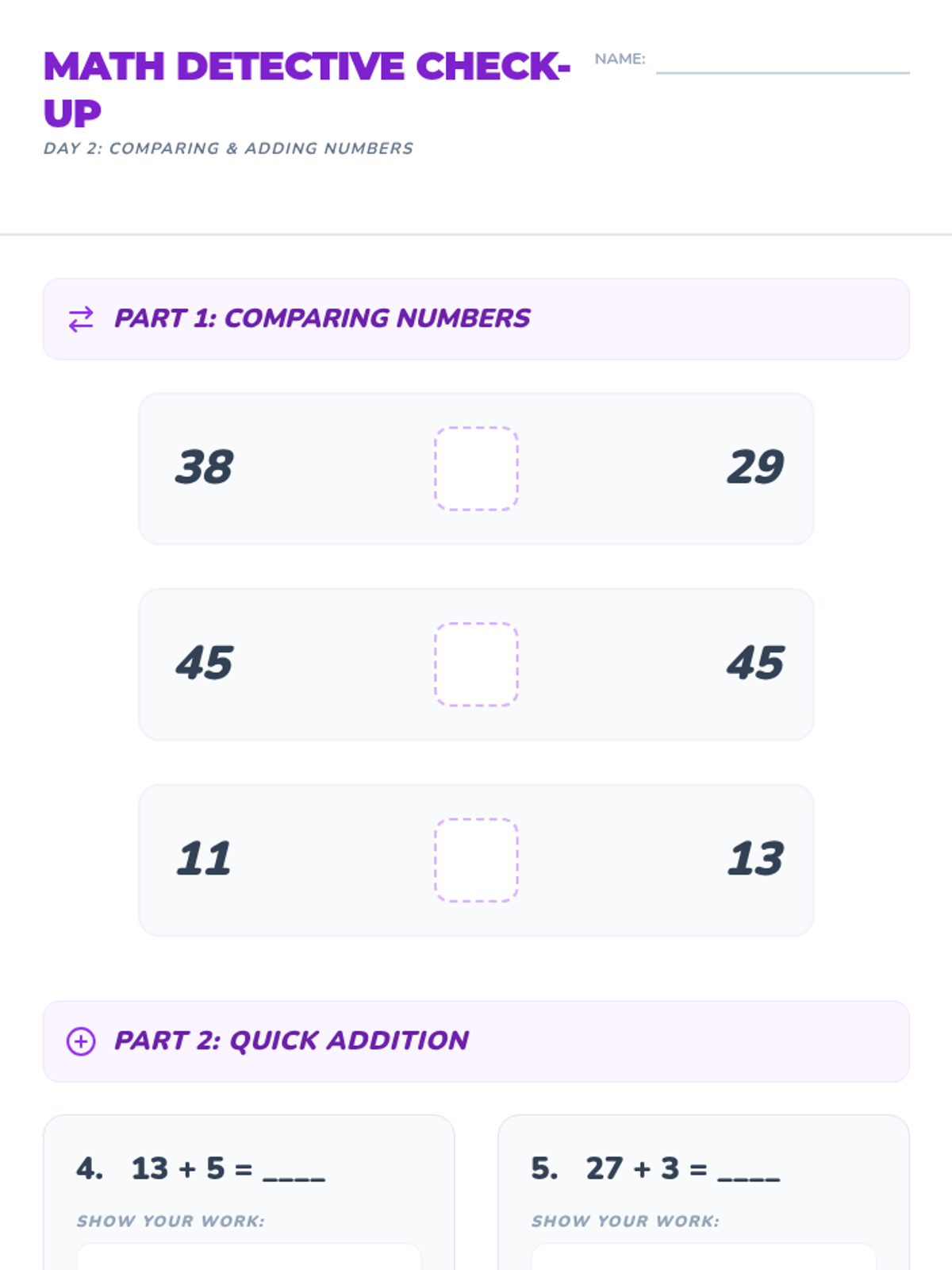 A comprehensive one-week Tier 3 math intervention for first graders focusing on missing addends. Students act as 'Math Detectives' using ten frames, number lines, and concrete strategies to solve numerical mysteries.