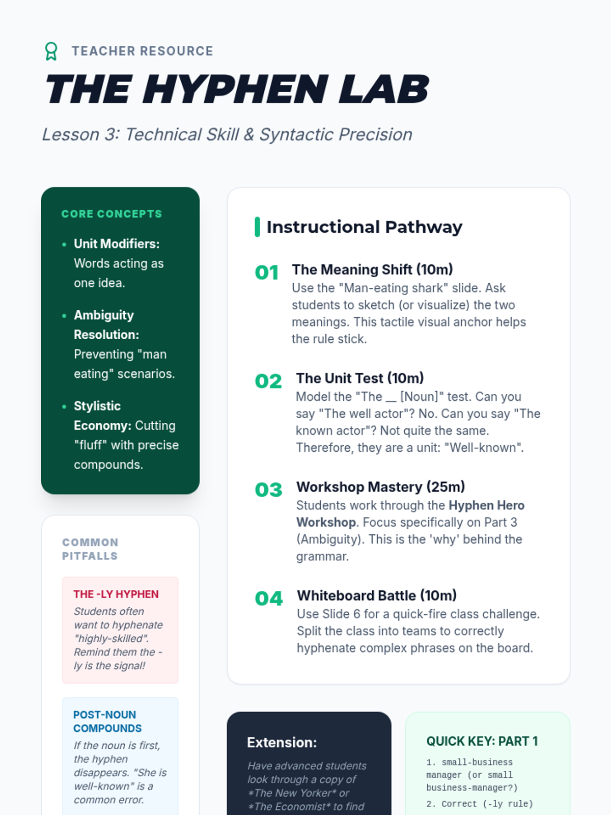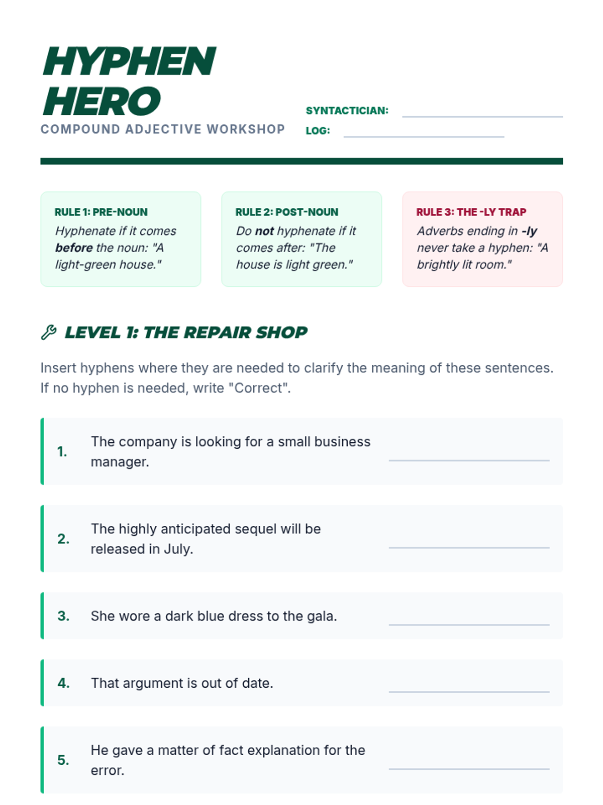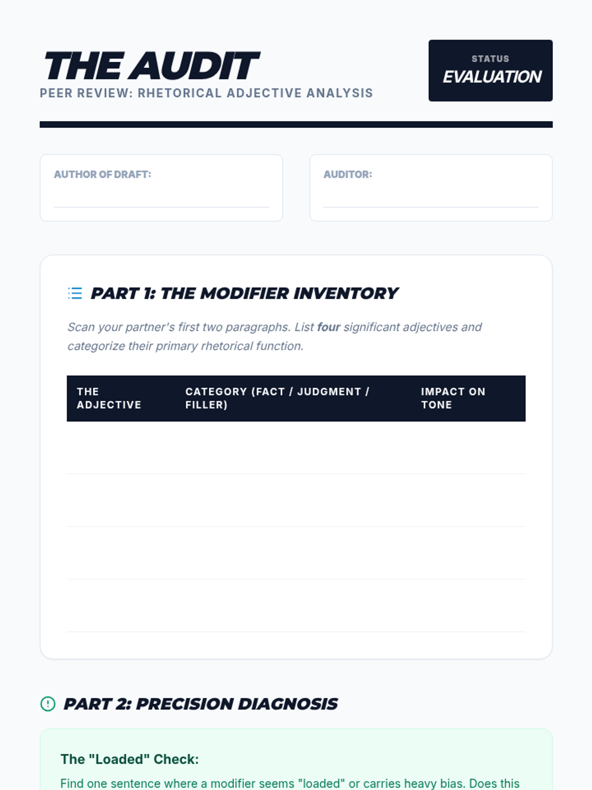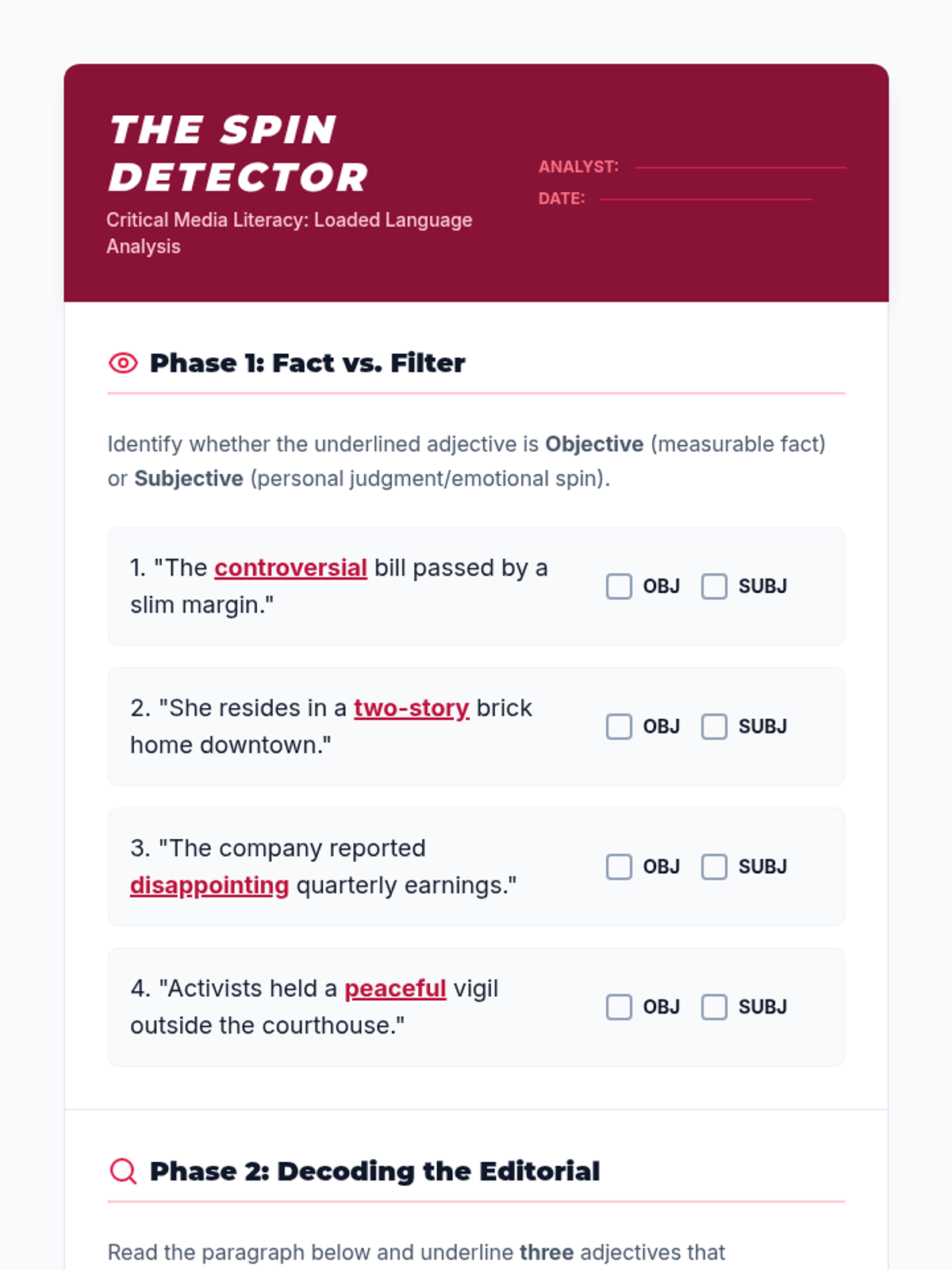 A sequence for 11th Grade students focusing on the rhetorical impact of adjectives in argumentative and non-fiction writing. Students learn to analyze connotation, identify bias in media, master hyphenation for clarity, and prune redundant modifiers to strengthen their own prose.