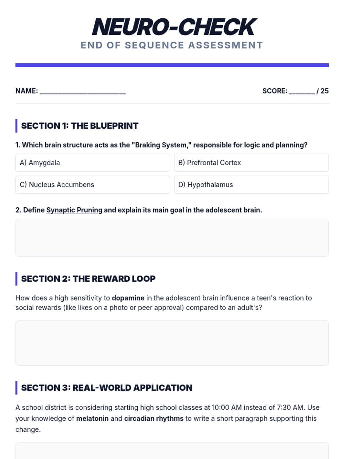 This sequence explores the neurobiological changes occurring during adolescence, specifically the development of the prefrontal cortex and the limbic system, and how these changes influence decision-making, risk-taking, and legal responsibility.