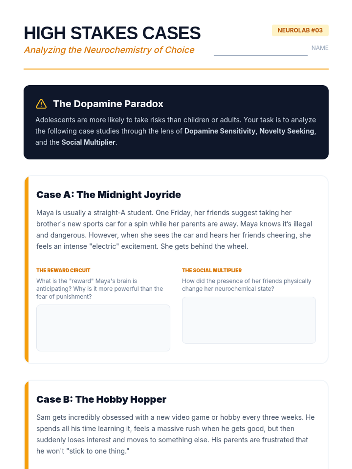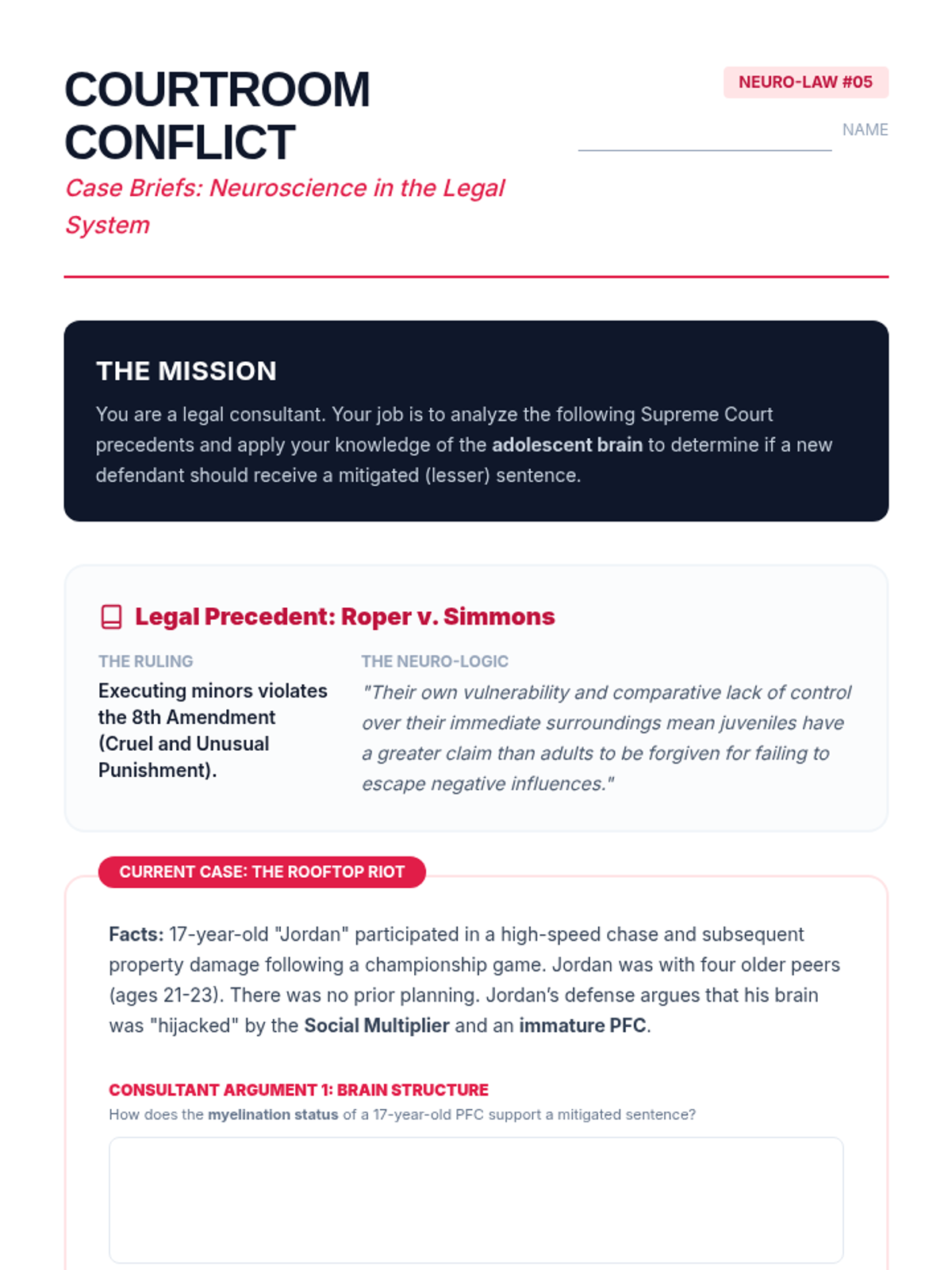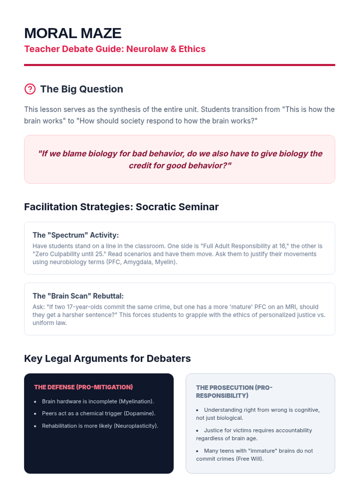 A comprehensive 10th-grade psychology unit exploring the neurobiology of the adolescent brain, focusing on brain structure, neuroplasticity, neurochemistry, environmental impacts, and the ethical implications for the legal system.