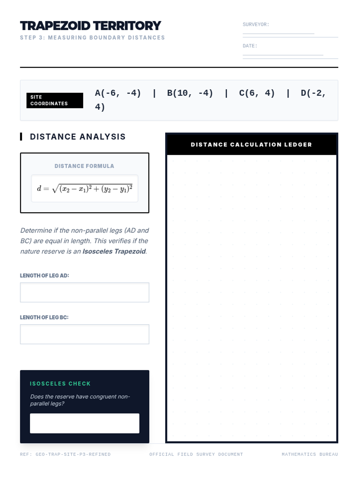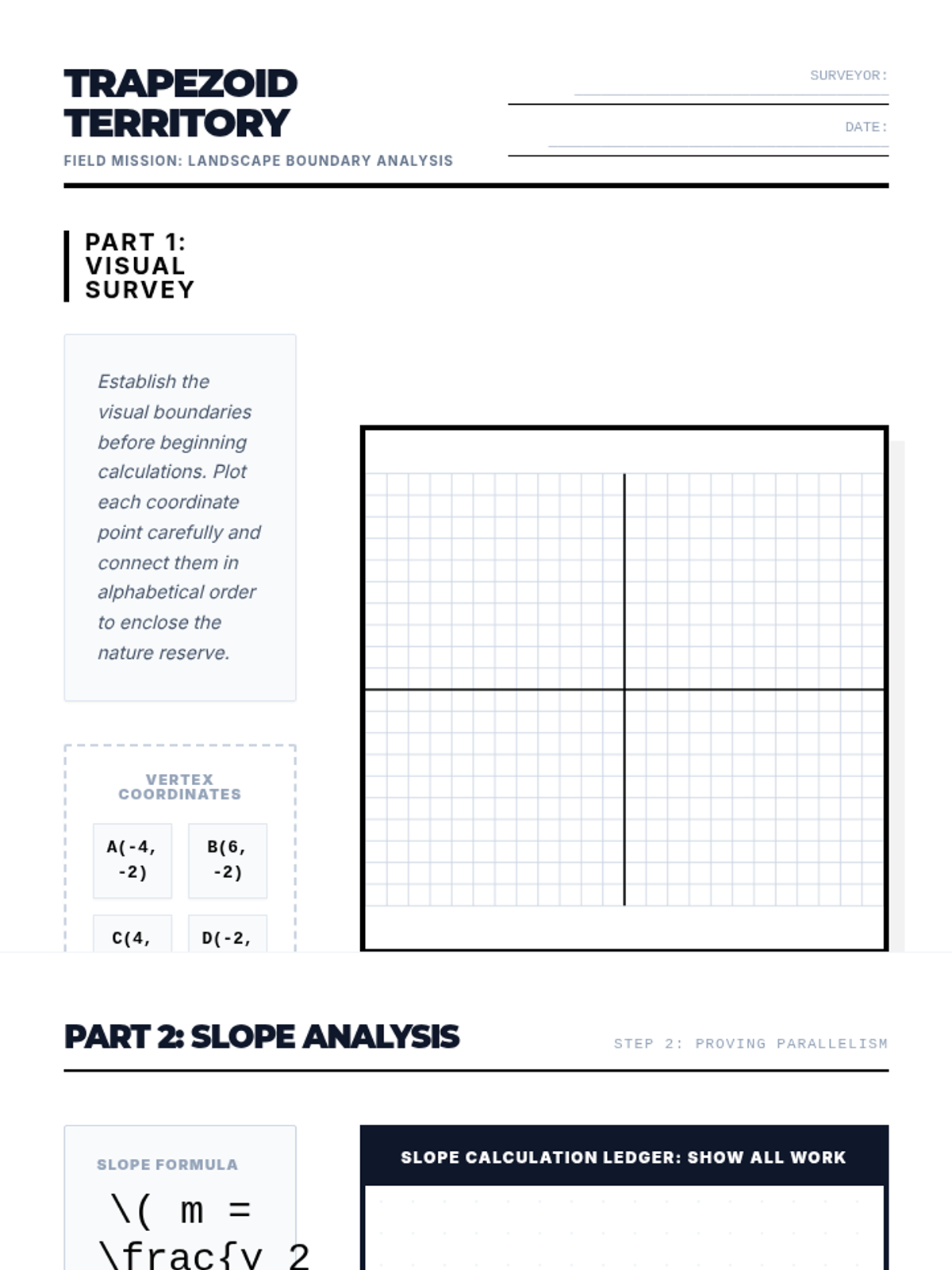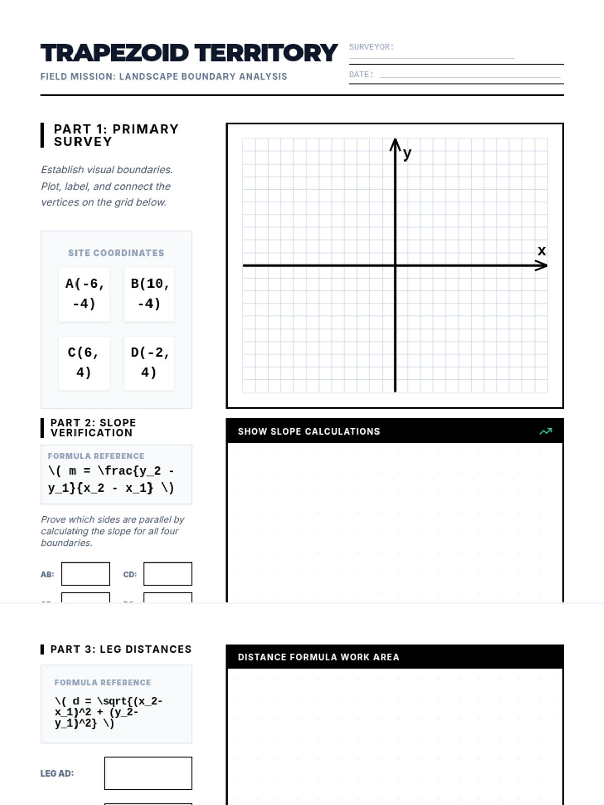 A high-level coordinate geometry sequence where students apply coordinate algebra formulas to identify and verify the properties of quadrilaterals and other polygons on the coordinate plane.