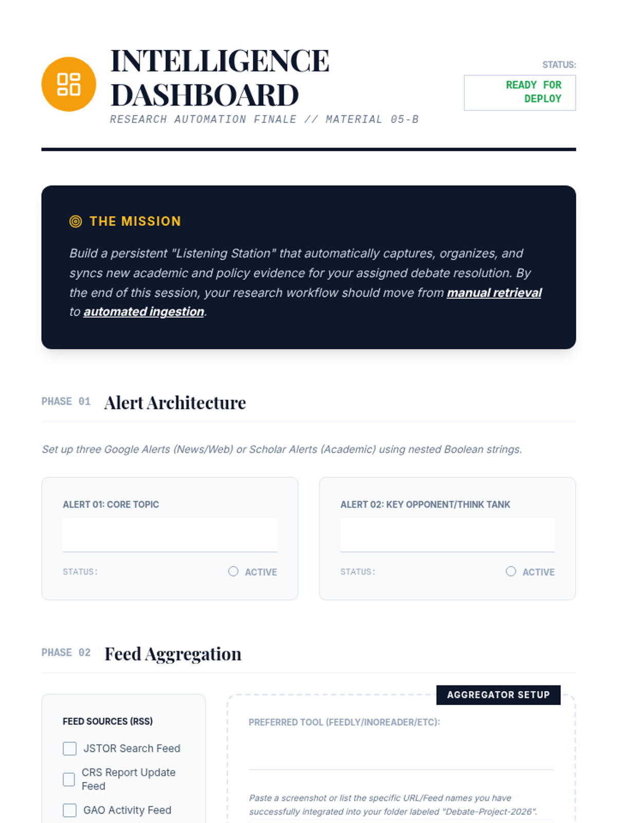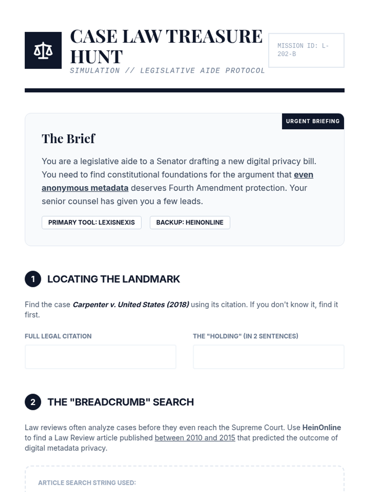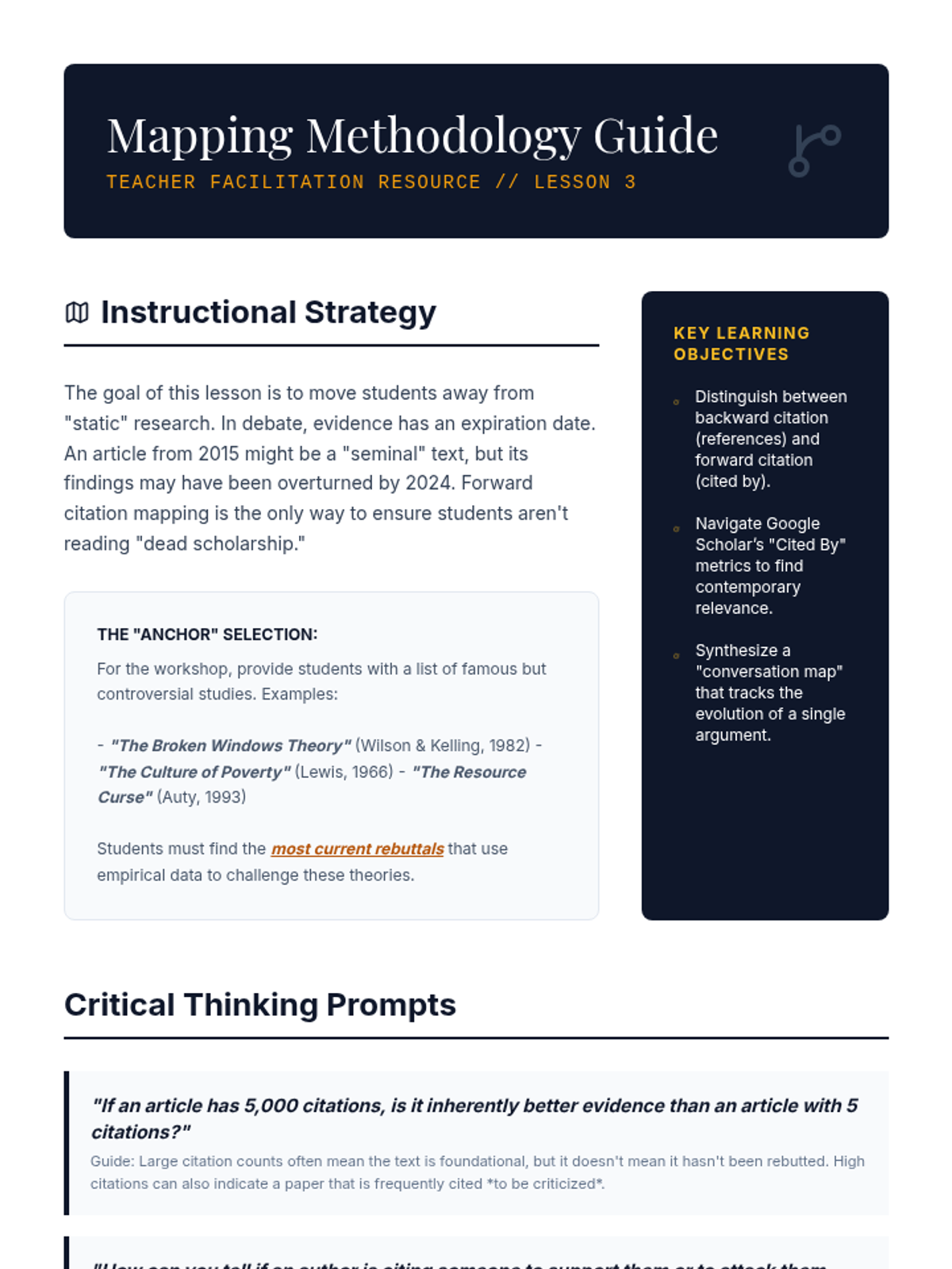 This sequence equips undergraduate debaters with advanced information retrieval skills, moving from complex Boolean logic and legal database navigation to forward citation mapping and grey literature analysis. Students master the technical mechanics of scholarly research to build robust, evidence-based cases.