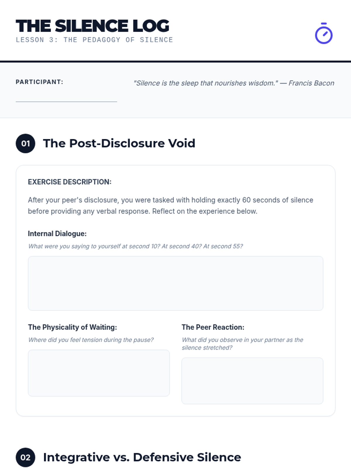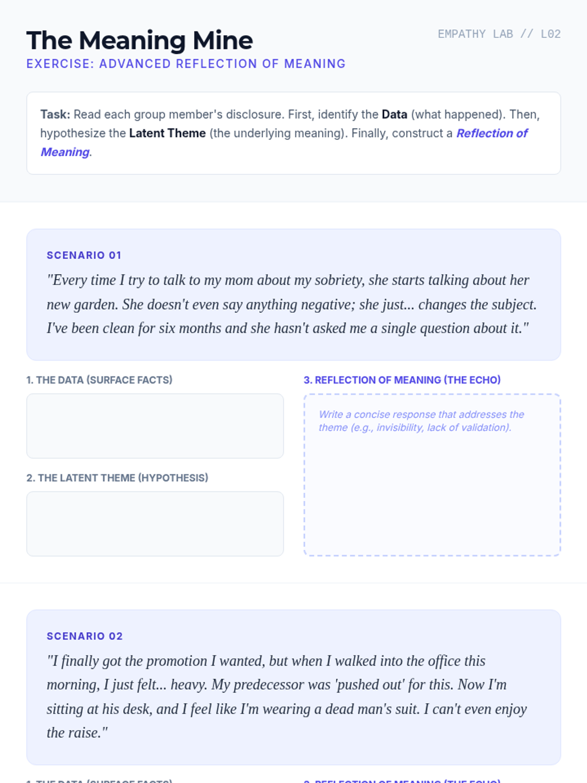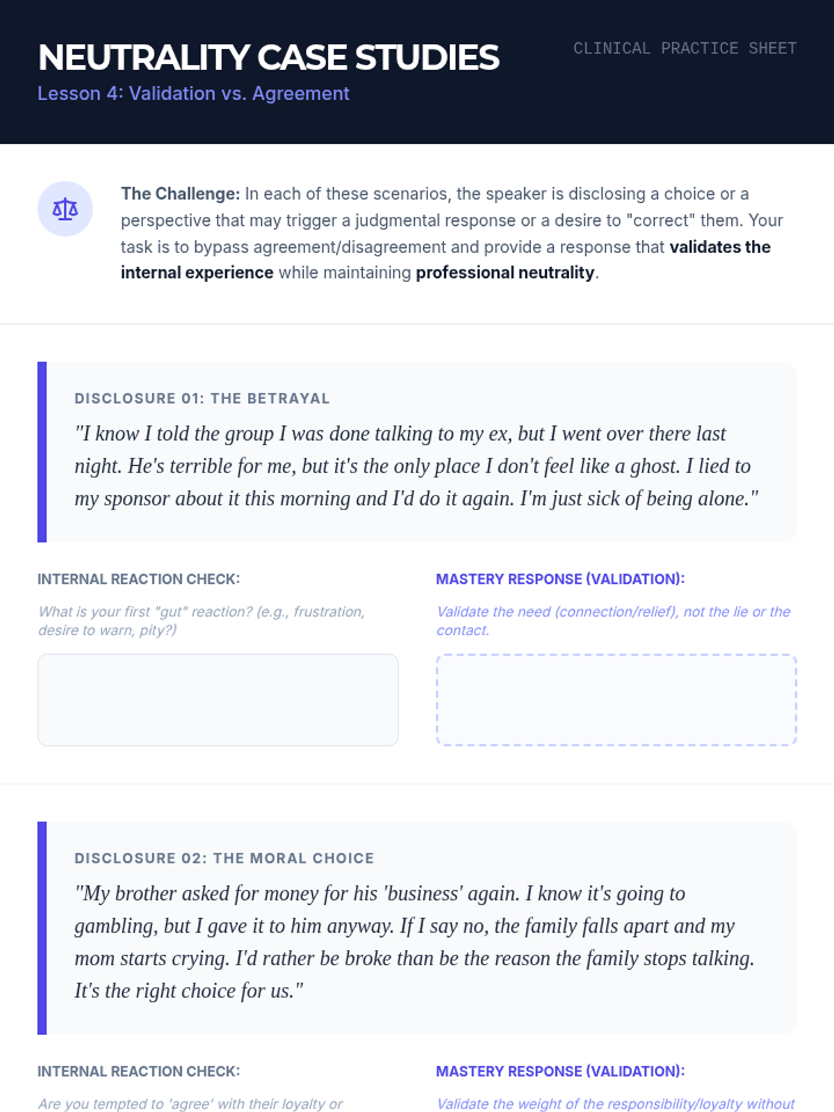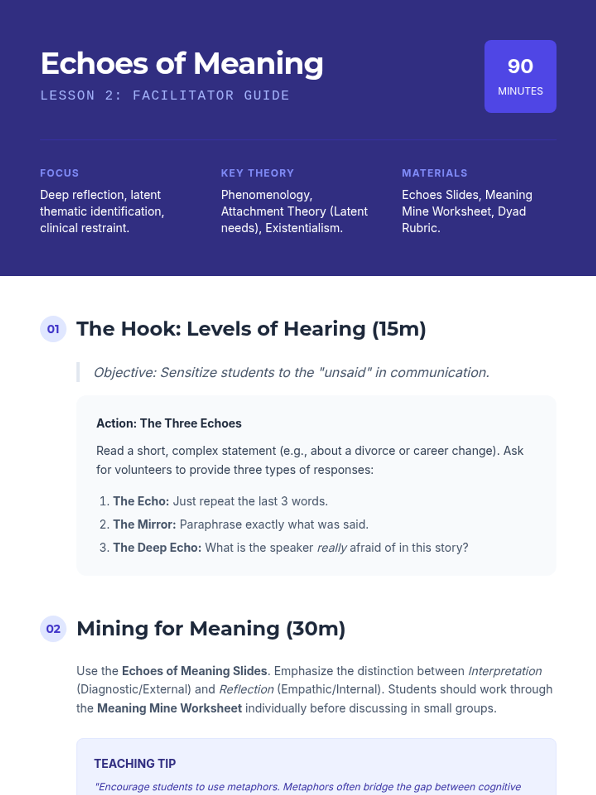 An advanced workshop sequence for graduate students focusing on the micro-skills of attunement, deep reflection, the strategic use of silence, and the clinical distinction between validation and agreement in group support settings.