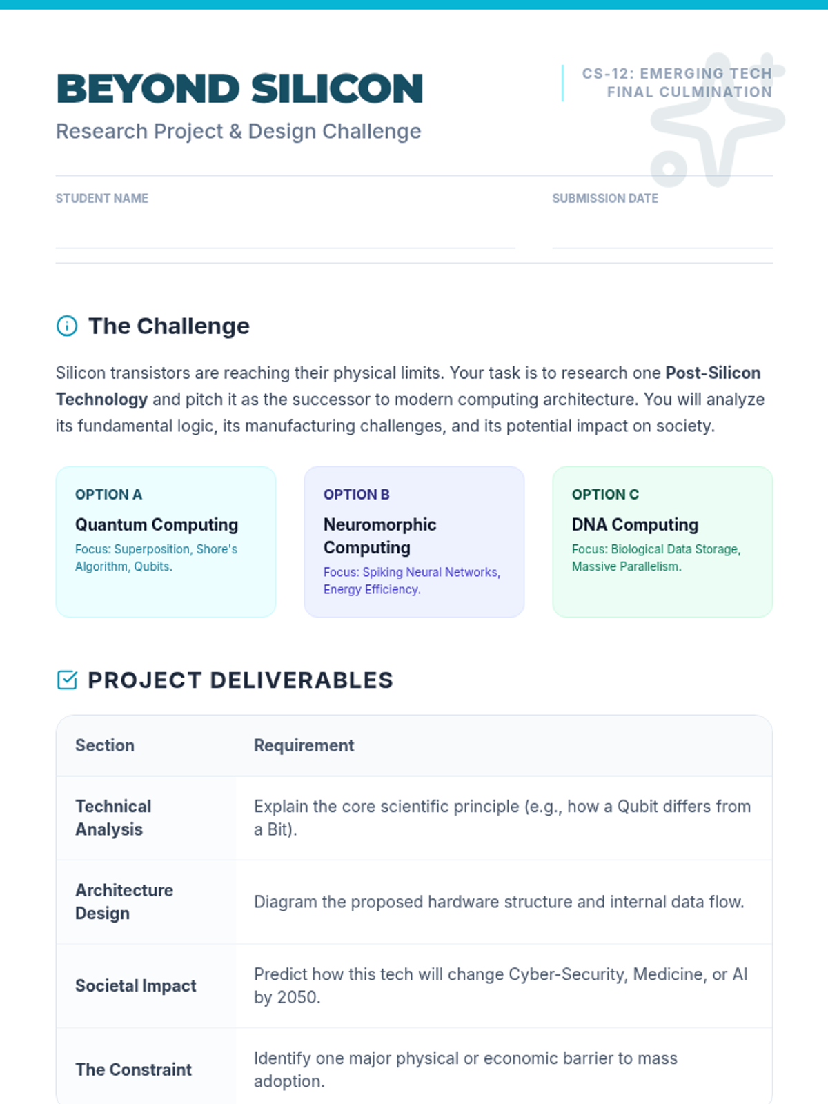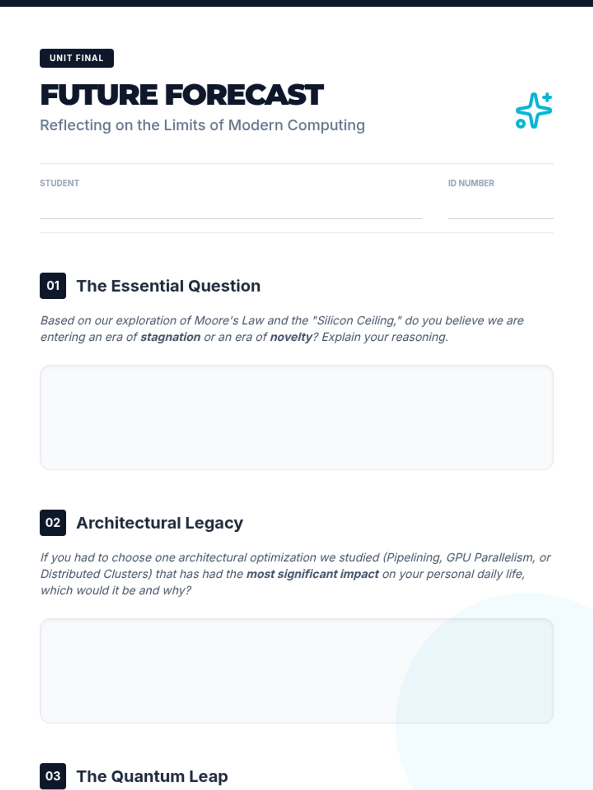 A high-level exploration of advanced computer architecture, parallel processing, and future computing paradigms for 12th-grade students. This sequence covers internal CPU optimizations, GPU parallelism, distributed systems, and emerging technologies like quantum computing.