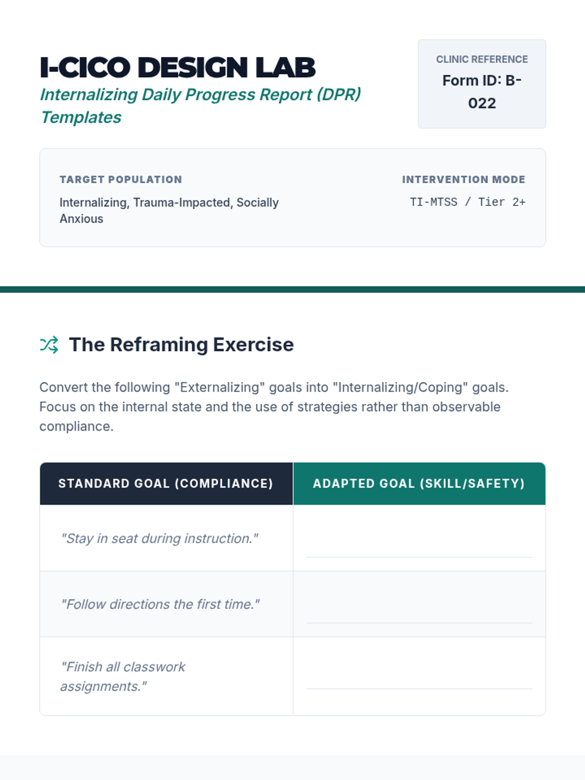 This graduate-level sequence explores the nuances of adapting standard Check-In/Check-Out (CICO) procedures for students with complex needs, including internalizing disorders, trauma histories, and academic frustrations. Students will move beyond compliance-based models to develop clinically-informed, hybrid interventions.