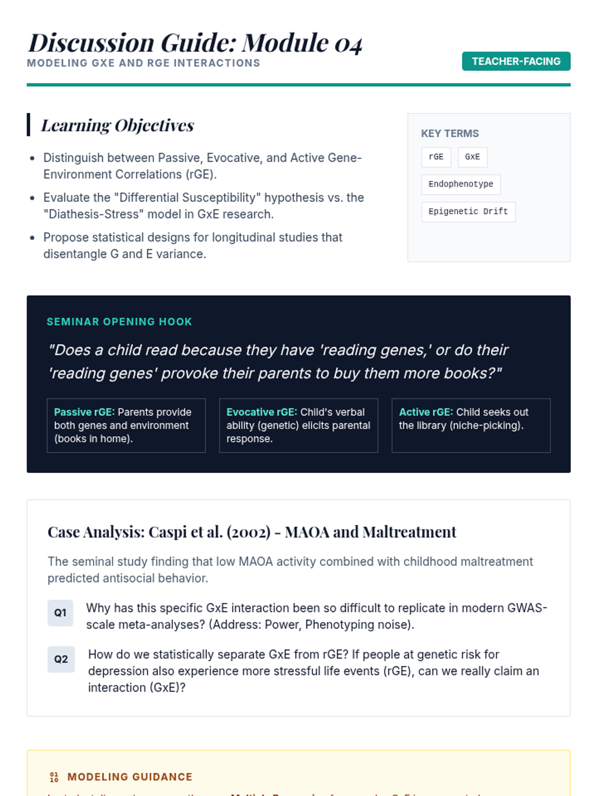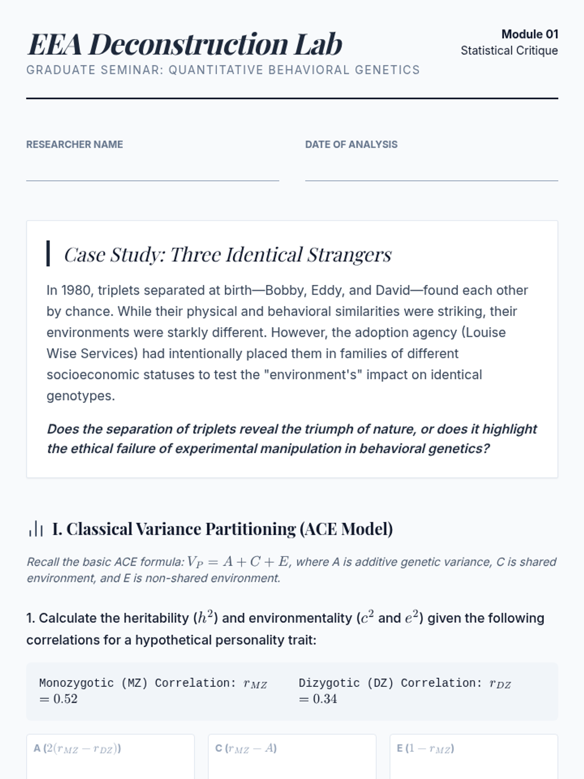 An intensive graduate-level sequence exploring the statistical and methodological foundations of behavioral genetics, focusing on the critique of classical designs, GWAS architectures, and polygenic risk scores.