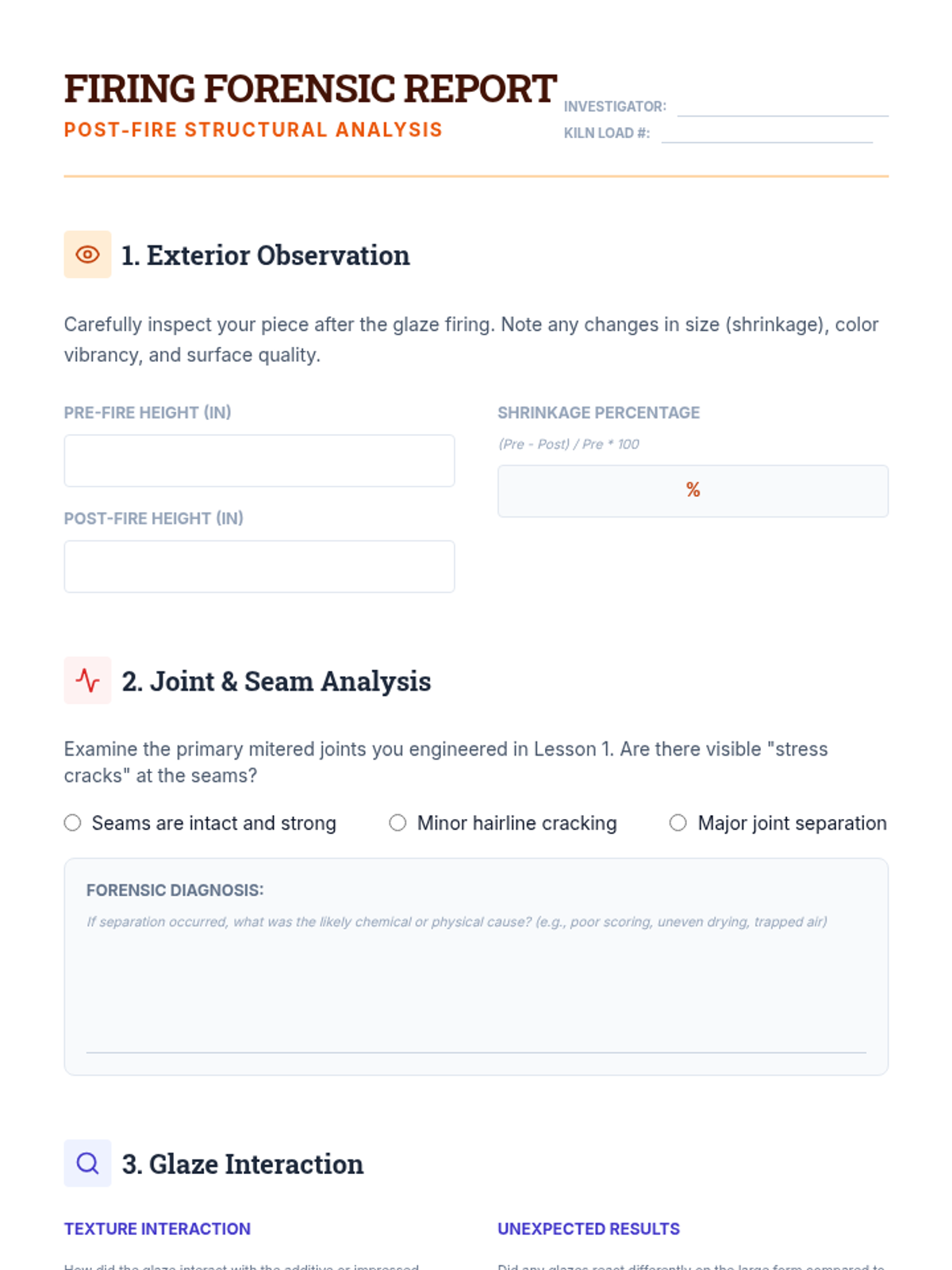 This sequence advances students' ceramic skills into complex hand-building engineering, focusing on large-scale slab construction, internal supports, surface design, and kiln firing. Students will design and build structural forms that defy gravity while mastering the chemical and physical transformations of clay and glaze.