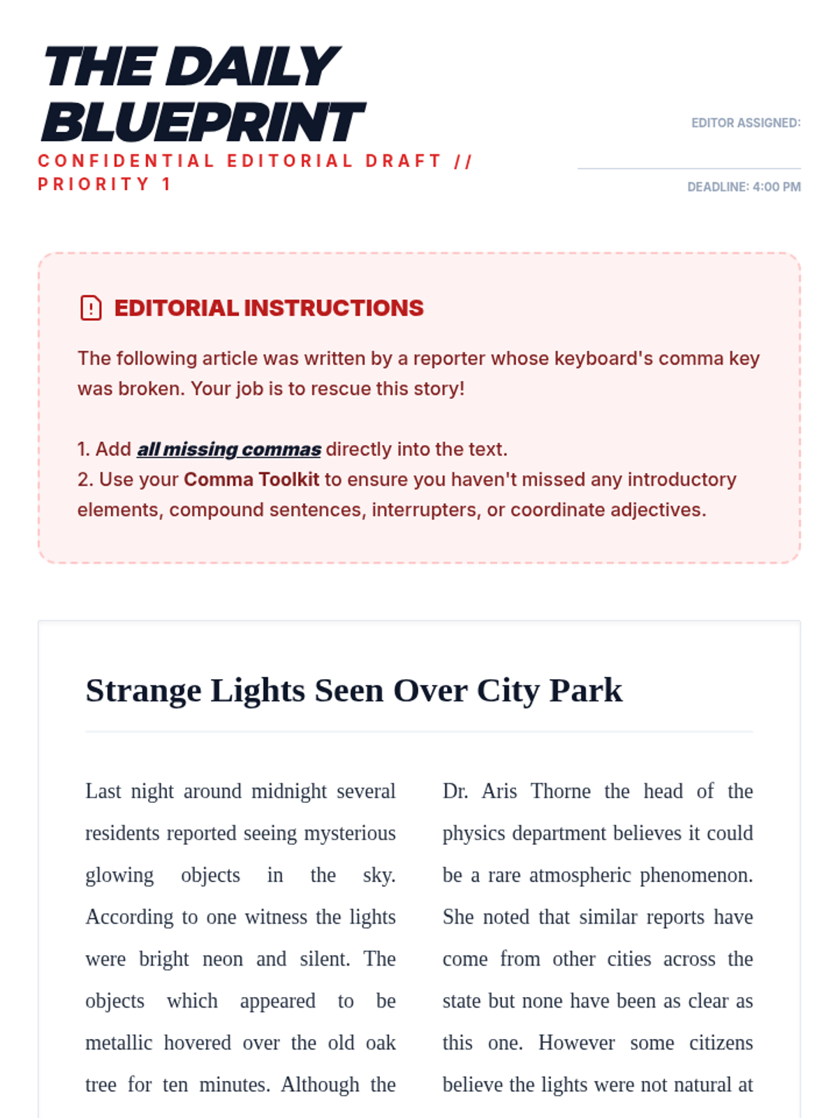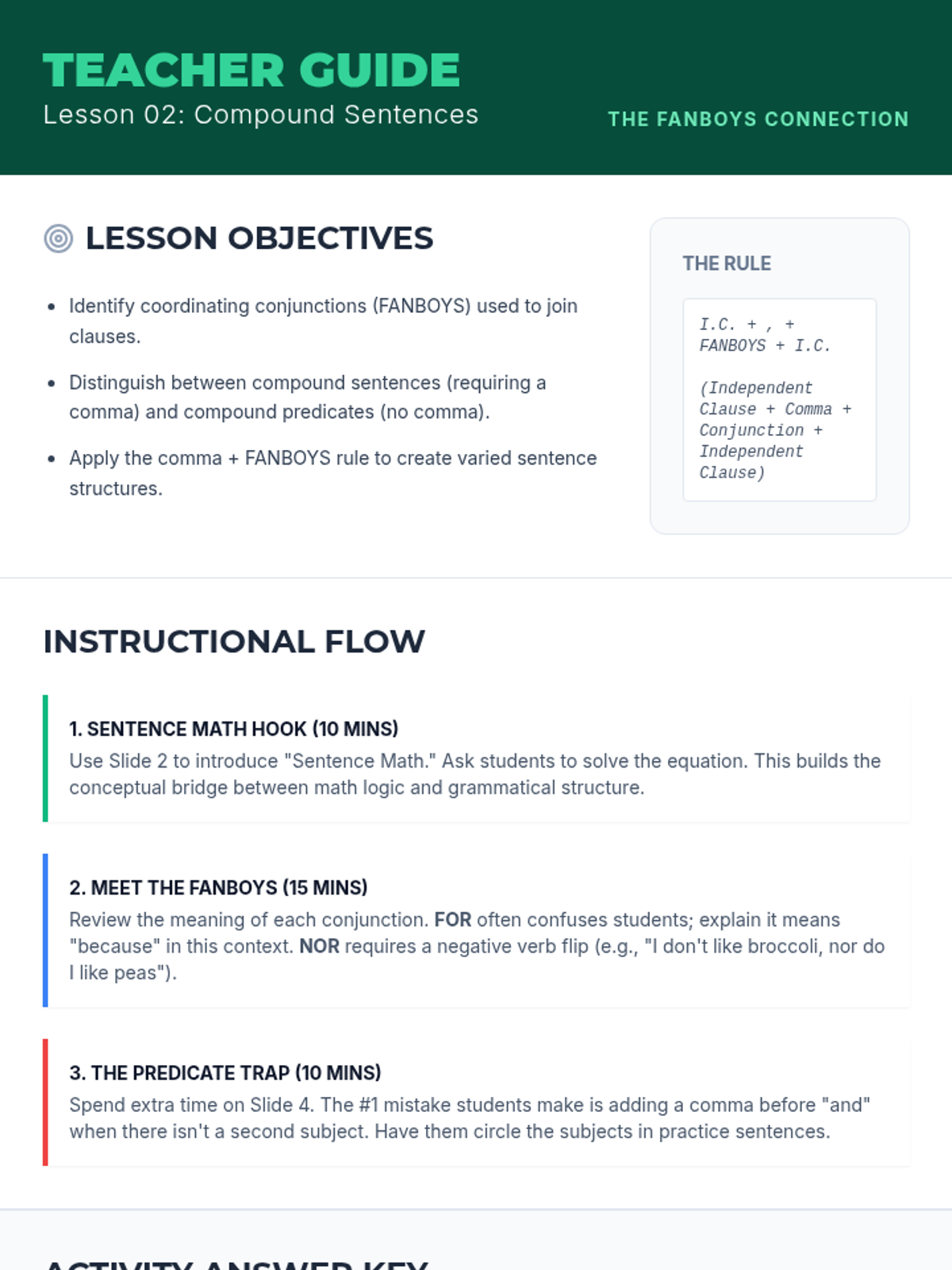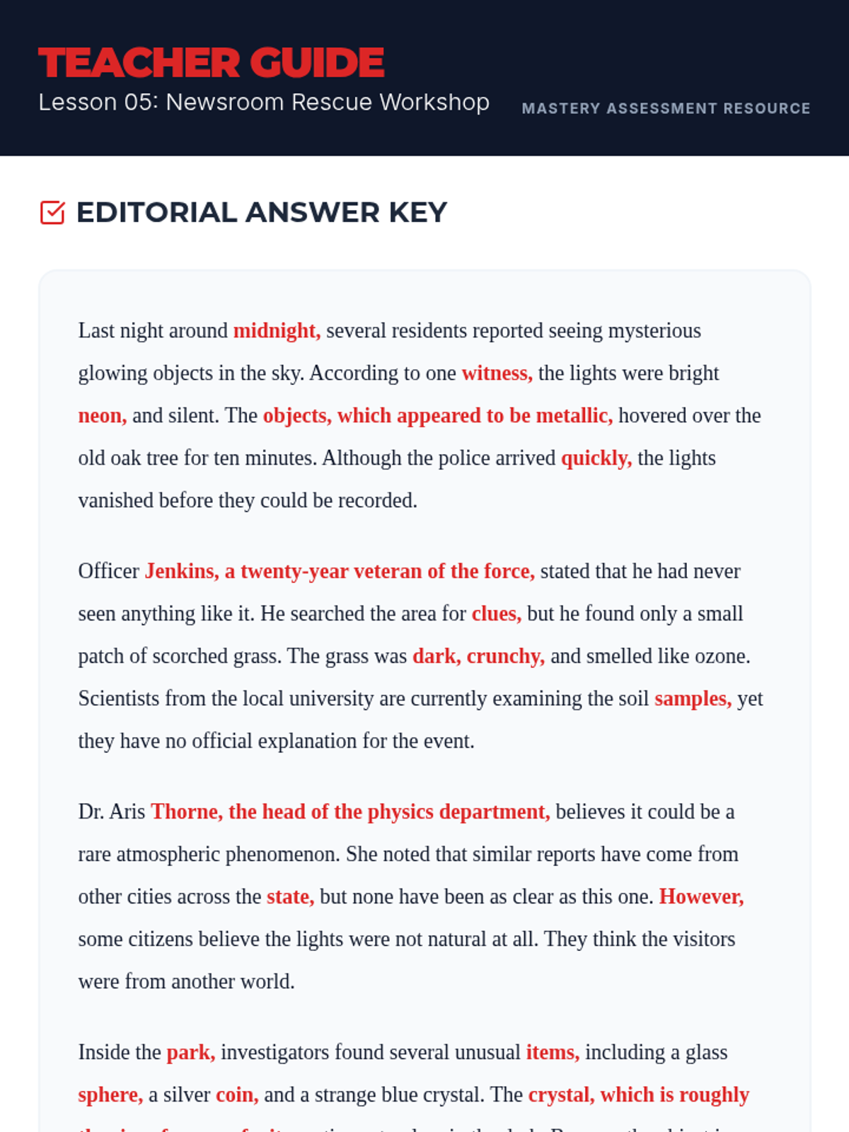A comprehensive 7th-grade unit focused on the strategic use of commas to improve sentence clarity, variety, and rhythm. Students move from basic rules to sophisticated applications in introductory elements, compound sentences, and non-essential phrases.