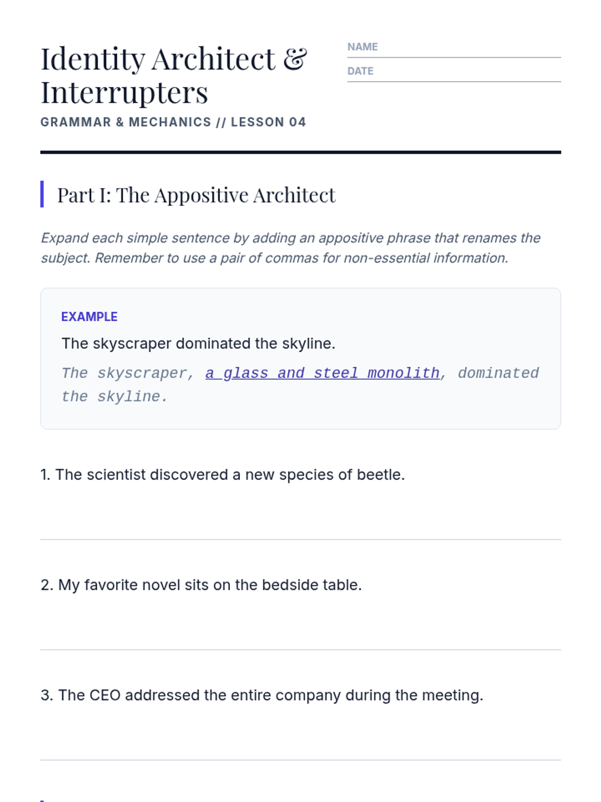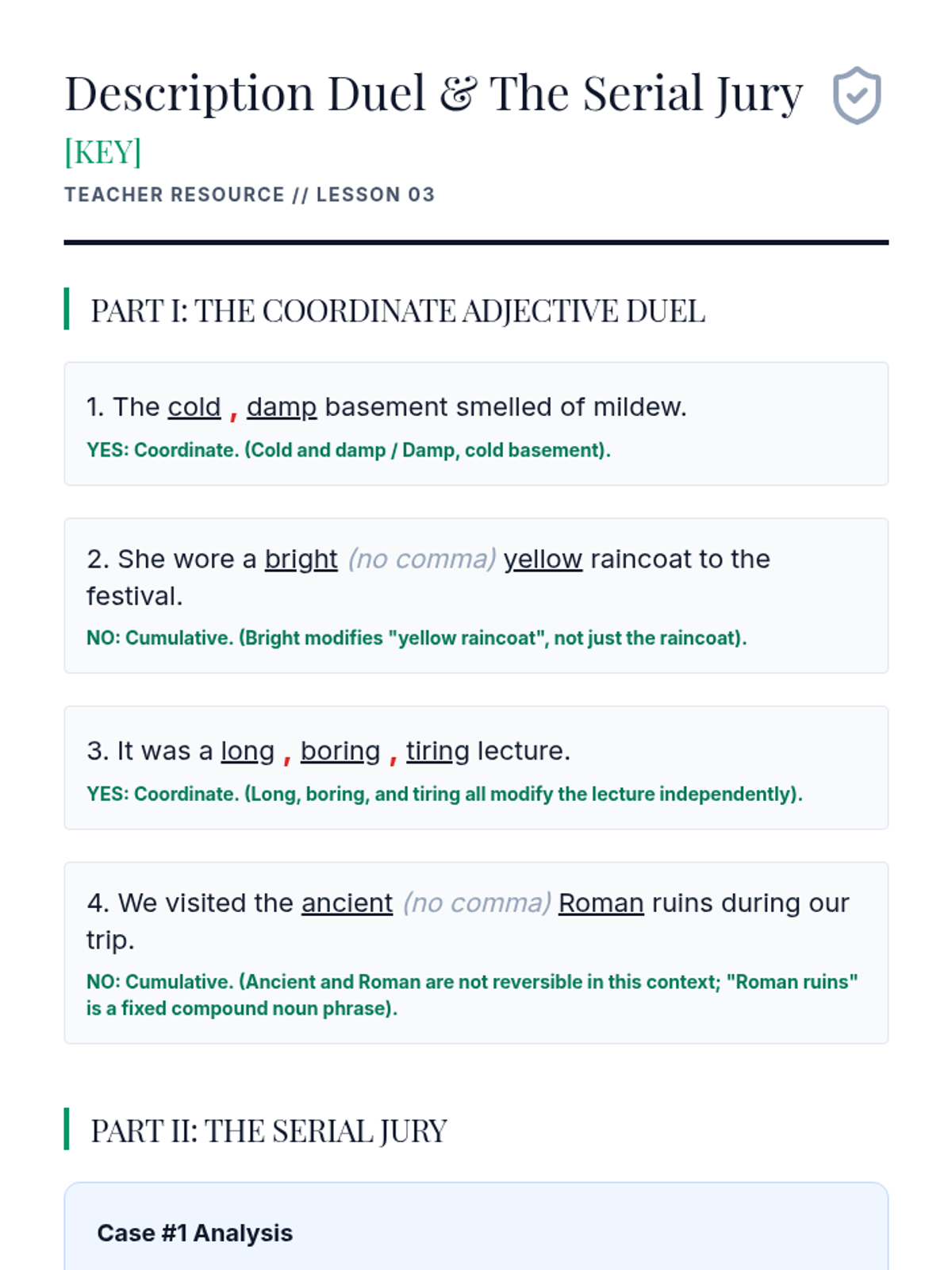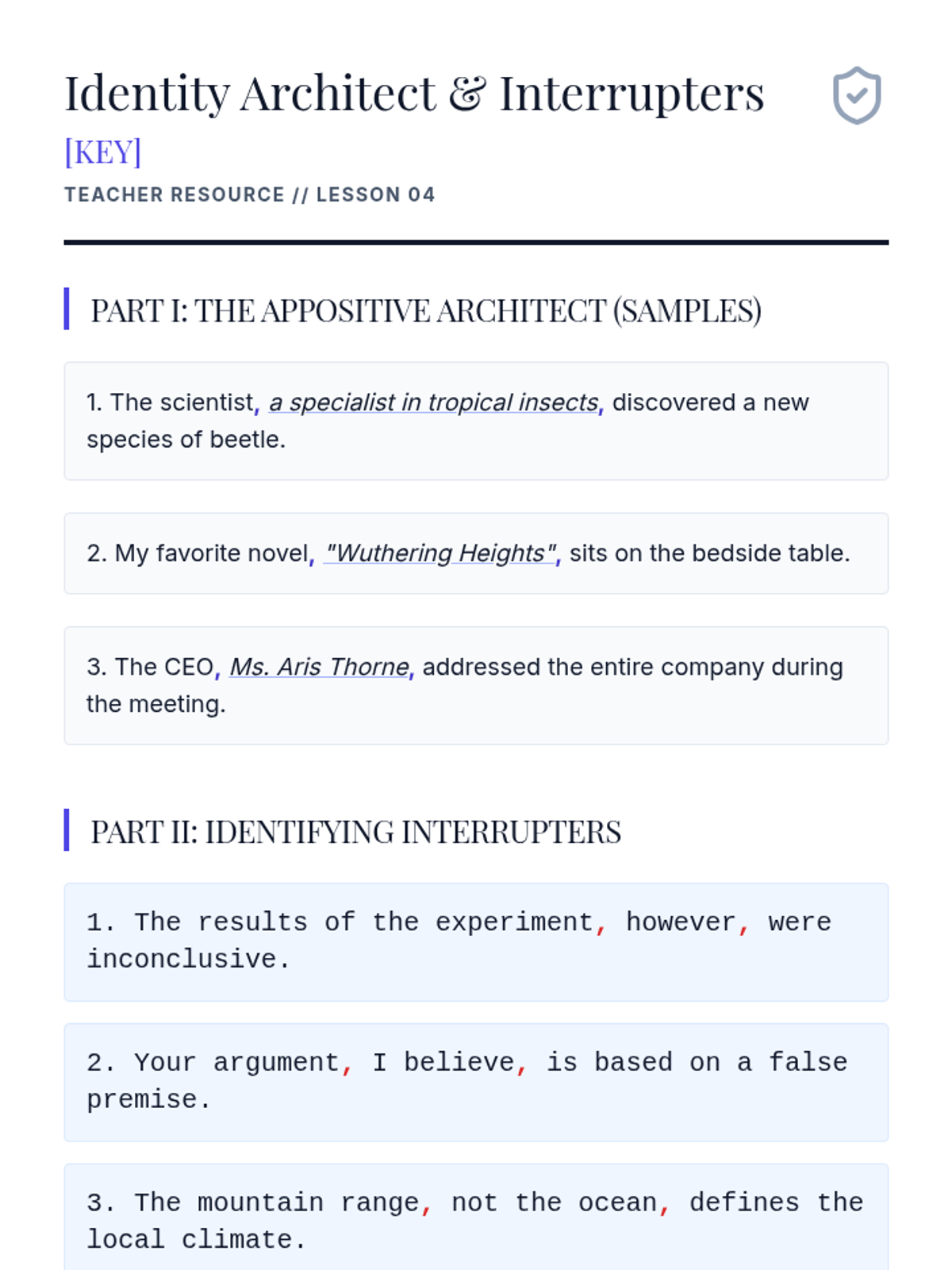 This sequence targets the nuance of advanced comma usage, specifically focusing on restrictive and non-restrictive elements, introductory phrases, and serial commas. Students explore how punctuation dictates the fundamental meaning and truth of academic and legal writing.