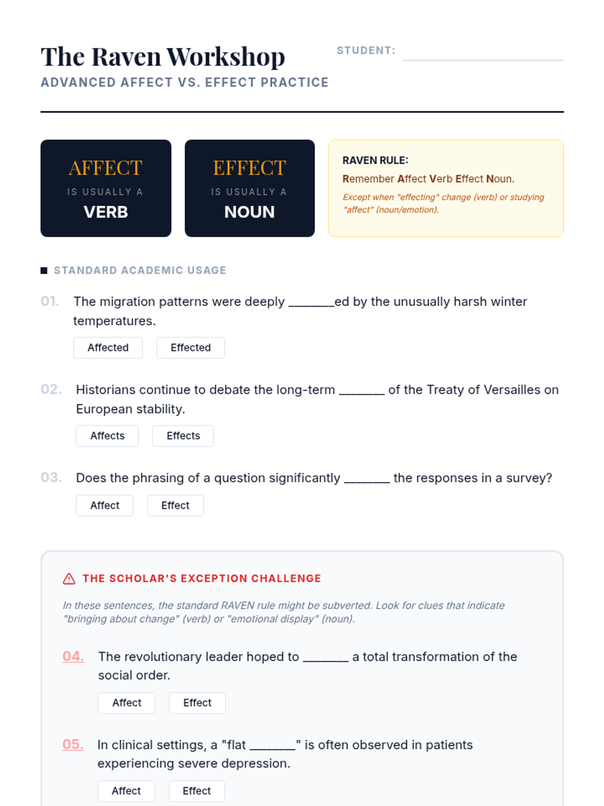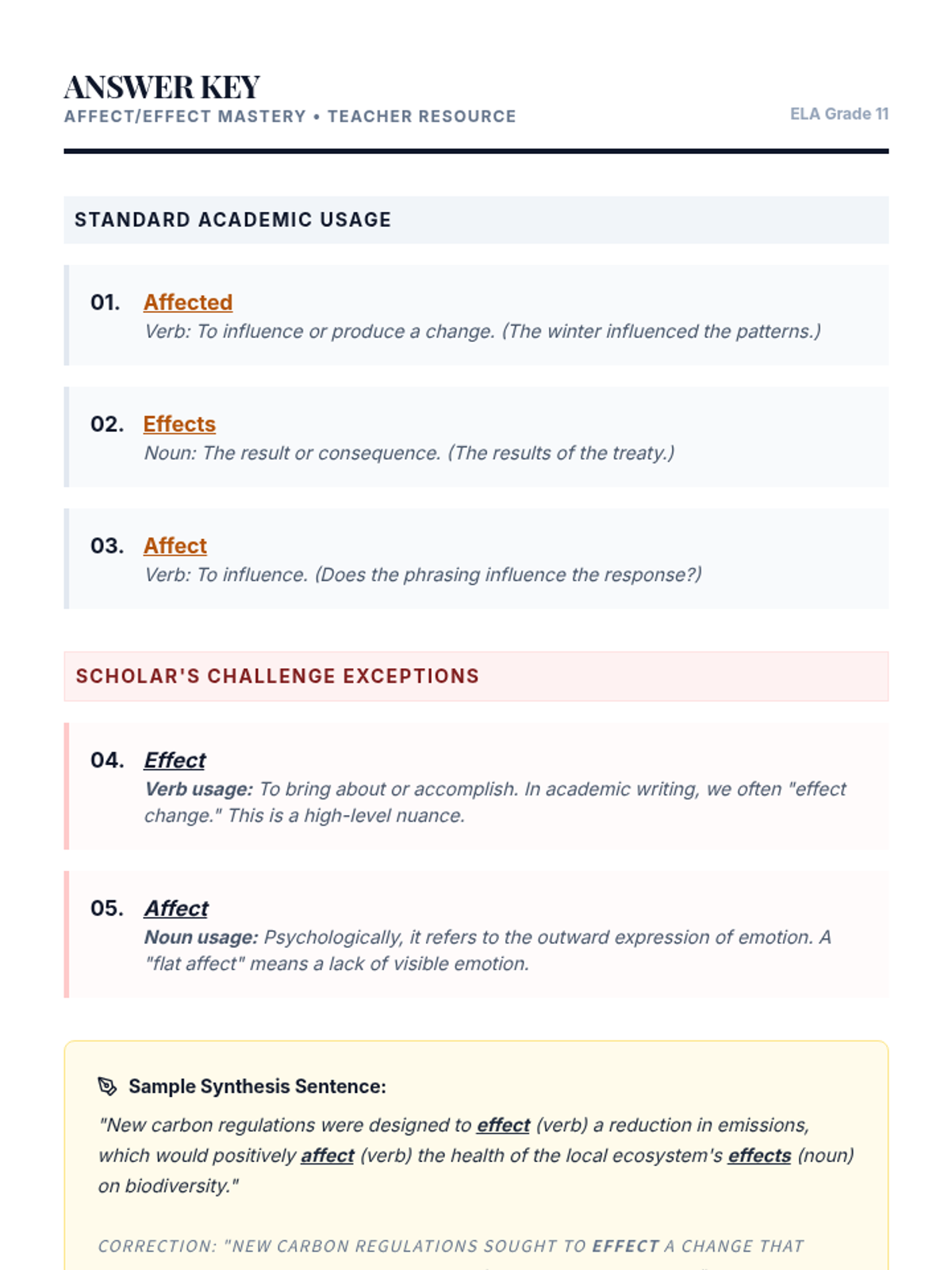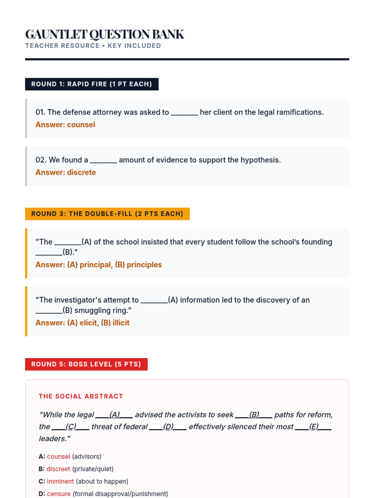 A rigorous sequence for 11th-grade students focusing on high-level academic confusables, paronyms, and homophones commonly found in college-level writing and standardized tests. Students move from diagnostic assessment to deep usage analysis and competitive mastery.