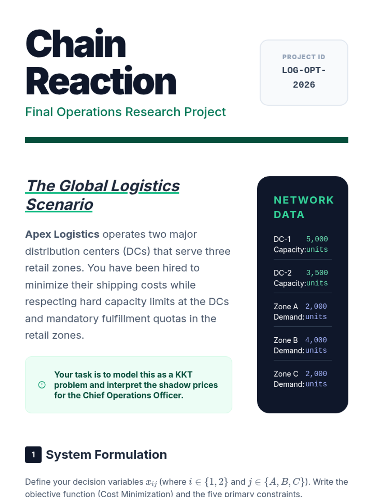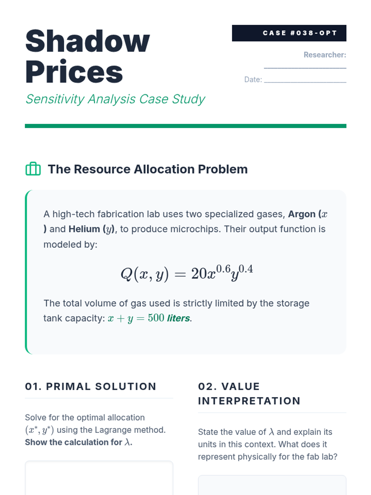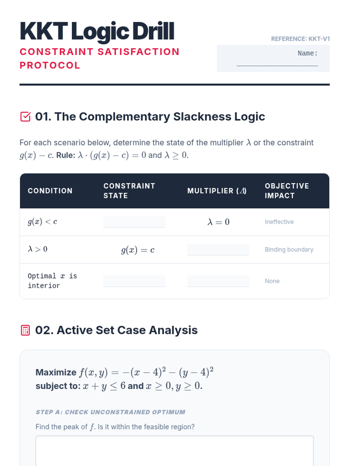 A graduate-level sequence on constrained optimization, covering Lagrange Multipliers, KKT conditions, and sensitivity analysis for economics and engineering applications.