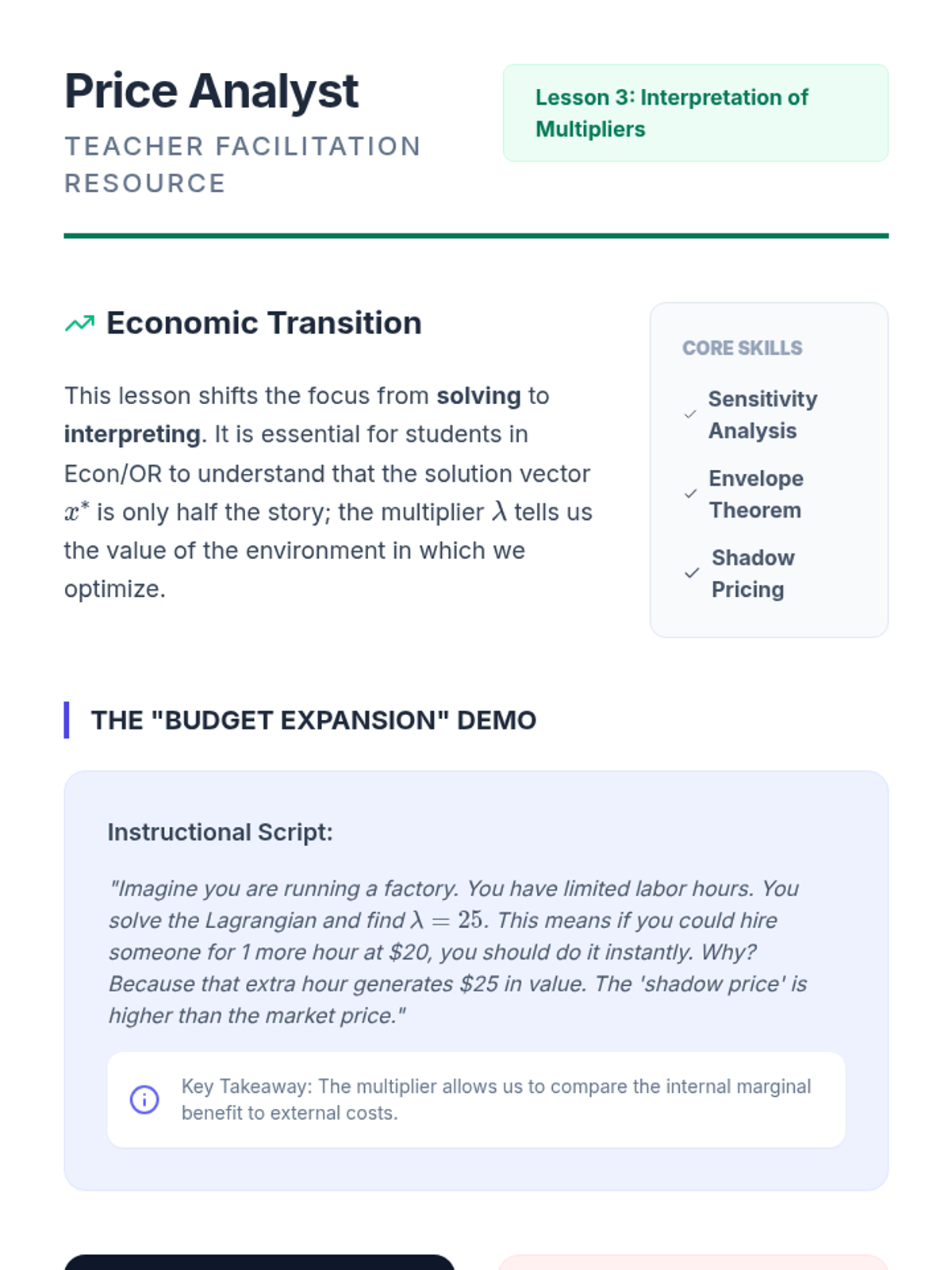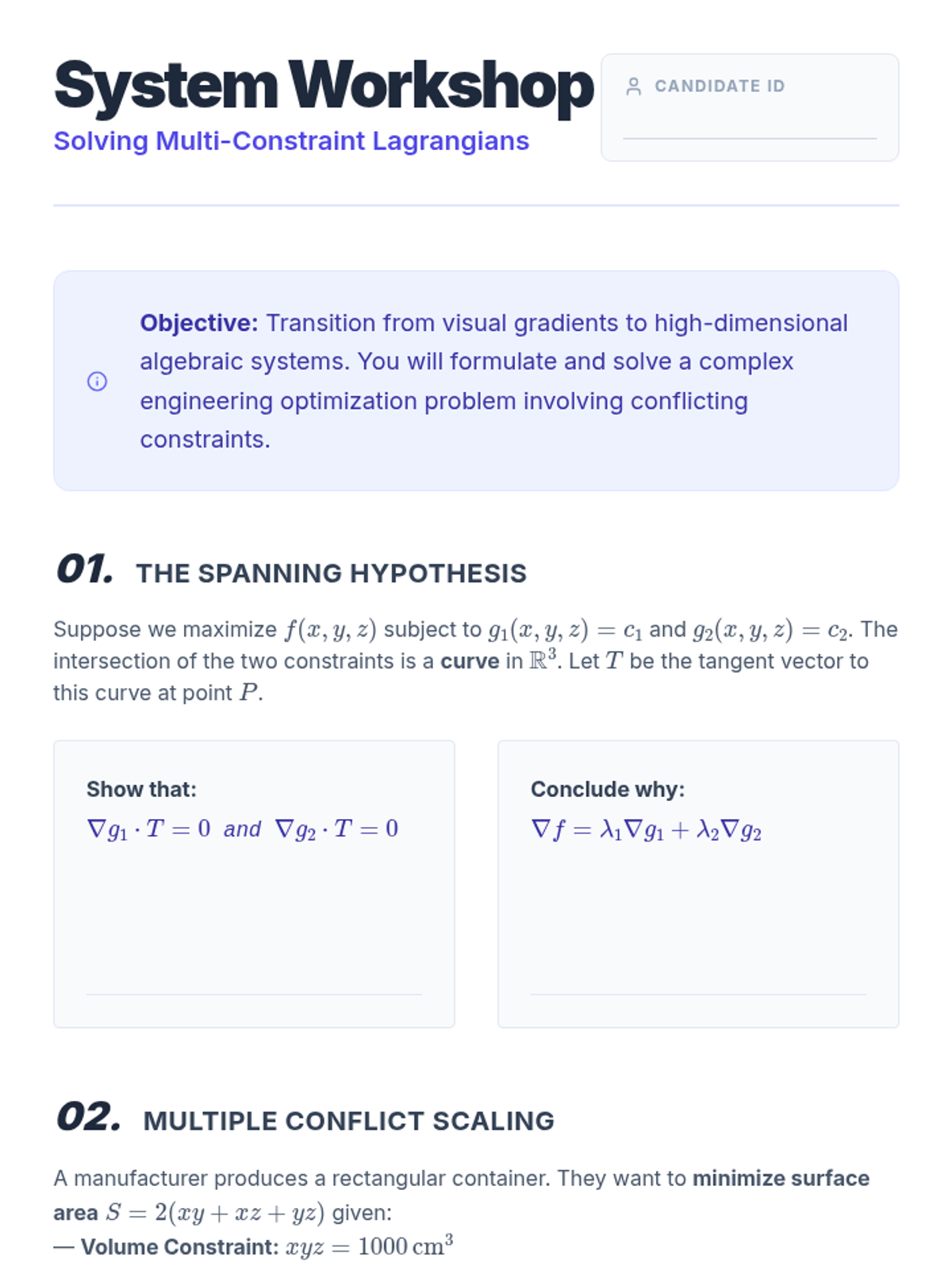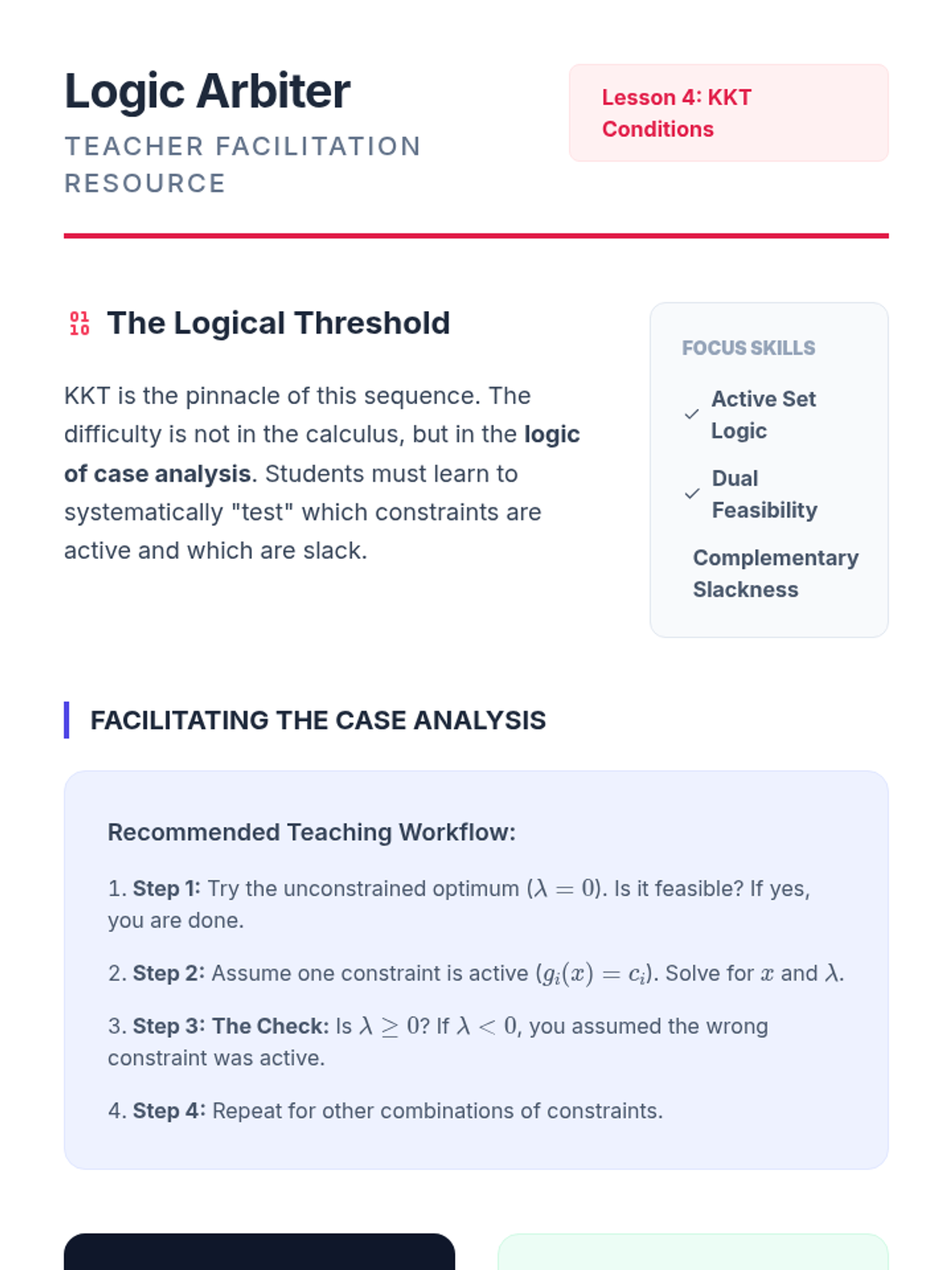 A graduate-level sequence on constrained optimization, covering Lagrange Multipliers, KKT conditions, and sensitivity analysis for economics and engineering applications.