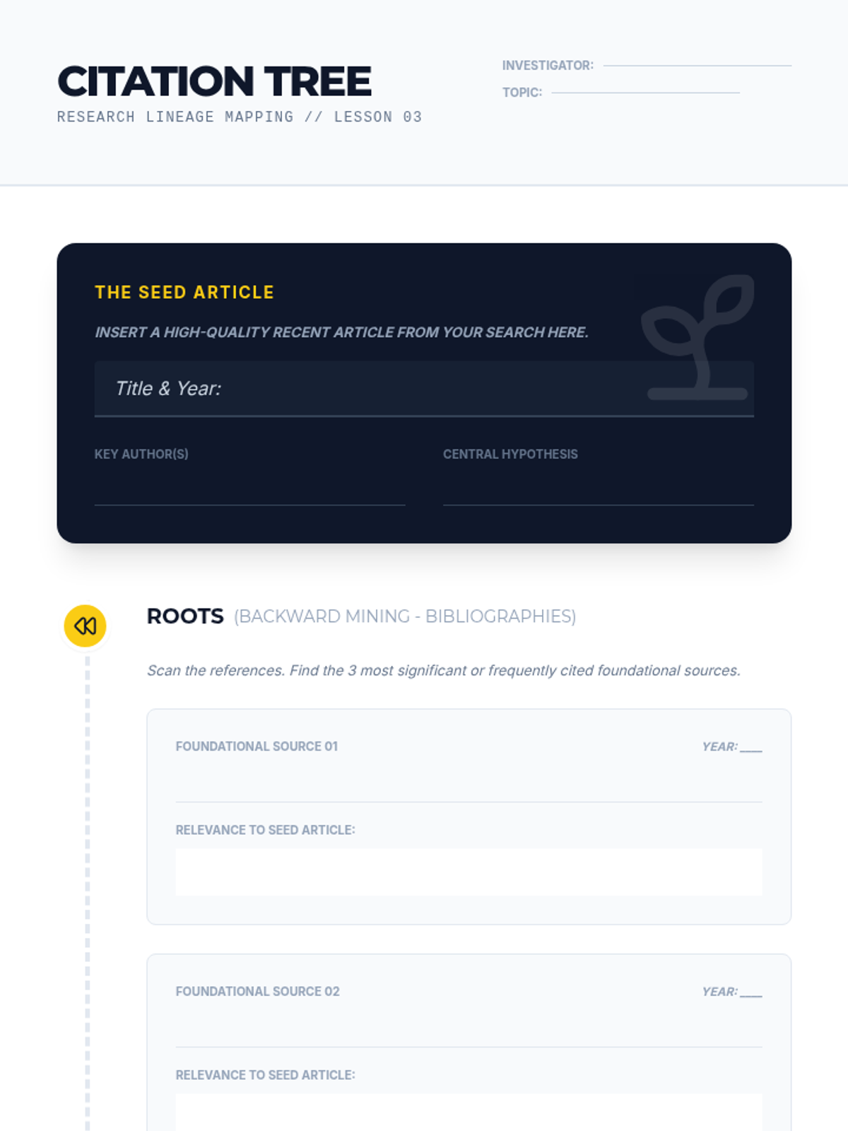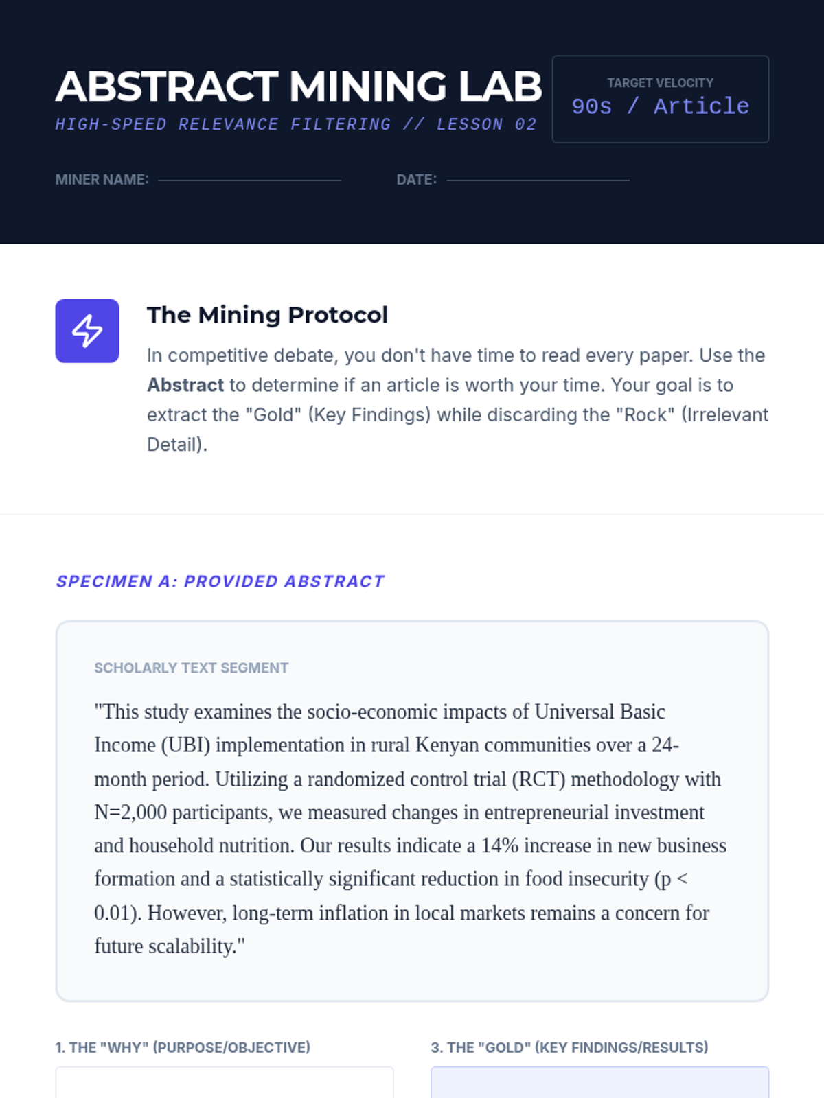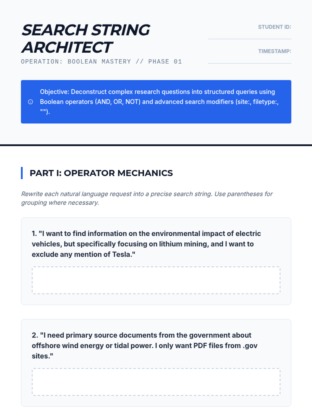 A workshop-style sequence for 11th-grade students to master advanced academic information retrieval for competitive debate, progressing from basic search strings to curated research banks.