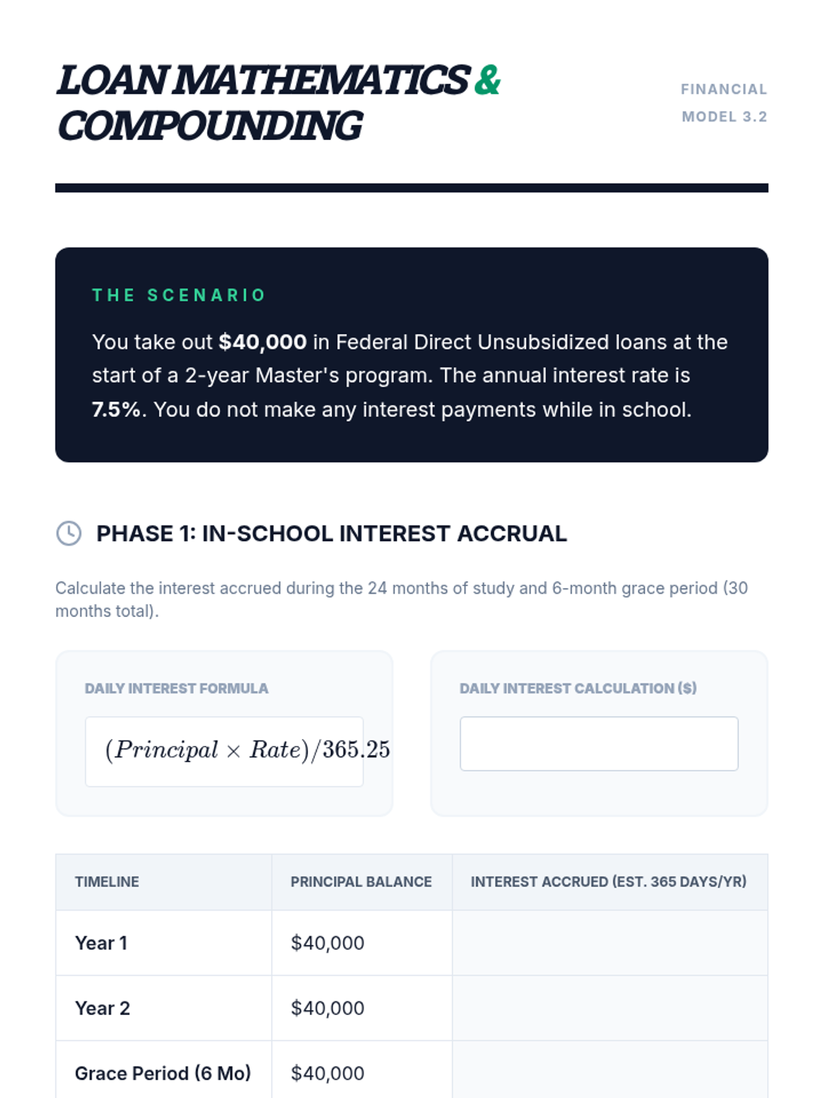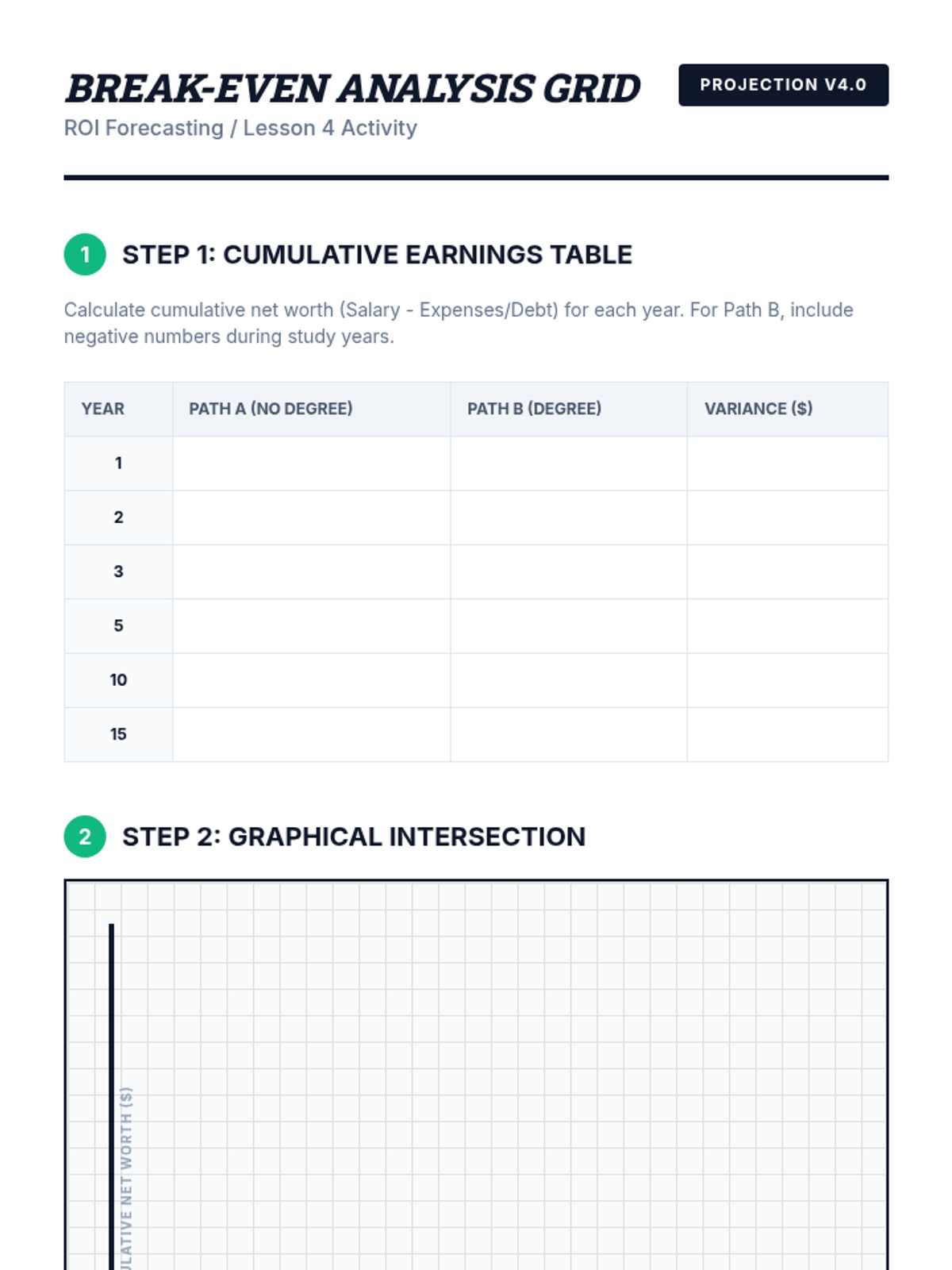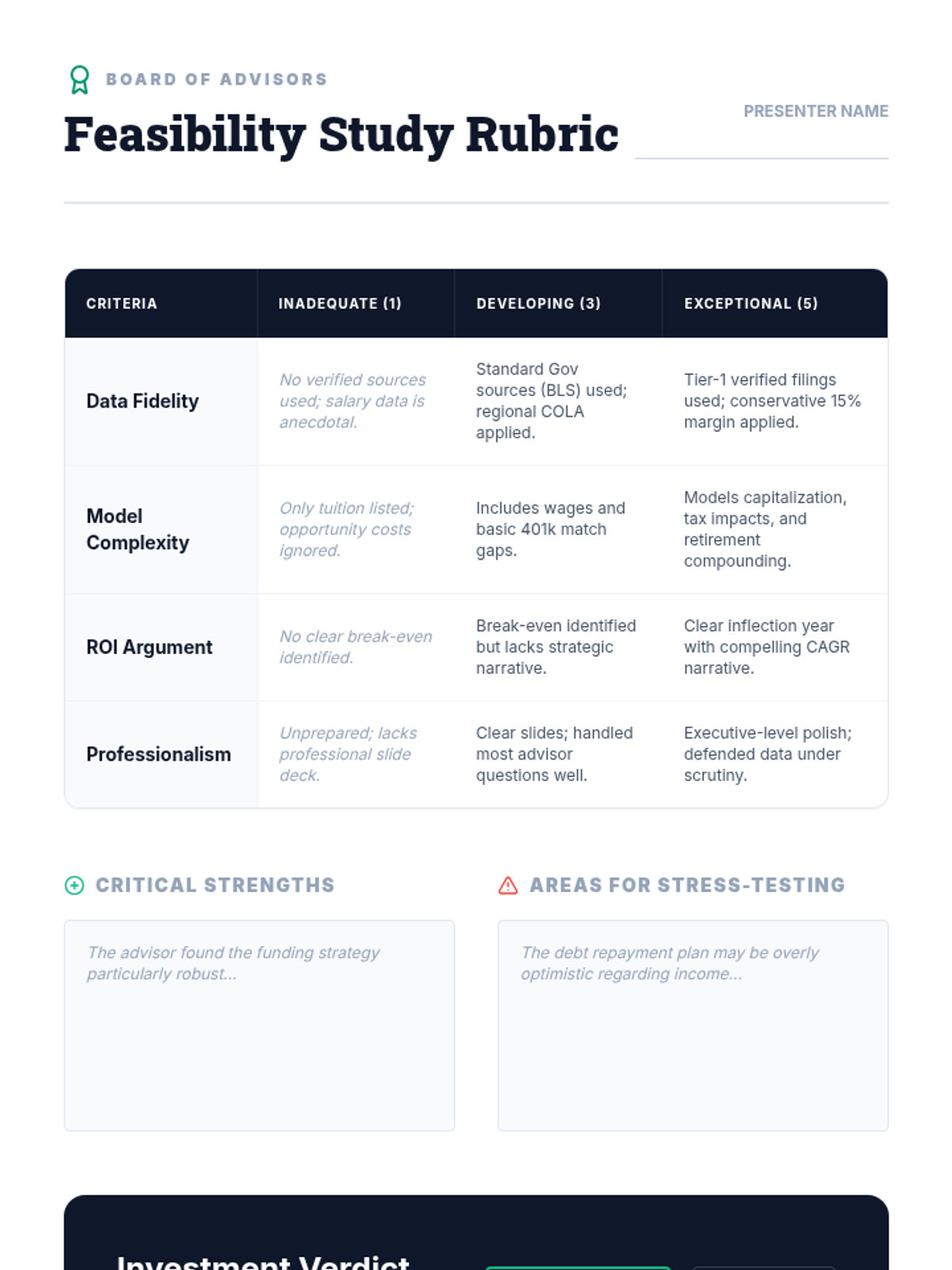 This sequence equips graduate students with the quantitative tools and financial literacy needed to assess the true ROI of pursuing further advanced education. Students will model opportunity costs, analyze funding strategies, and forecast break-even points to create a comprehensive financial feasibility study.