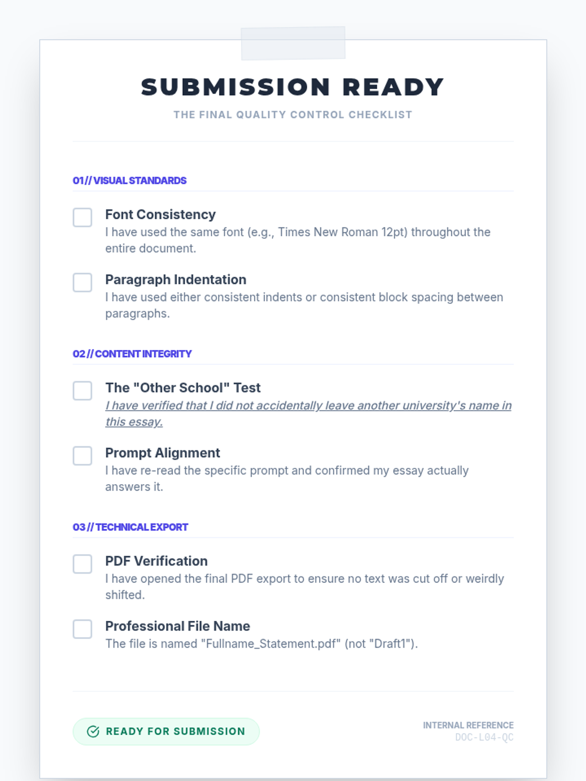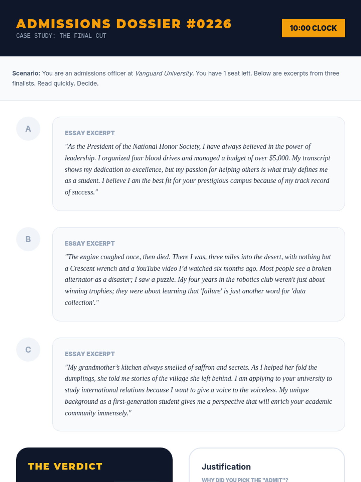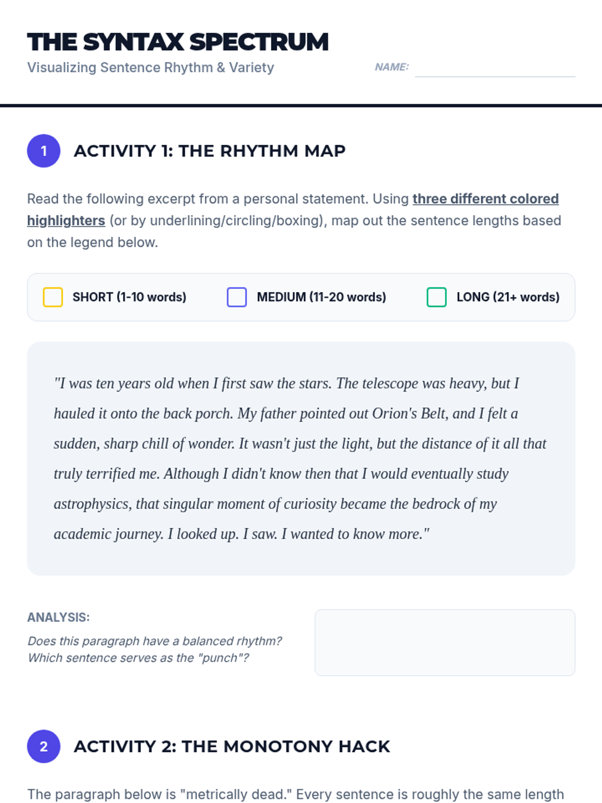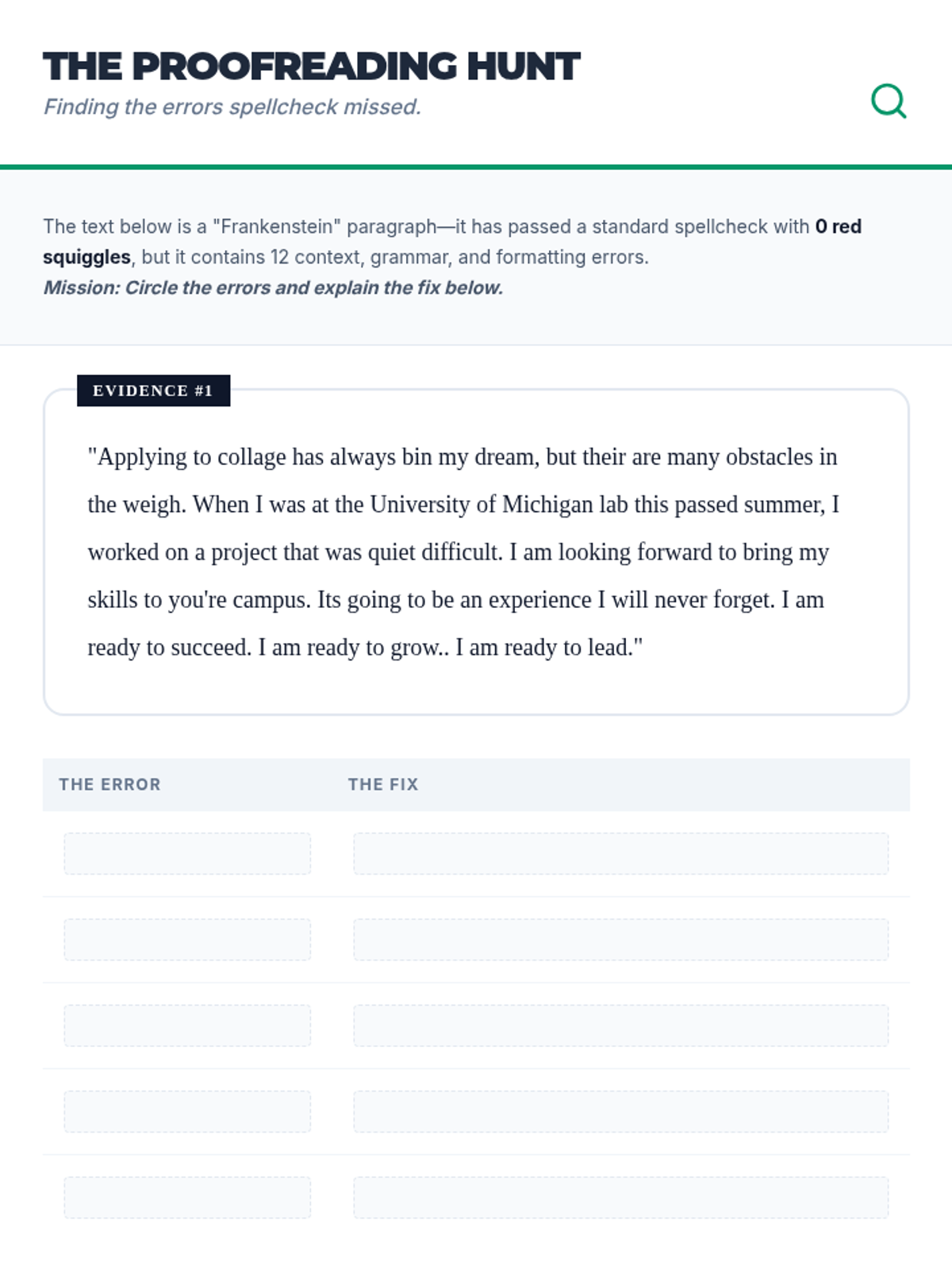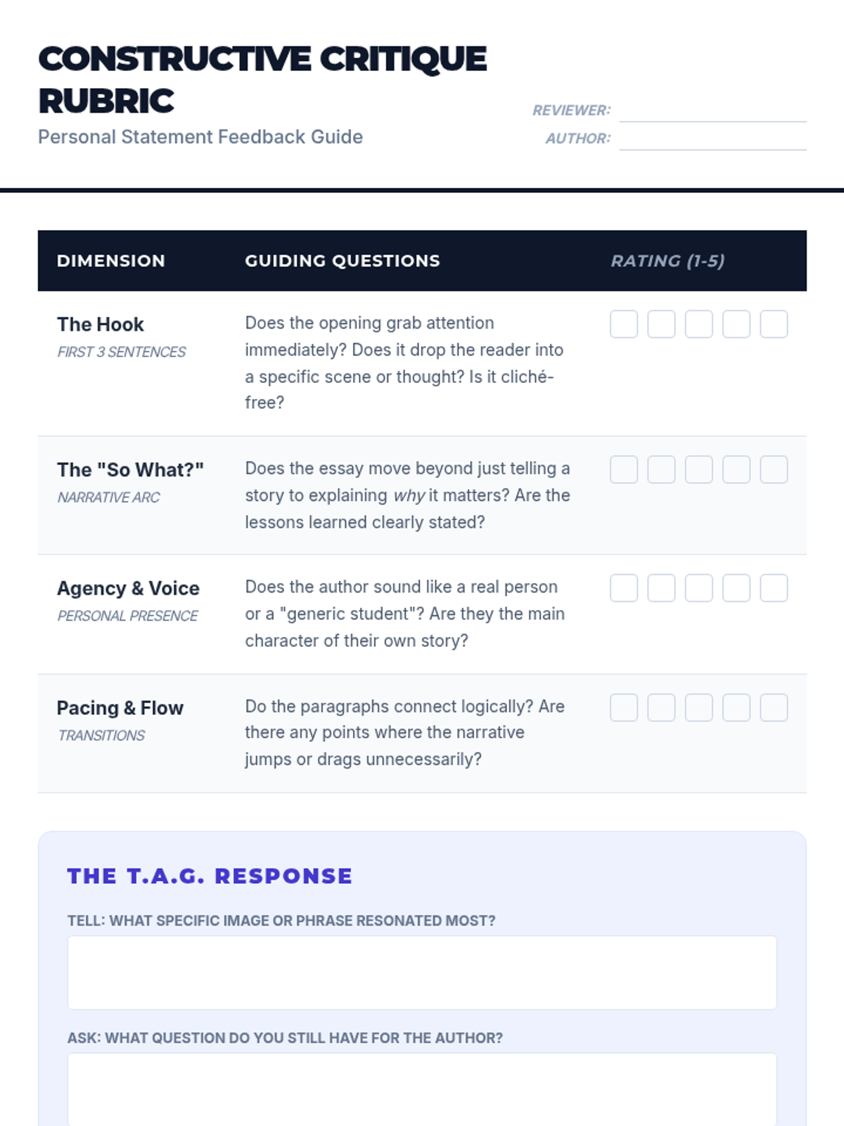 A comprehensive workshop series for undergraduate students to refine their personal statements through rigorous editing, peer review, and stylistic polishing. Students transition from draft-making to professional-grade revision, mastering the art of concise and impactful narrative writing.
