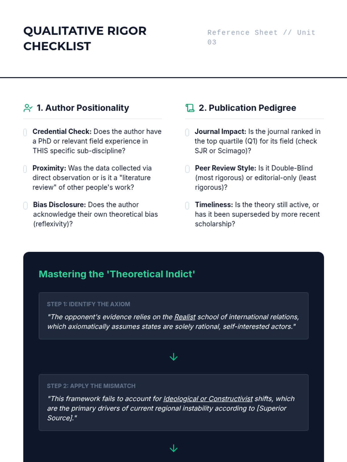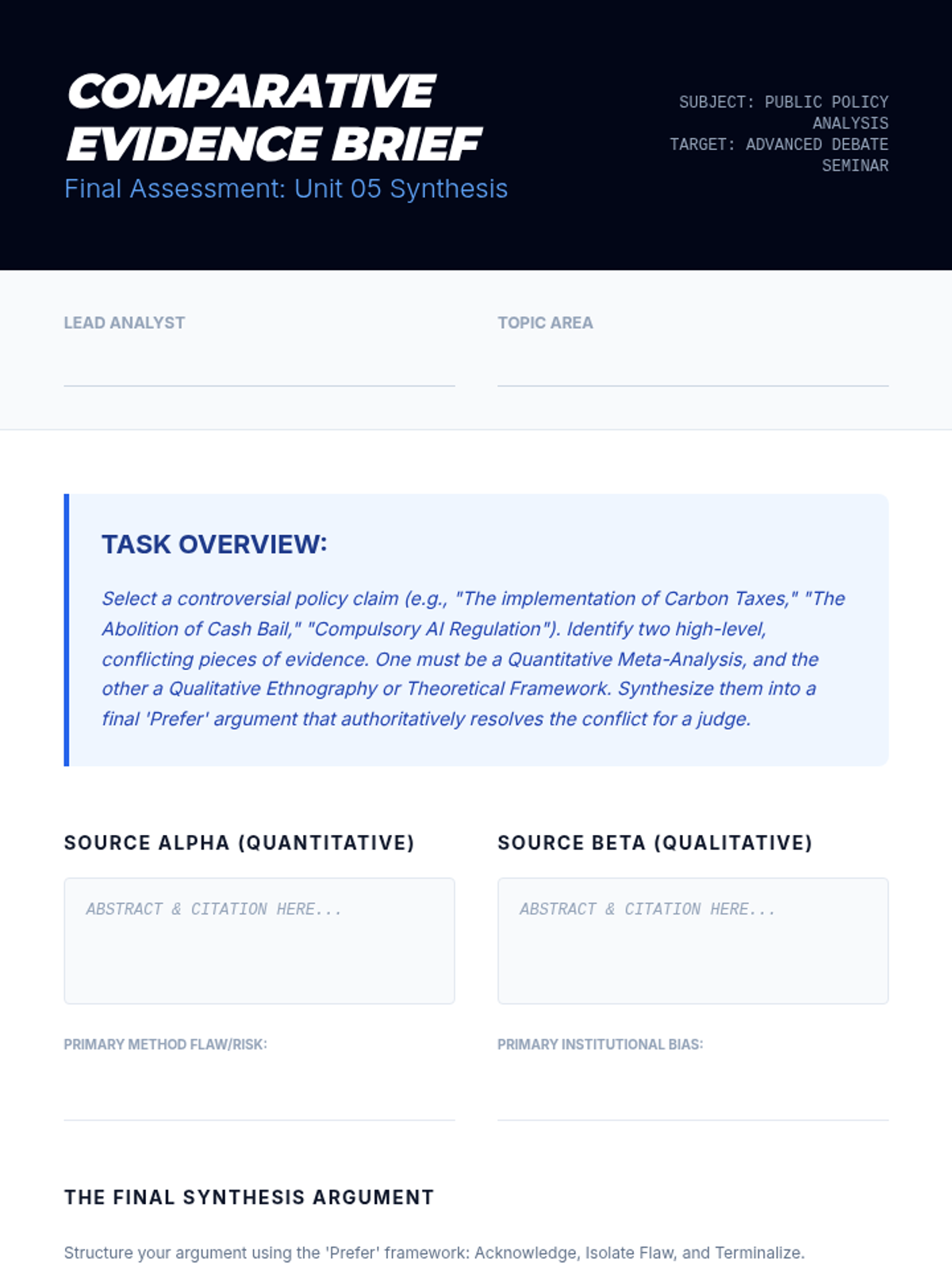 A graduate-level sequence focused on the rigorous evaluation of academic research, methodology, and institutional bias in the context of competitive debate and public speaking. Students learn to deconstruct study designs, identify statistical fallacies, and perform evidence indictments to challenge the validity of opposing data.