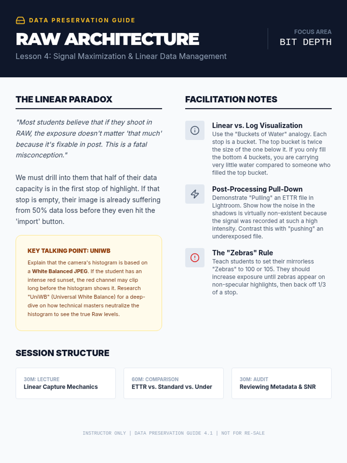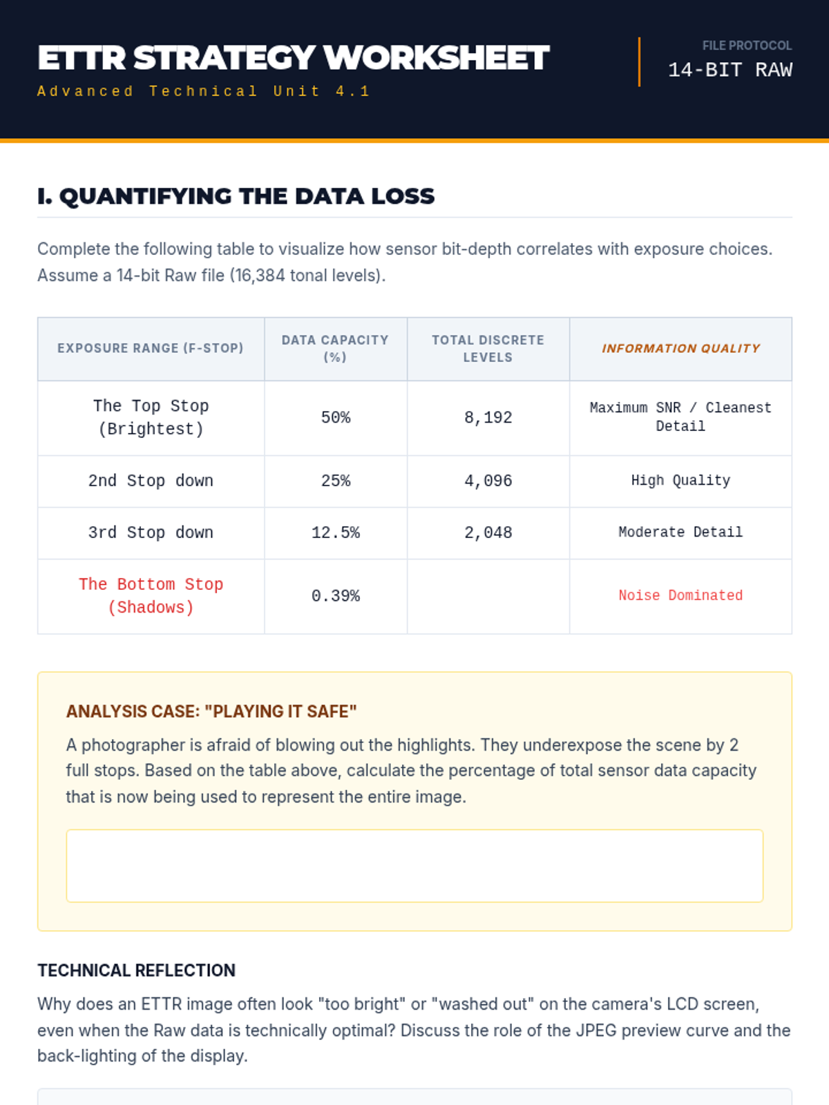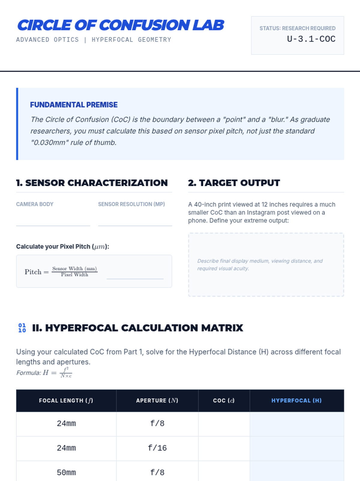 A graduate-level technical sequence exploring the physics of digital sensors, ISO invariance, advanced optics, and raw data management. Students master the technical precision required to execute high-level artistic intent in photography.