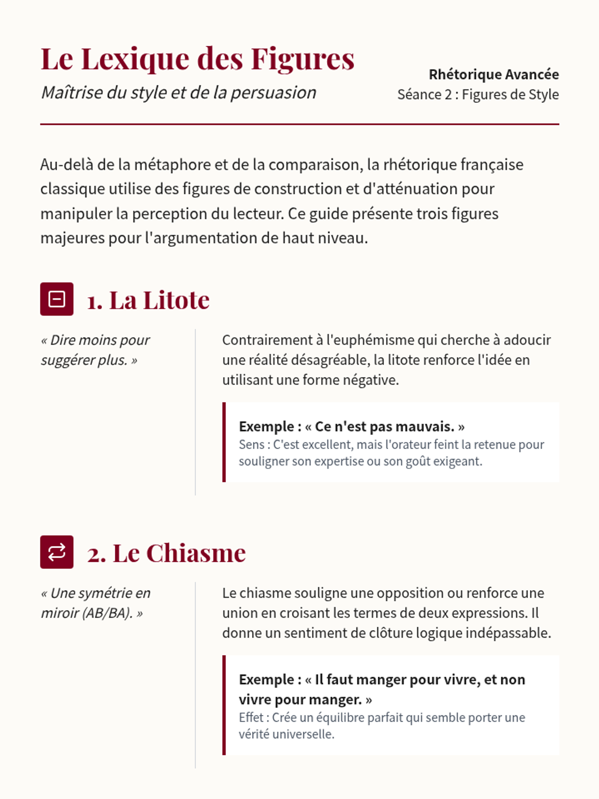 This sequence for graduate students explores the sophisticated art of French rhetoric, moving from the analysis of historical political oratory to the creation of contemporary op-eds (tribunes). Students master advanced stylistic figures, the logic of concession, and the rhythmic flow of prose to wield language as a powerful tool for intellectual influence.