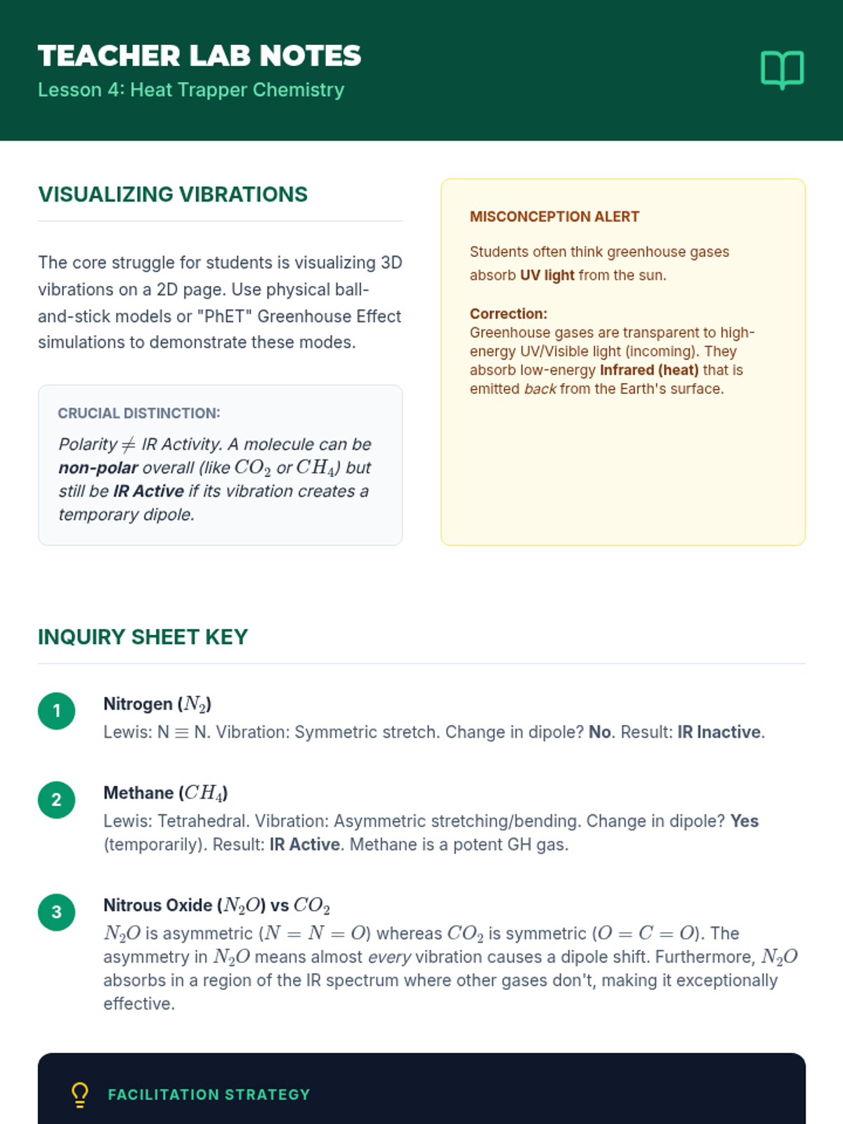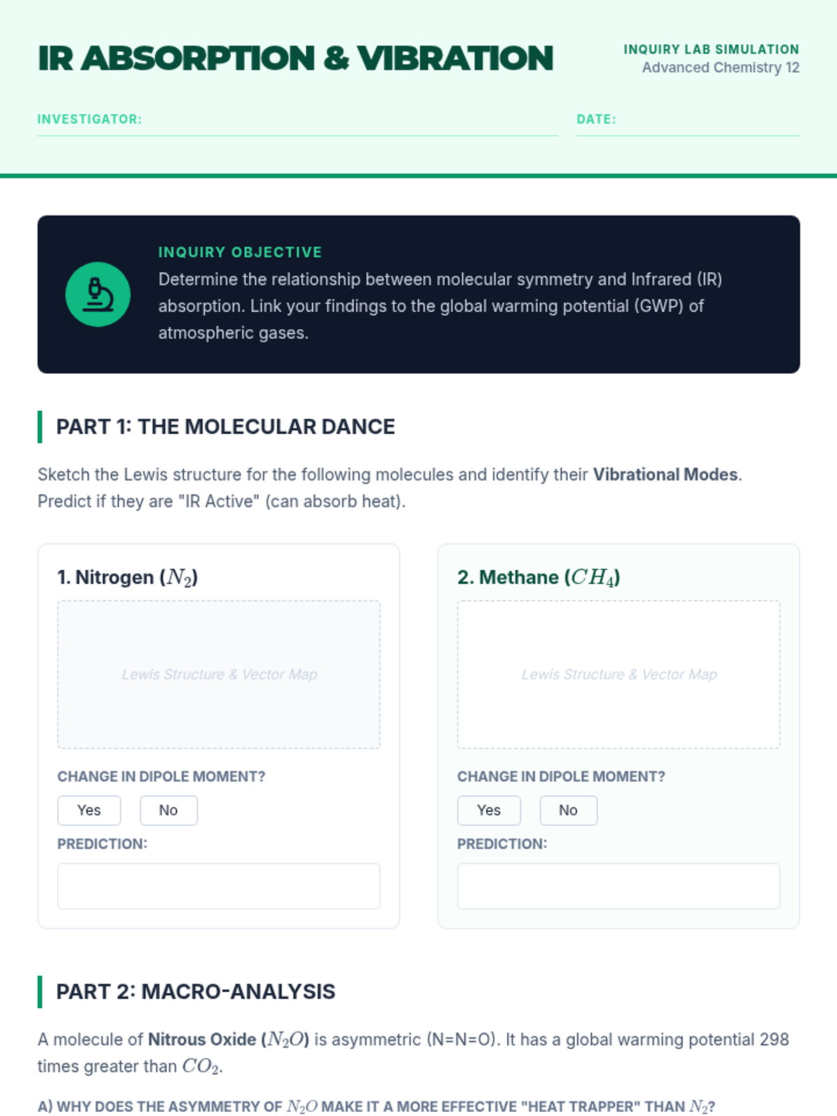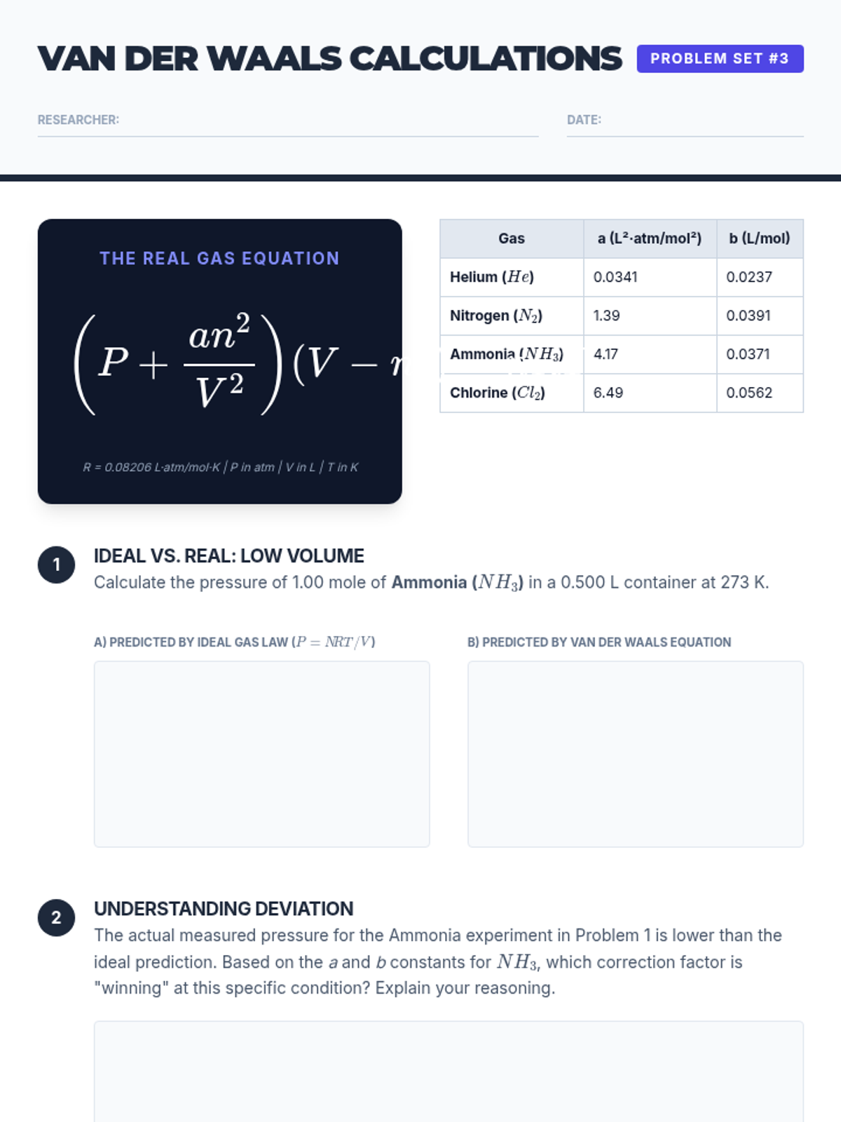 An advanced 12th-grade chemistry sequence exploring non-ideal gas behavior, partial pressures, and atmospheric applications through case studies like scuba diving and the greenhouse effect.