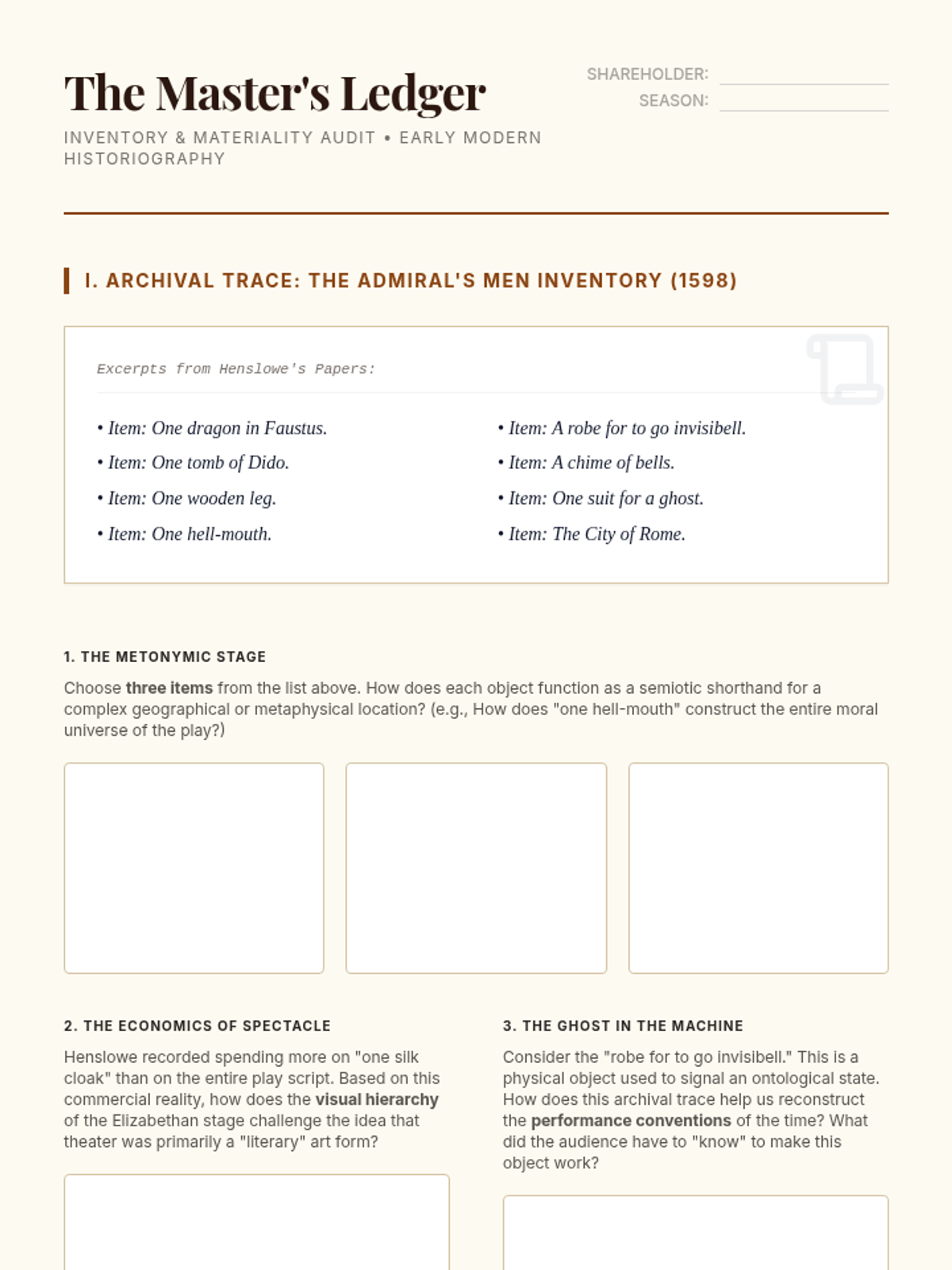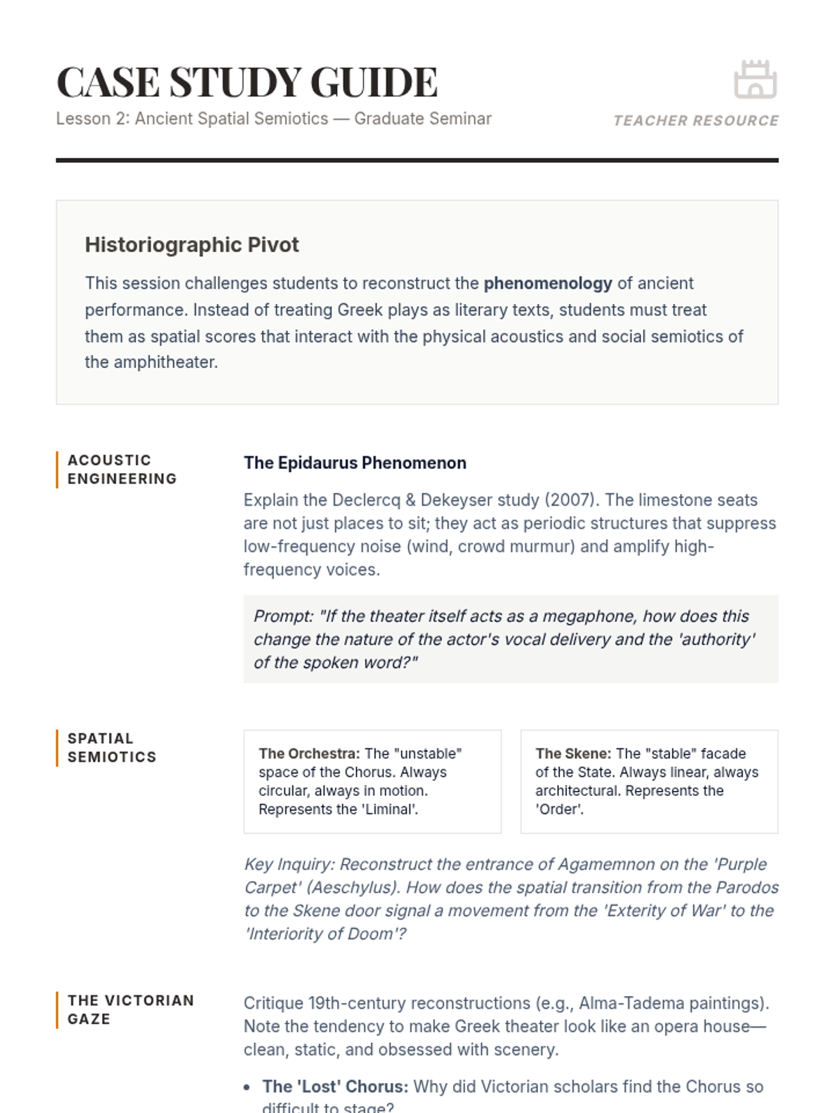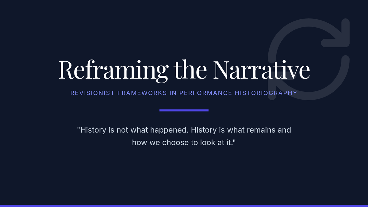 An advanced graduate seminar on the methodologies of theater historiography, focusing on the reconstruction of performance through archival evidence, material culture, and revisionist theoretical frameworks.