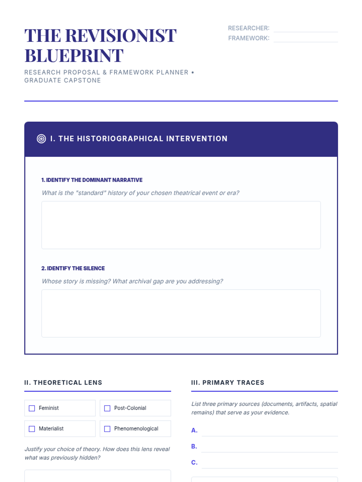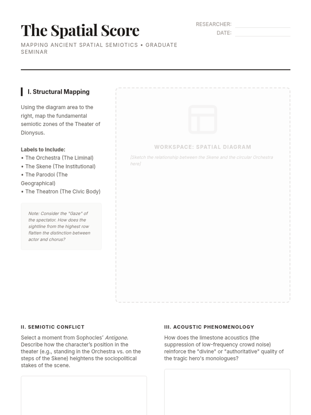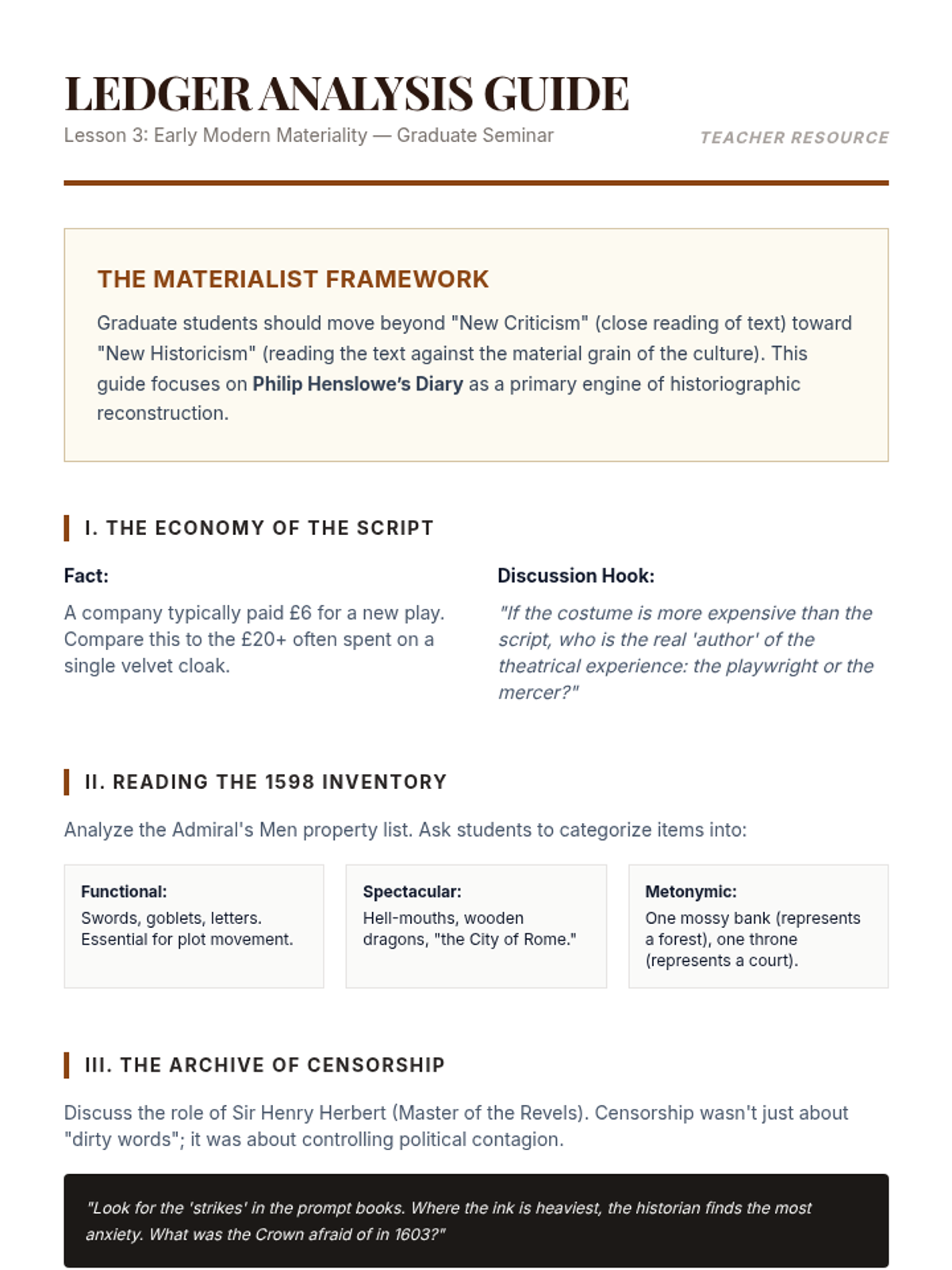An advanced graduate seminar on the methodologies of theater historiography, focusing on the reconstruction of performance through archival evidence, material culture, and revisionist theoretical frameworks.