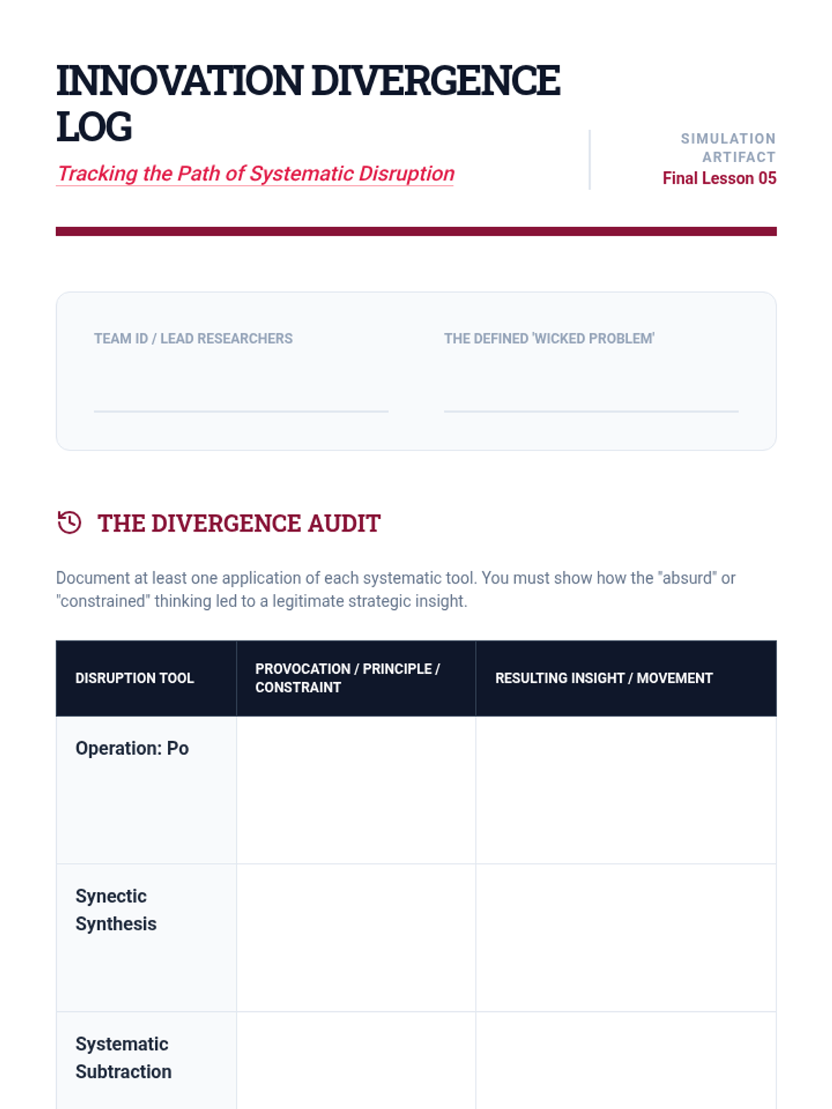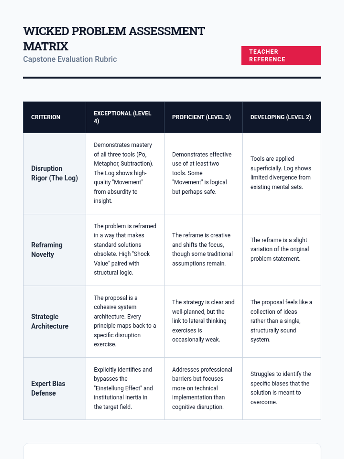 An advanced course for graduate students on deconstructing cognitive biases and applying systematic lateral thinking techniques to solve complex 'wicked' problems.