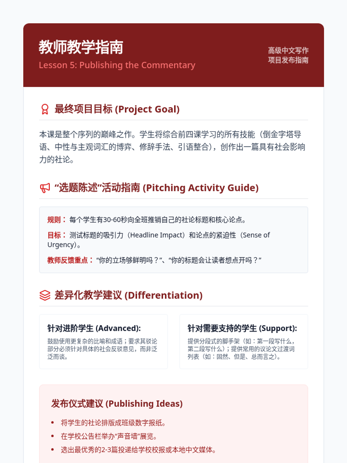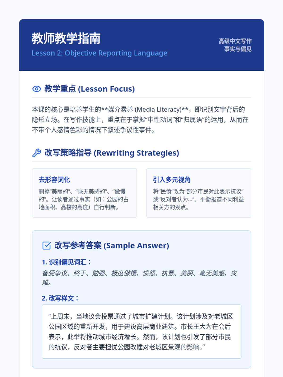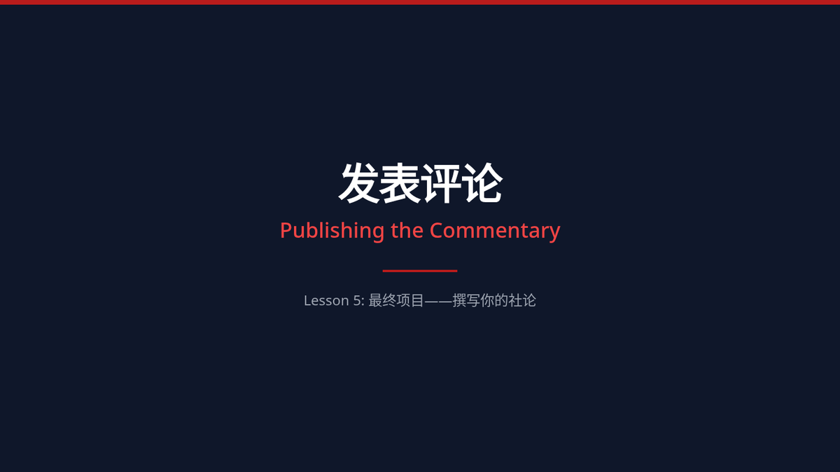 This advanced Mandarin writing sequence focuses on the art of journalism and editorial commentary. Students transition from the objective 'inverted pyramid' of news reporting to the persuasive, subjective voice of op-eds, mastering professional vocabulary and rhetorical strategies along the way.