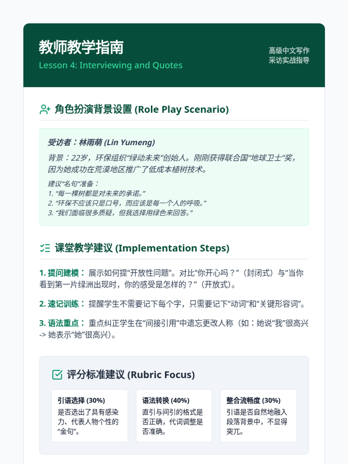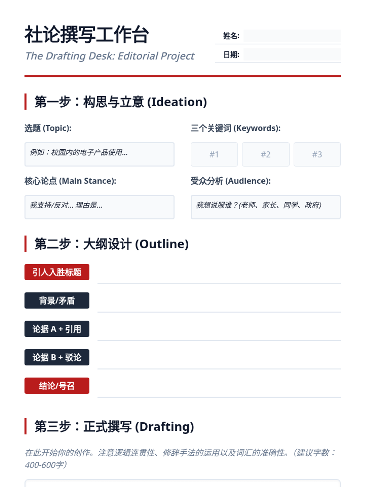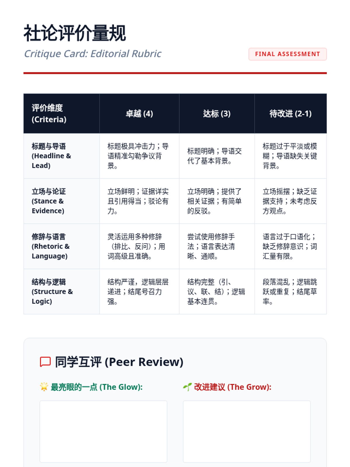 This advanced Mandarin writing sequence focuses on the art of journalism and editorial commentary. Students transition from the objective 'inverted pyramid' of news reporting to the persuasive, subjective voice of op-eds, mastering professional vocabulary and rhetorical strategies along the way.