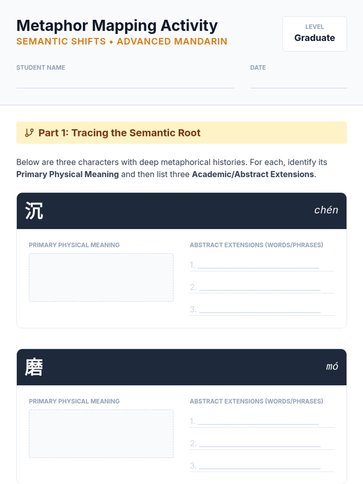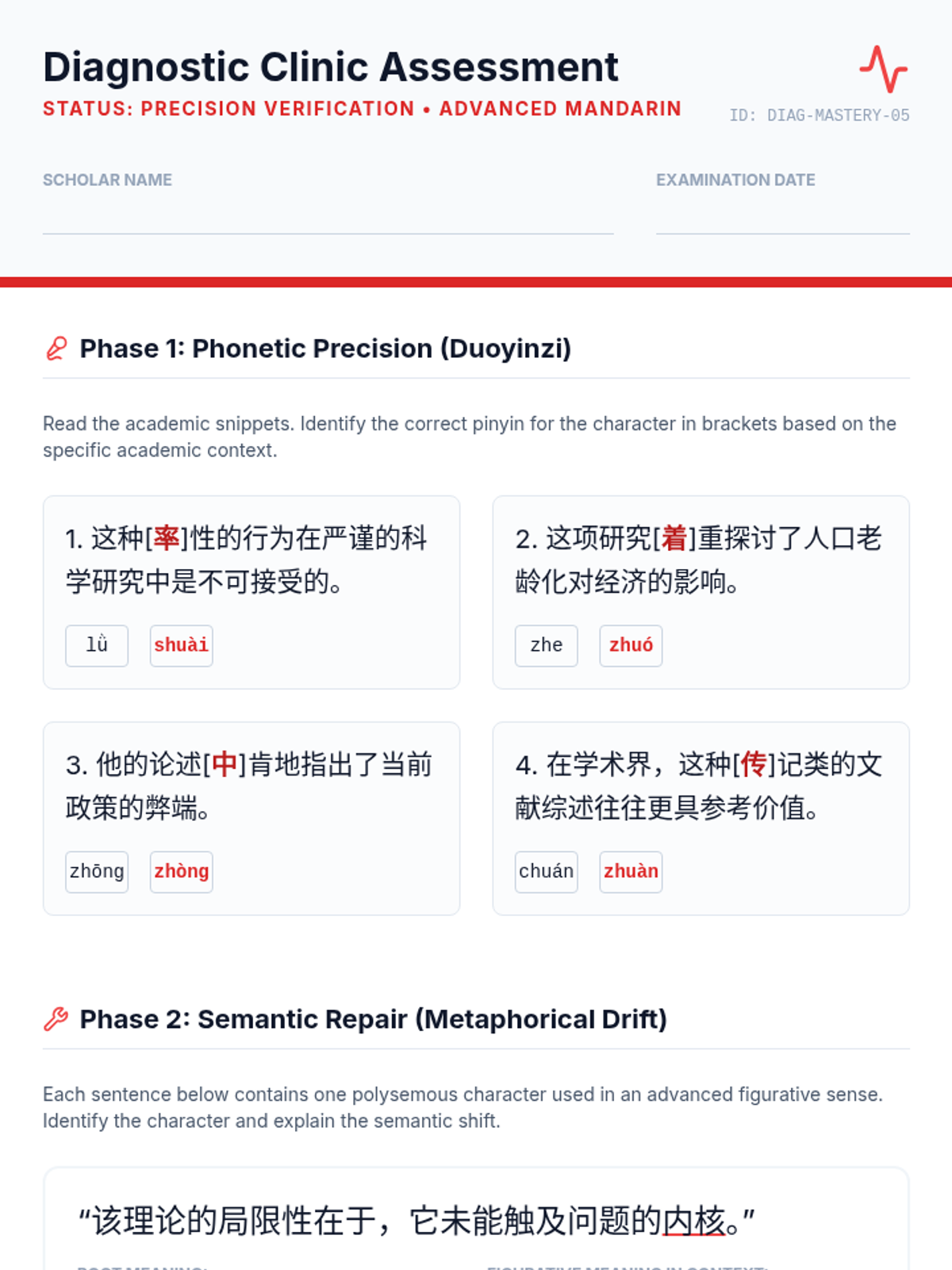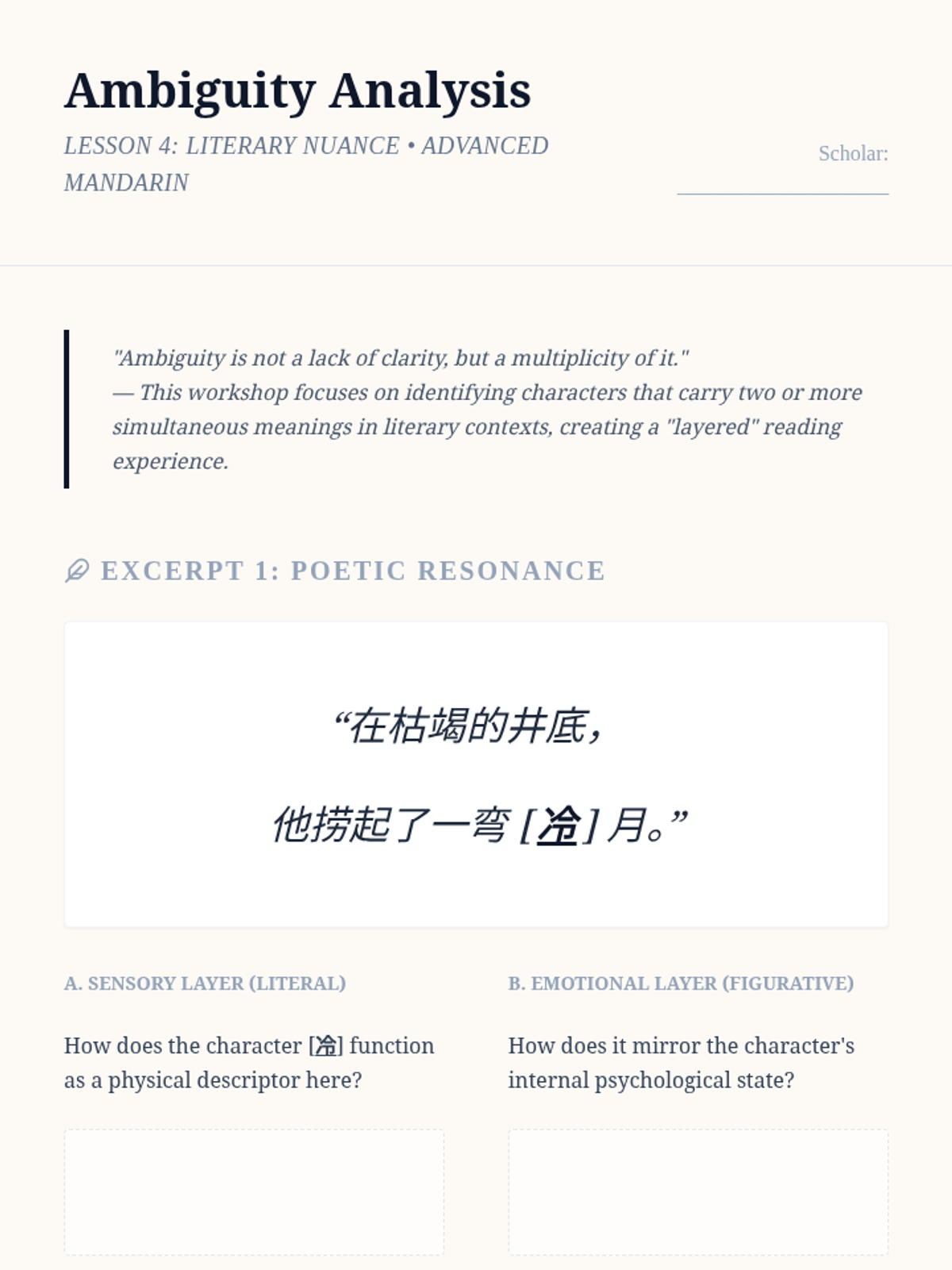 A graduate-level exploration of polysemous and polyphonic Mandarin characters, focusing on how context drives semantic and phonetic shifts in academic and literary discourse.