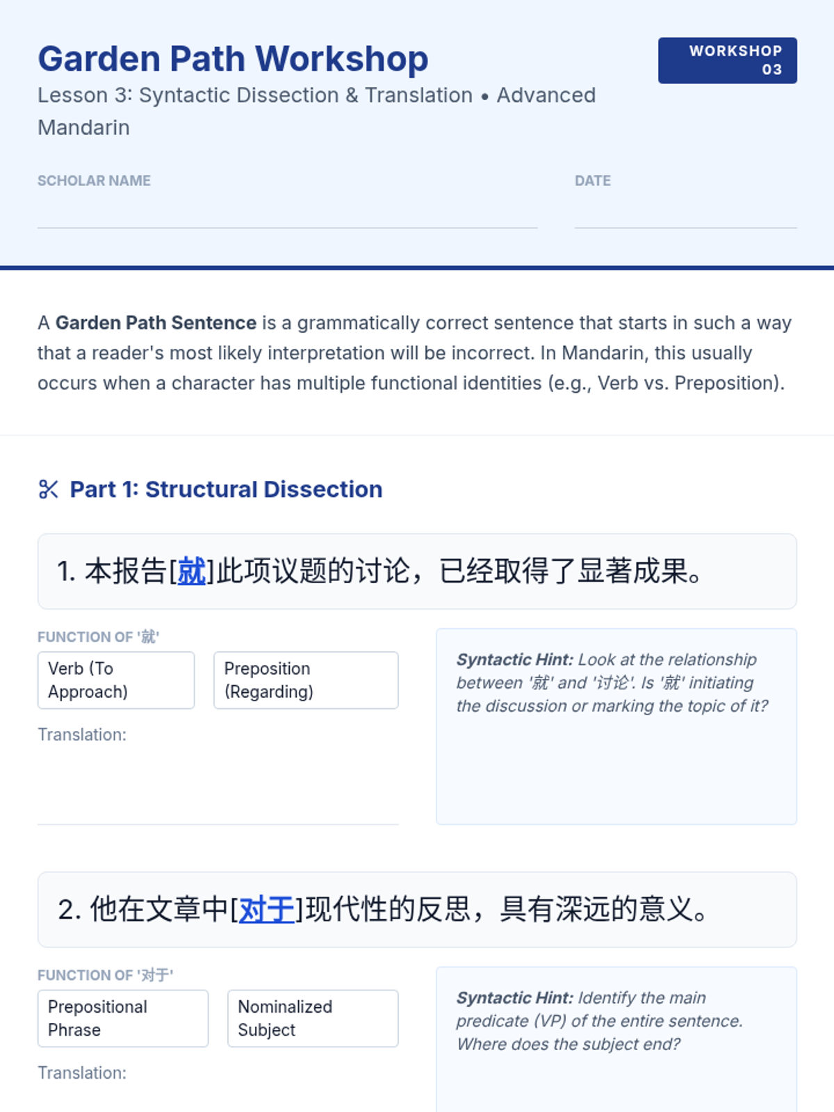 A specialized sequence for graduate students to master the formal register of Chinese news media. The course covers headline syntax, economic reporting logic, passive structures in incident reports, bias in editorials, and cross-regional news synthesis.