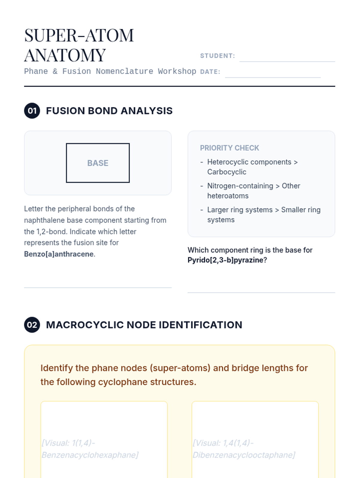 A graduate-level exploration of advanced organic nomenclature, focusing on the IUPAC Blue Book rules for polycyclic systems, phane nomenclature, non-traditional stereochemistry, and the selection of Preferred IUPAC Names (PINs).