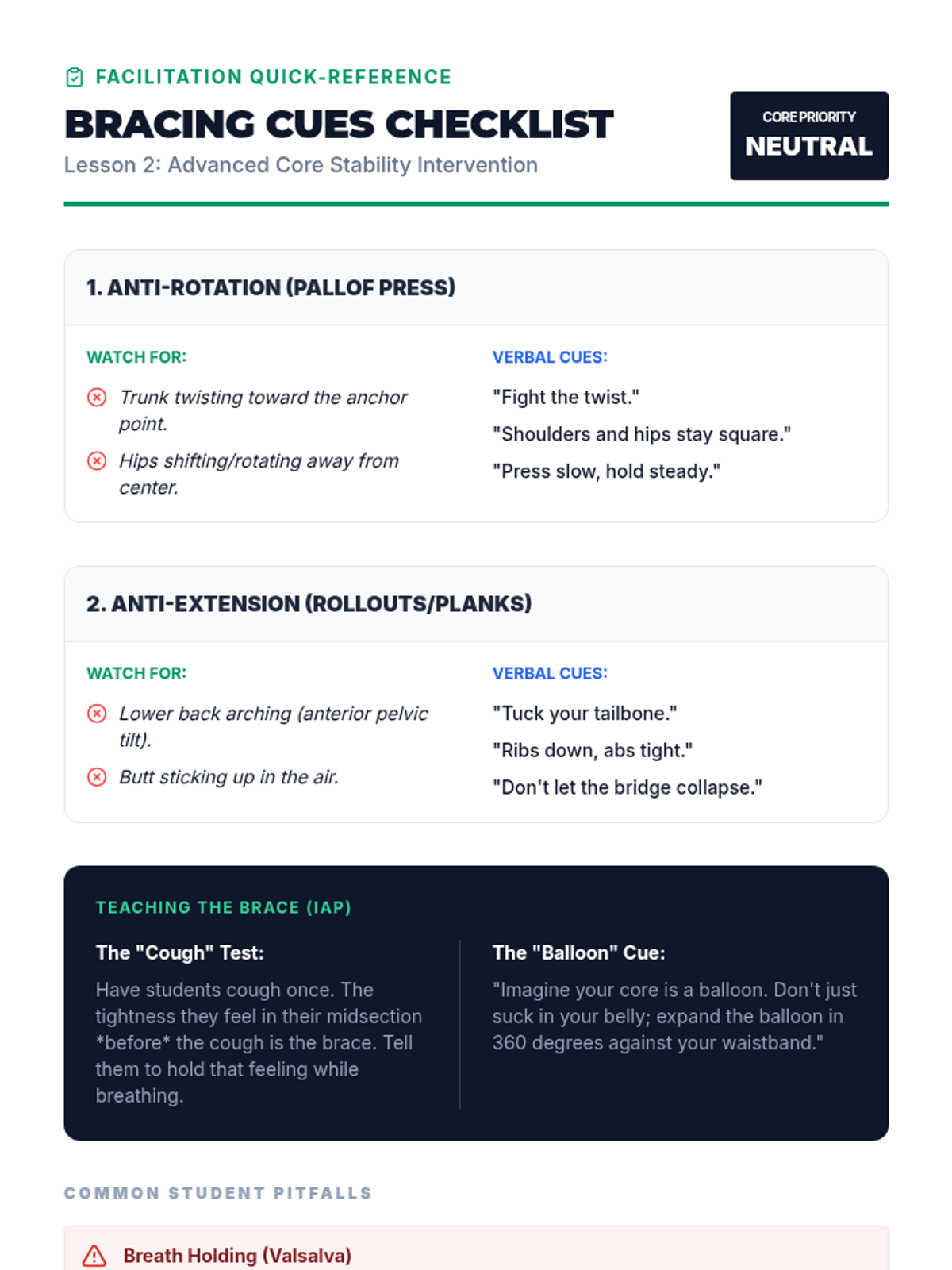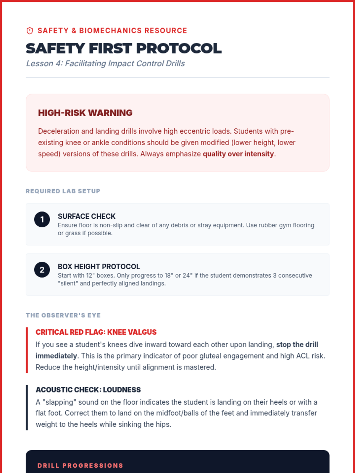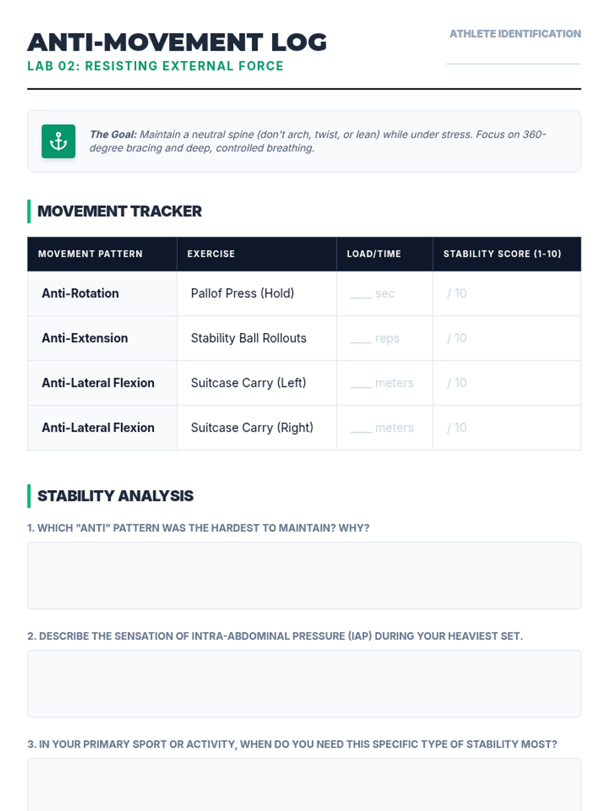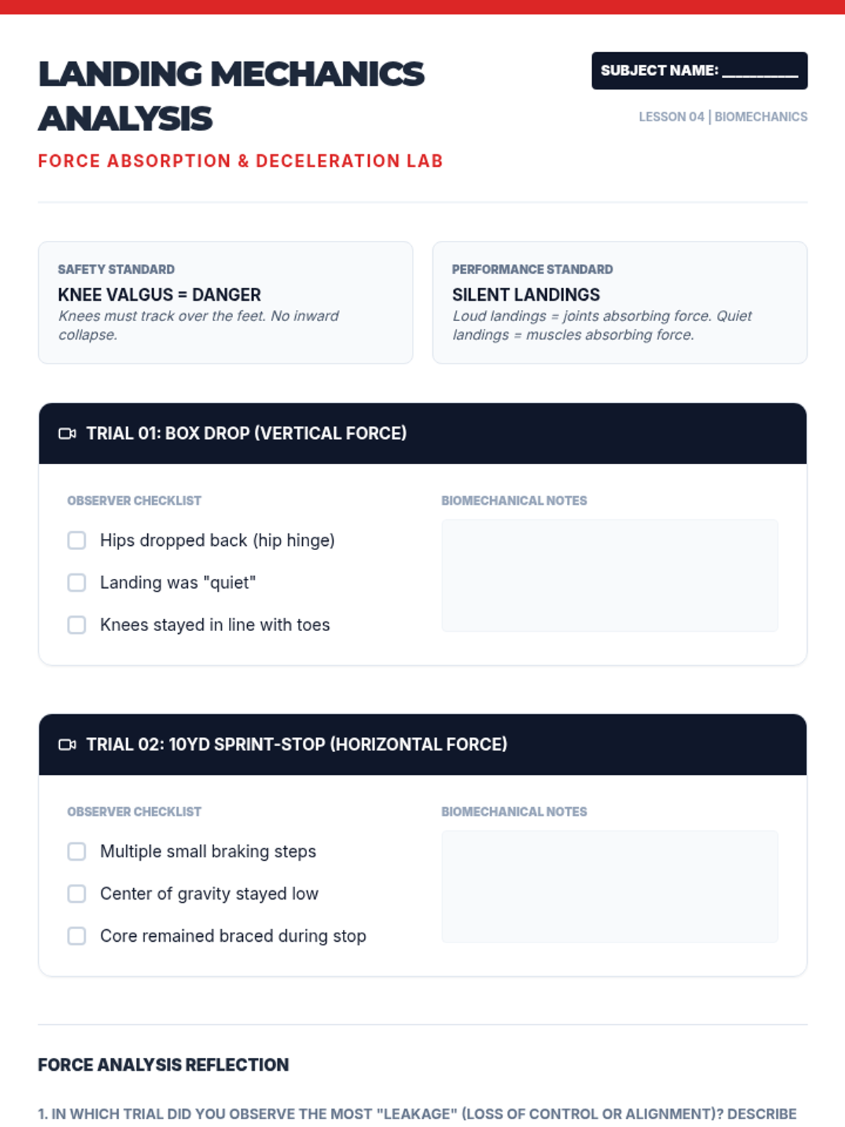 This advanced 12th-grade sequence explores body control through the lens of biomechanics and proprioception. Students progress from assessing their own kinetic chain to mastering anti-rotation core stability, multi-planar movement, and force absorption, culminating in the design of a personalized functional movement flow.