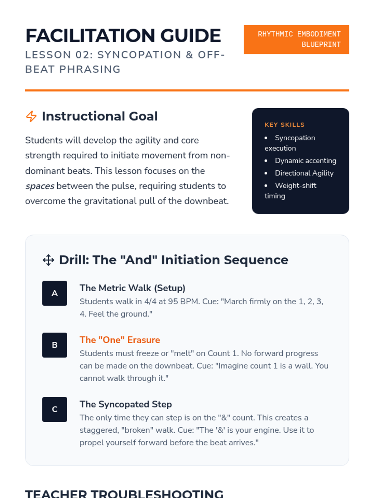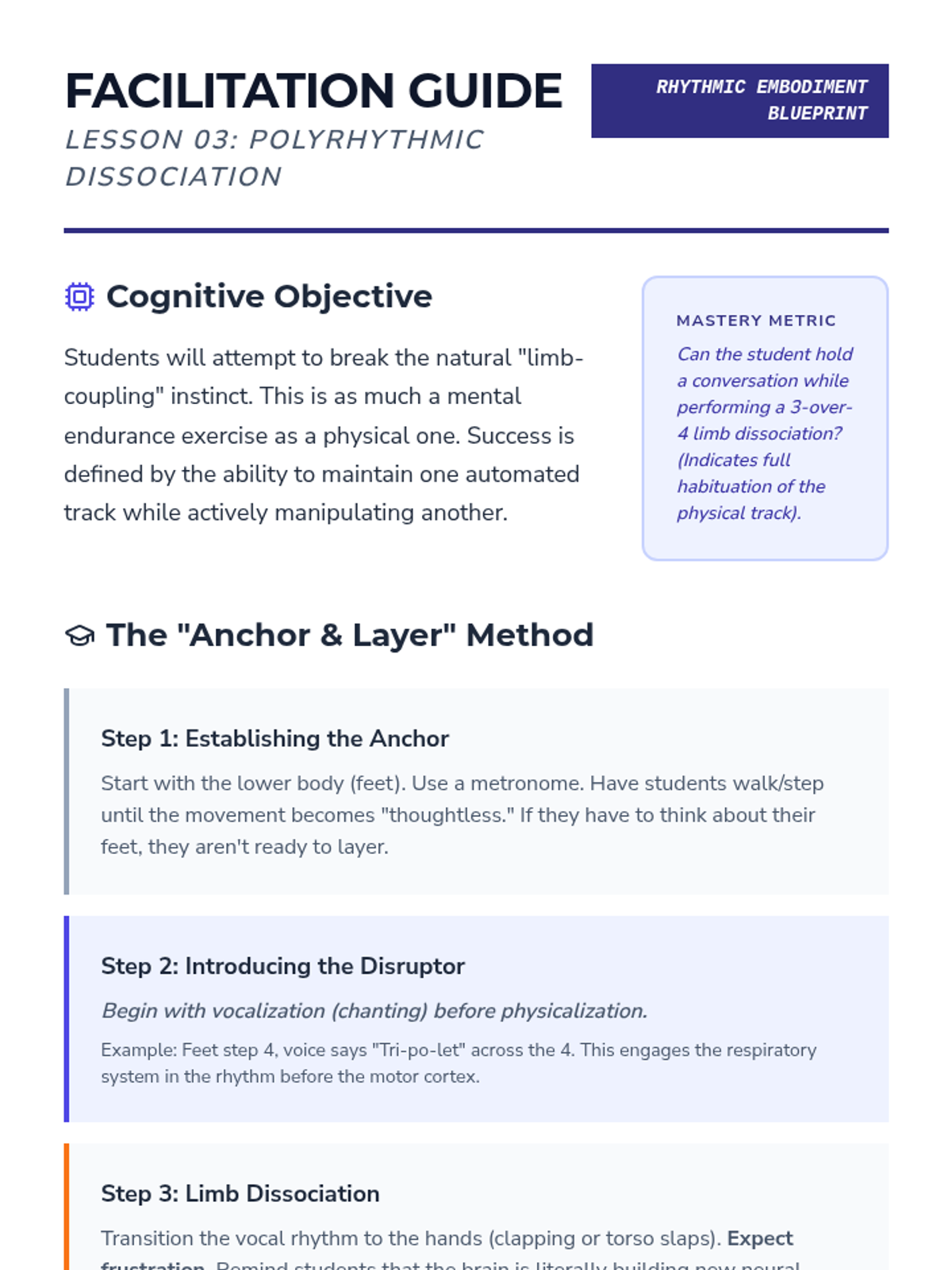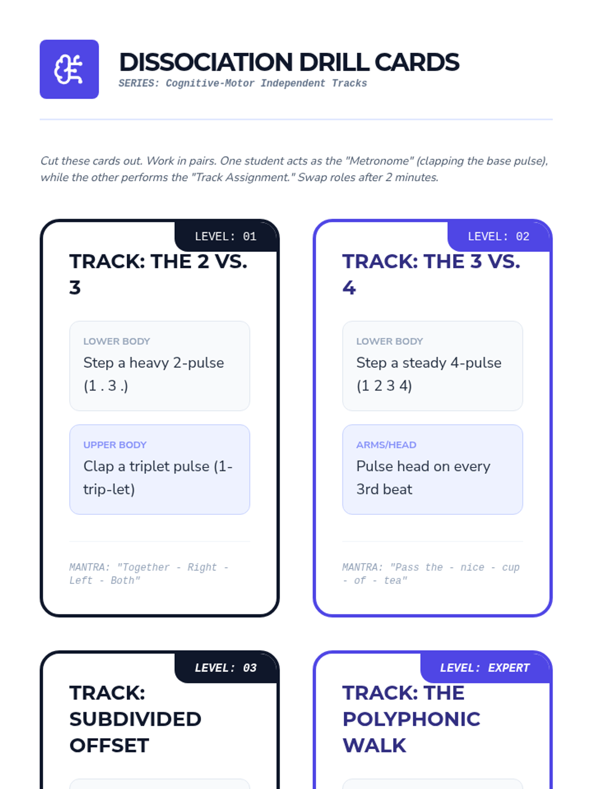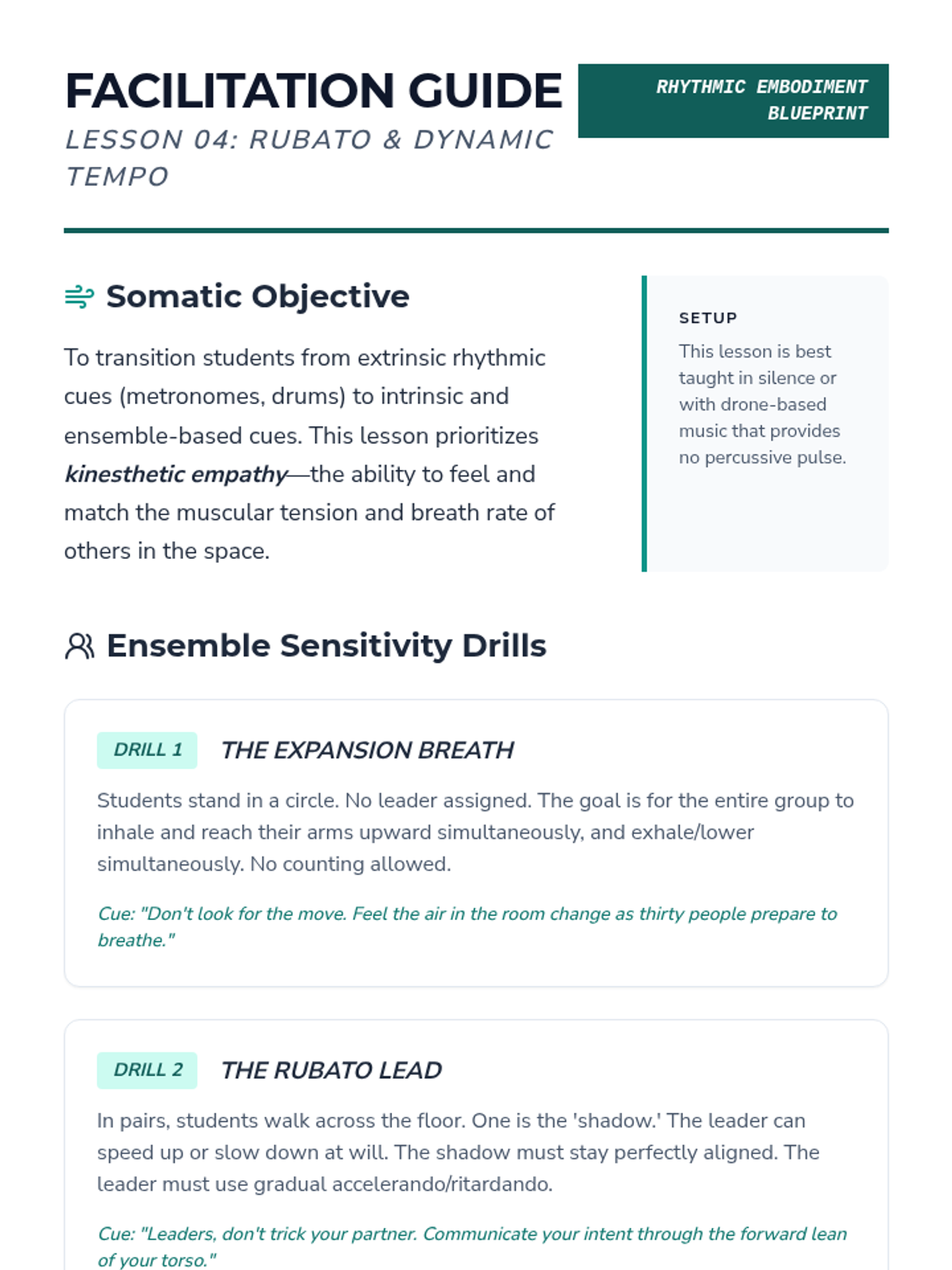 An advanced undergraduate sequence exploring the intersection of music theory and somatic practice. Students deconstruct complex meters, master syncopation and polyrhythmic dissociation, and manipulate timing as a choreographic tool.