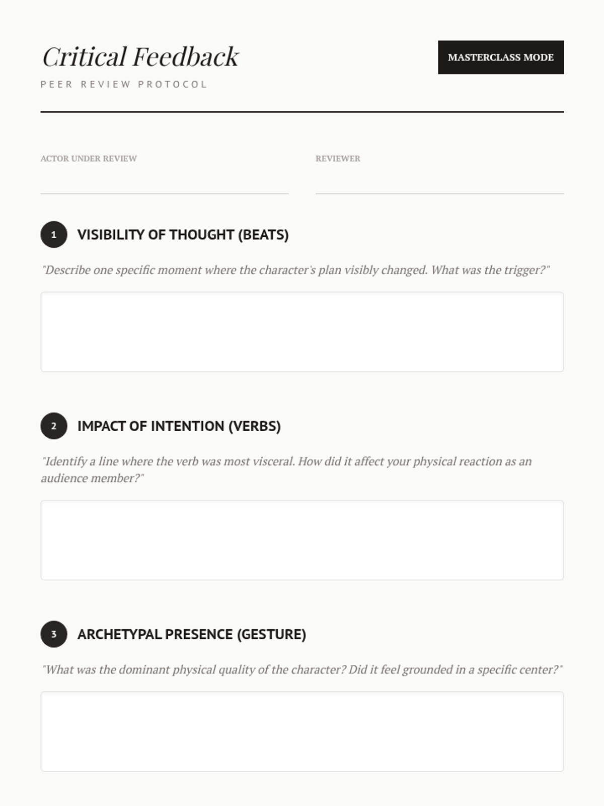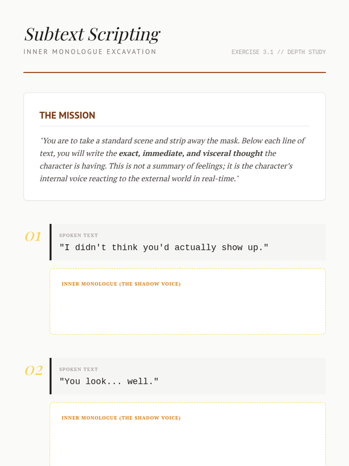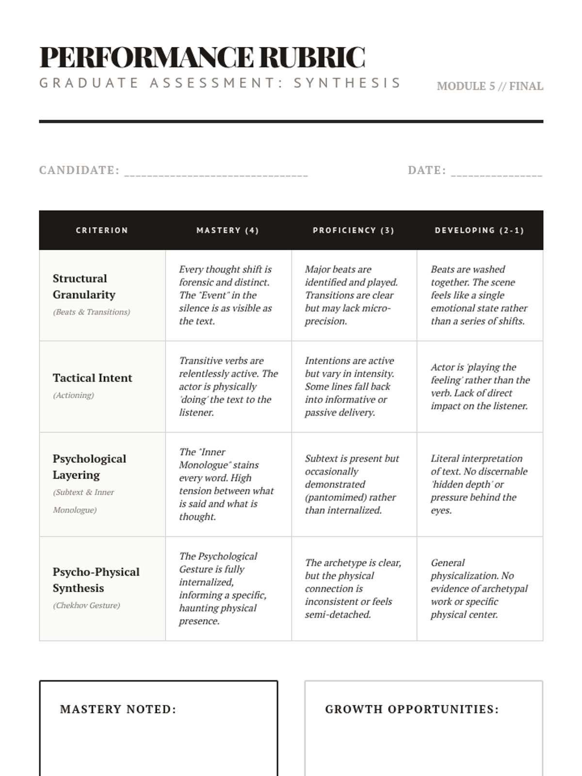 A graduate-level sequence focused on the intellectual and psychological excavation of dramatic text, utilizing Actioning, Active Analysis, and Chekhovian techniques.