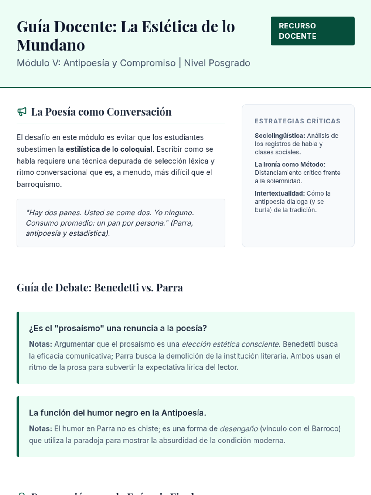 An intensive workshop for graduate students exploring the evolution of Spanish poetic stylistics from the Golden Age to contemporary 'antipoesía'. The sequence focuses on the 'explication de texte' methodology, linking formal linguistic choices to historical and philosophical shifts.