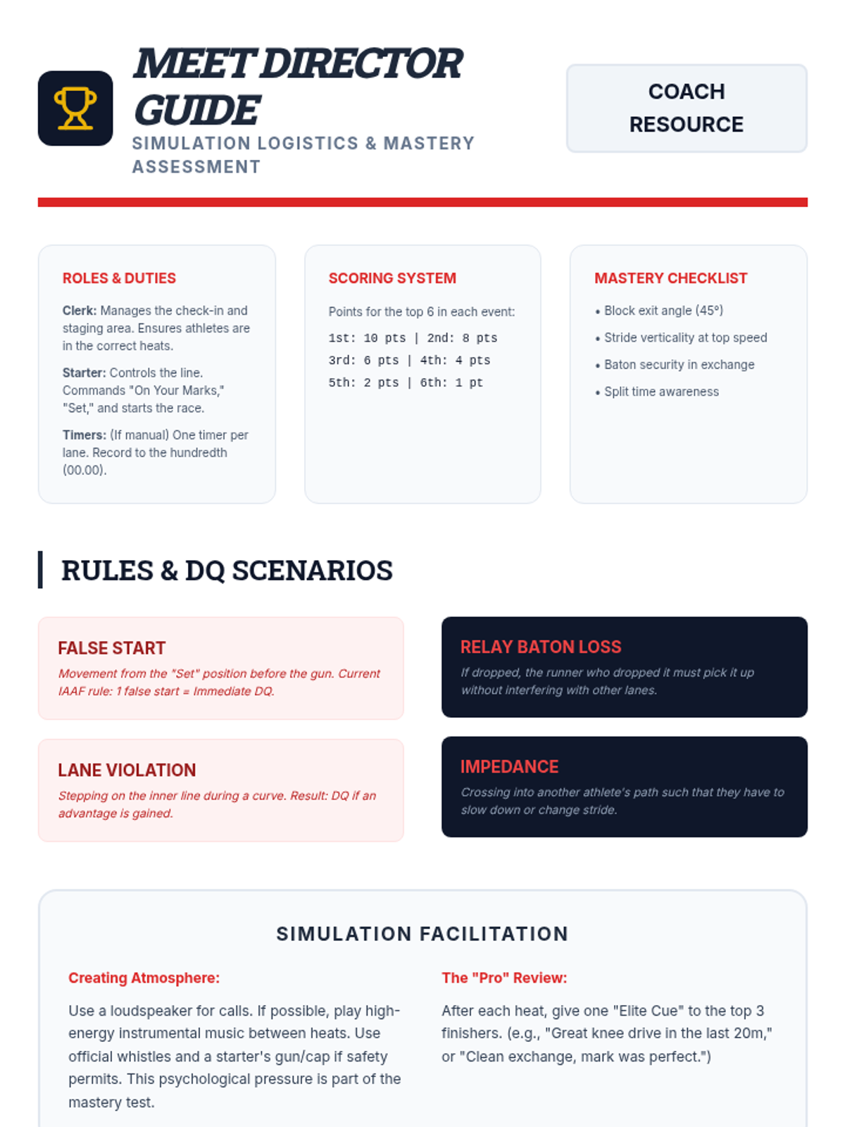 An advanced 11th-grade track and field sequence focusing on the biomechanics of sprinting, the precision of relays, and the physiological strategy of middle-distance running. Students transition from mechanical refinement to competitive application.